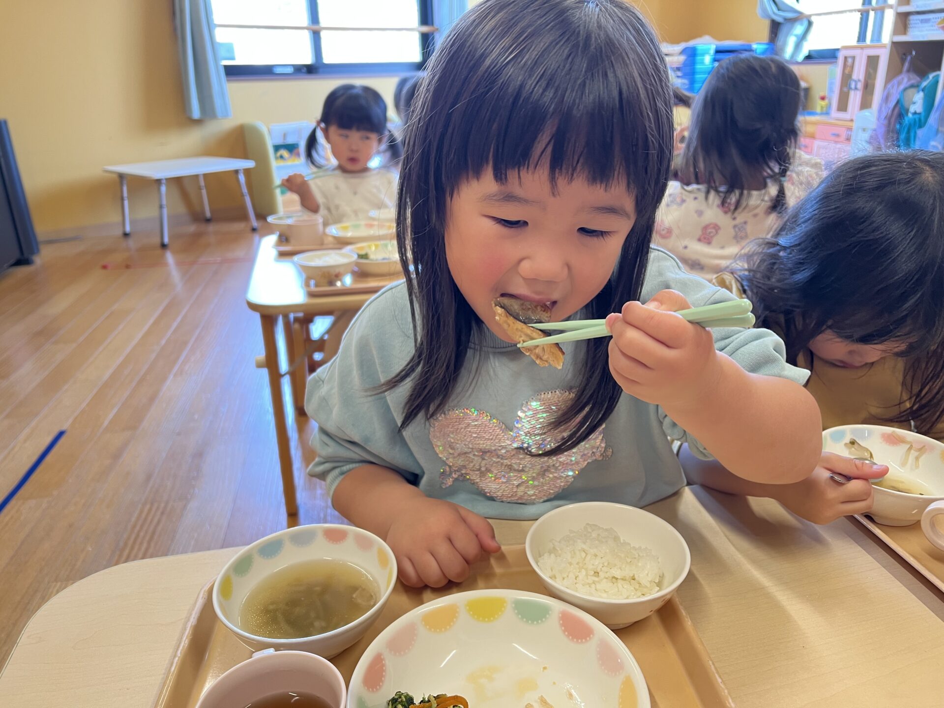 にじチームさんは、「お魚が美味しかった💗」という子と「お野菜が美味しい💗」「中華スープが美味しい💗」と好きなものがバラバラでしたが、全部ピカピカに食べていました😊