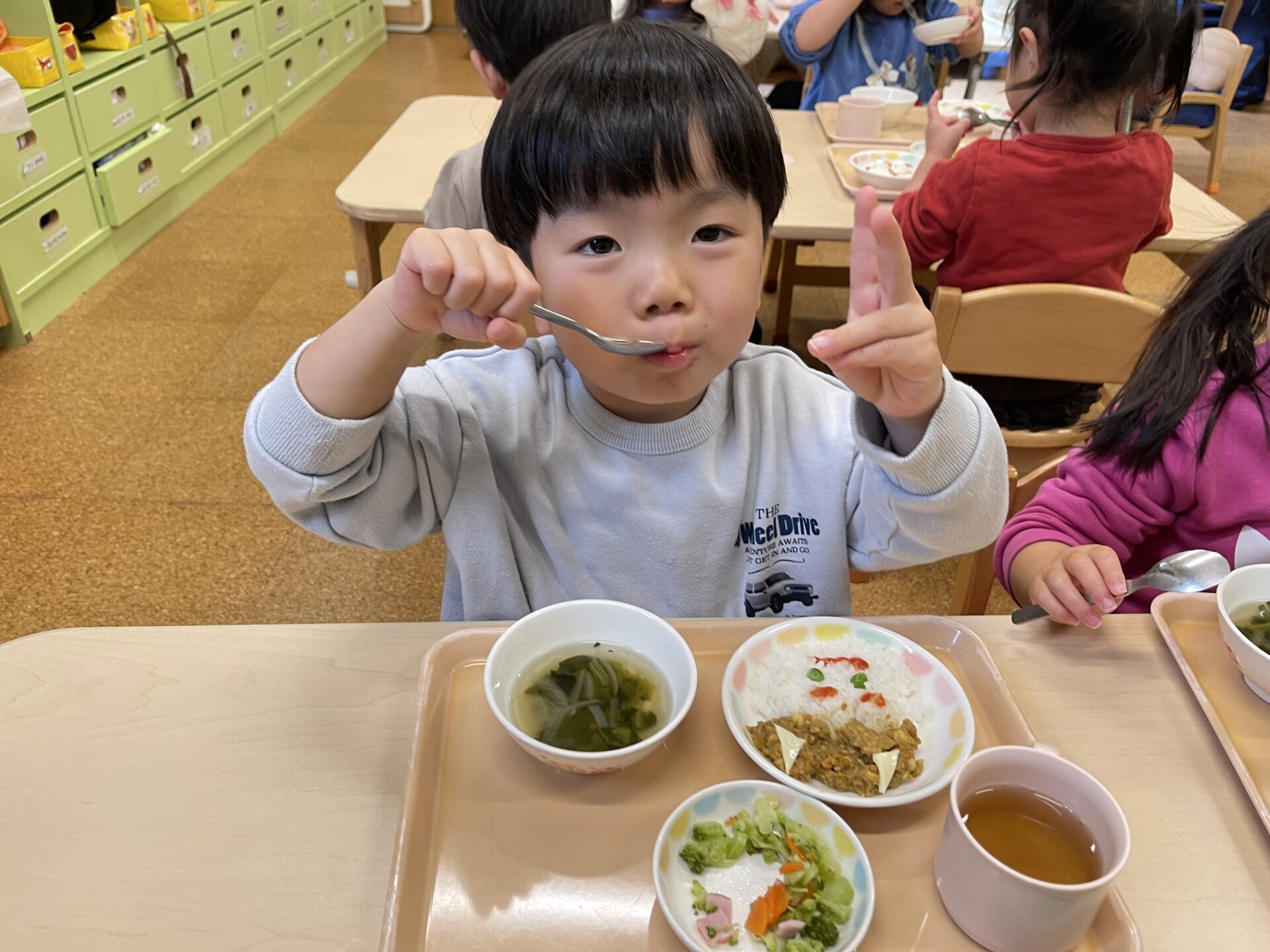 とっても可愛い💗鬼さんのドライカレー👹給食先生、いつもありがとうございます😊