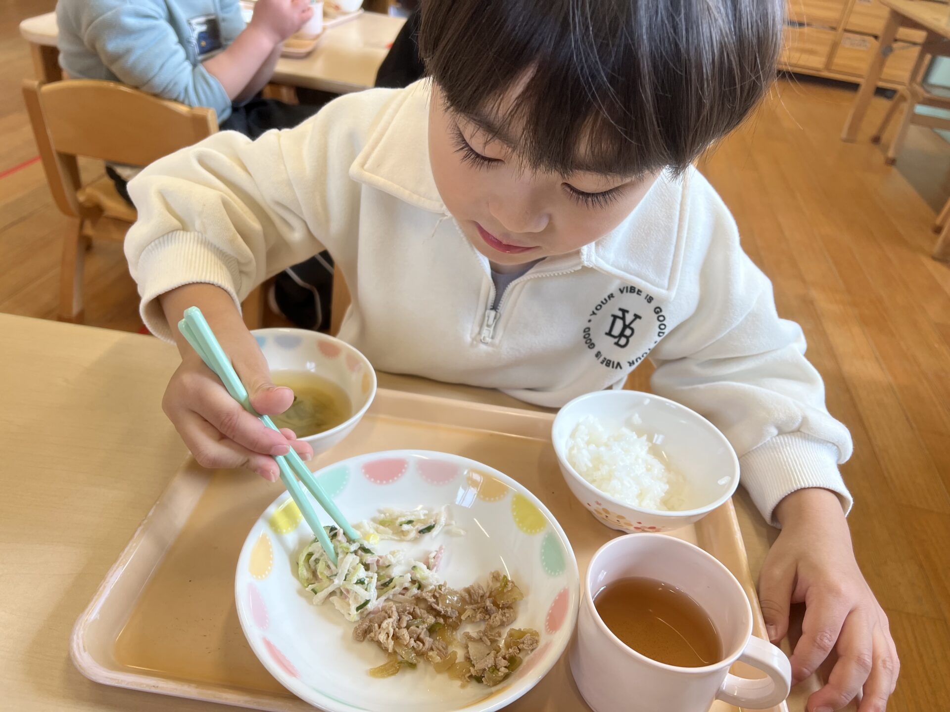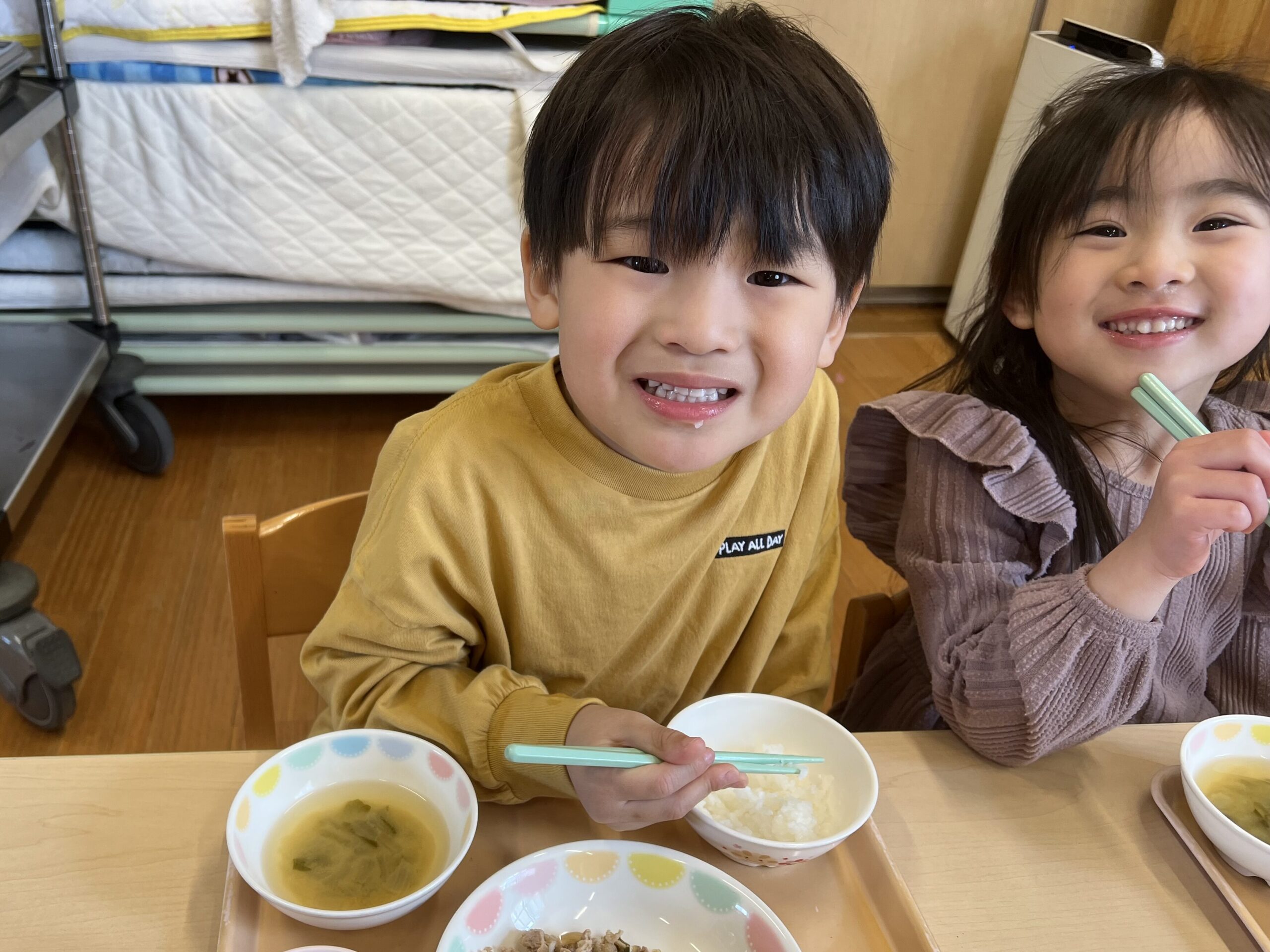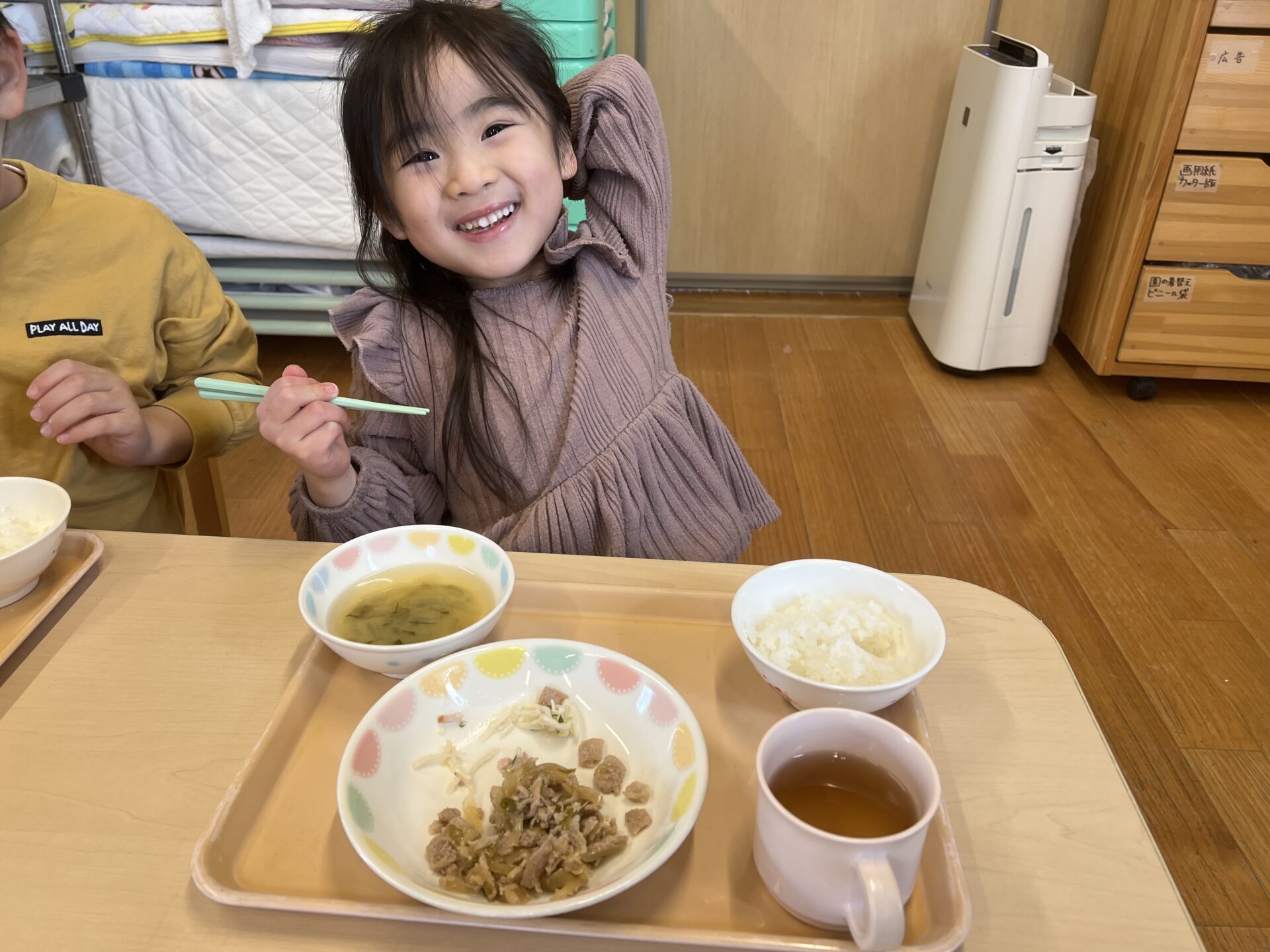Iちゃんは、0歳児・うみチームの頃から知っているのですが、実はIちゃん、お気に入りの毛布が手放せなくて、いつも泣きべそをかいていました☺️そのIちゃんが、時間がかかっても最後まで残さず頑張って食べる姿に成長を感じ、今では笑い話になっています😁