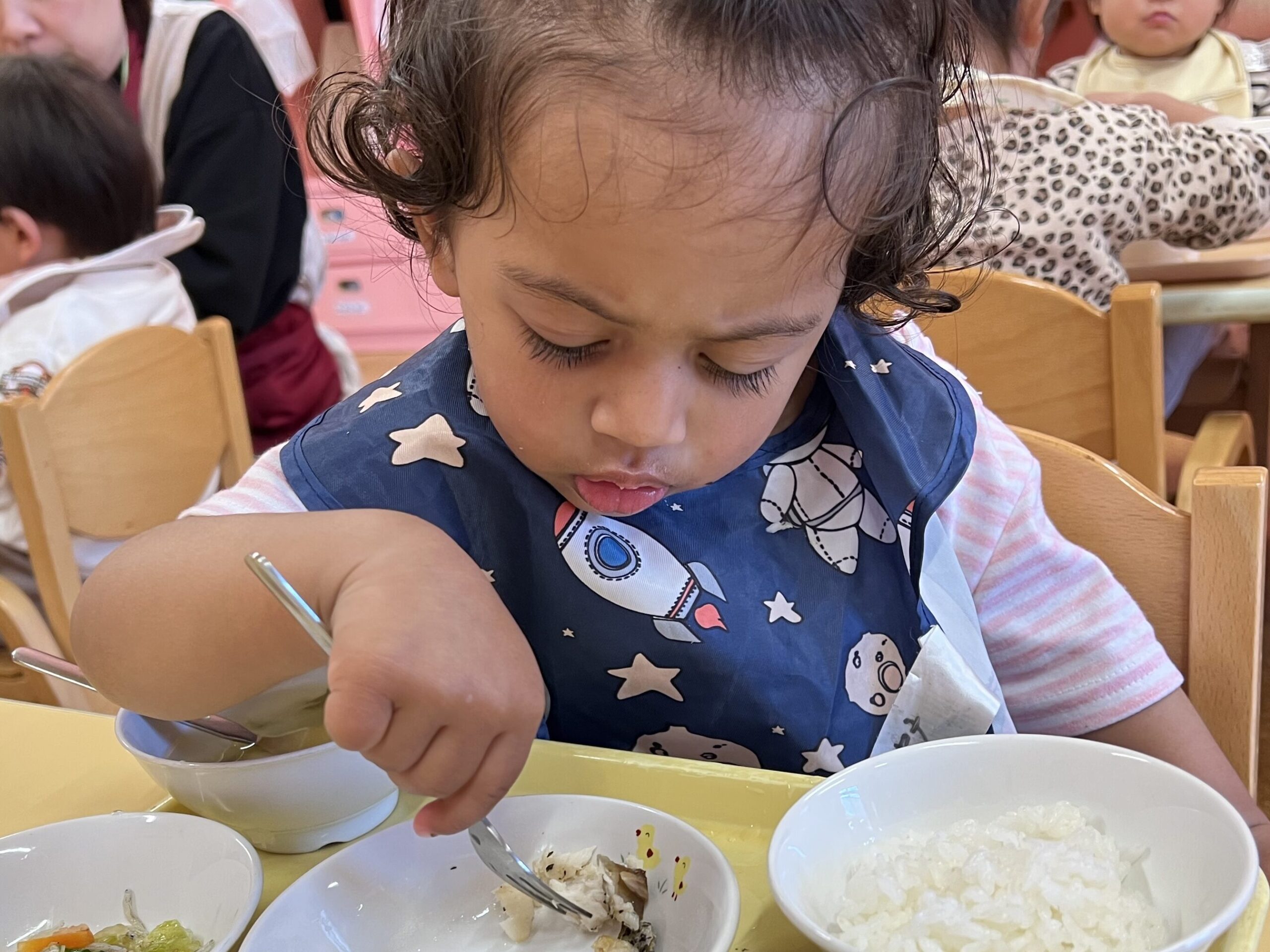 今日のおいしい顔は、1歳児・だいちチームのSちゃん。日本の食べ物に慣れていなくて、最初はあんまり進みませんでしたが…0歳児の頃から、一口ずつ食べてみて、味を確かめていきました😊