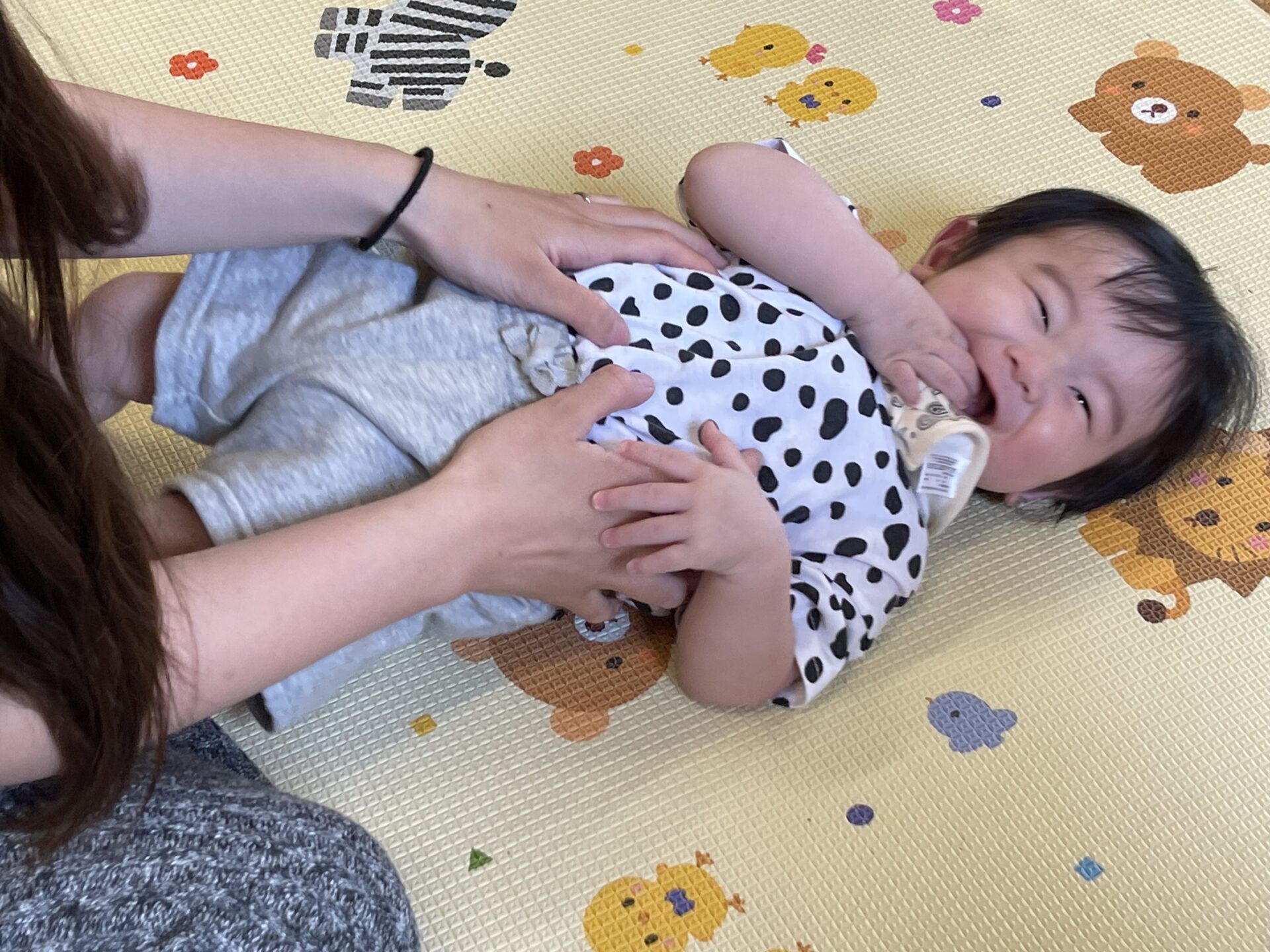 手遊びや、大型絵本。親子でふれあい遊びなどを楽しみ、ベビーマッサージもみんなでやってみましたよ!