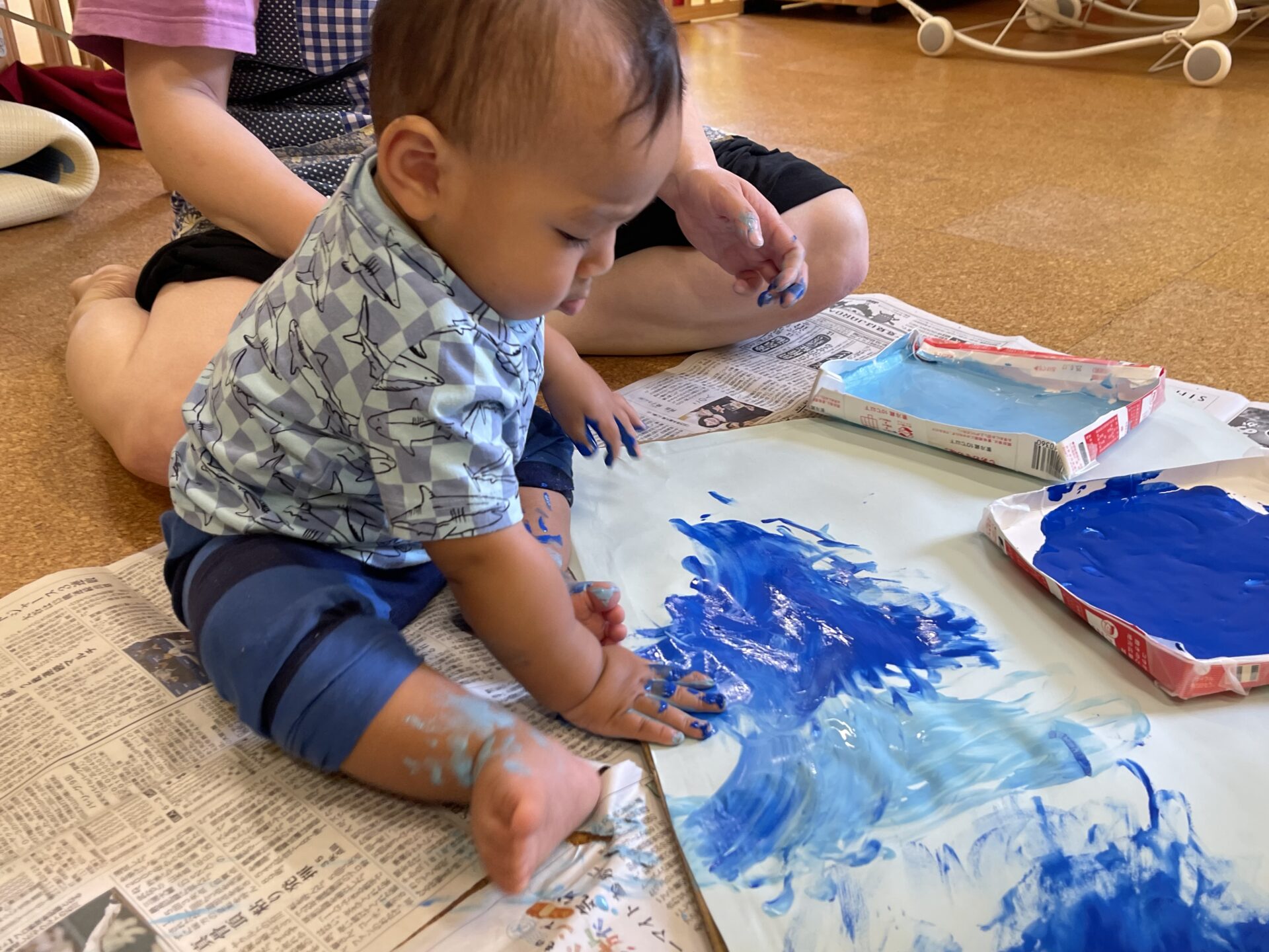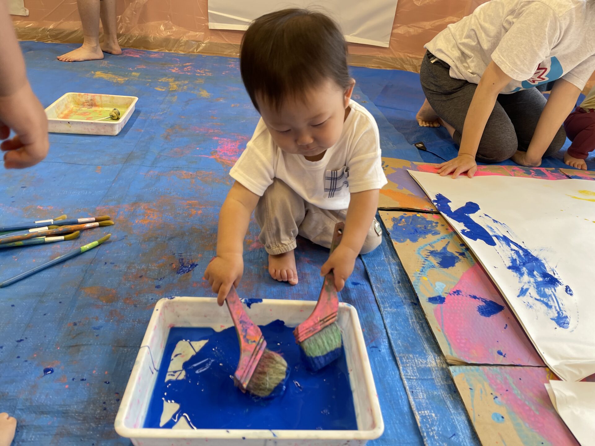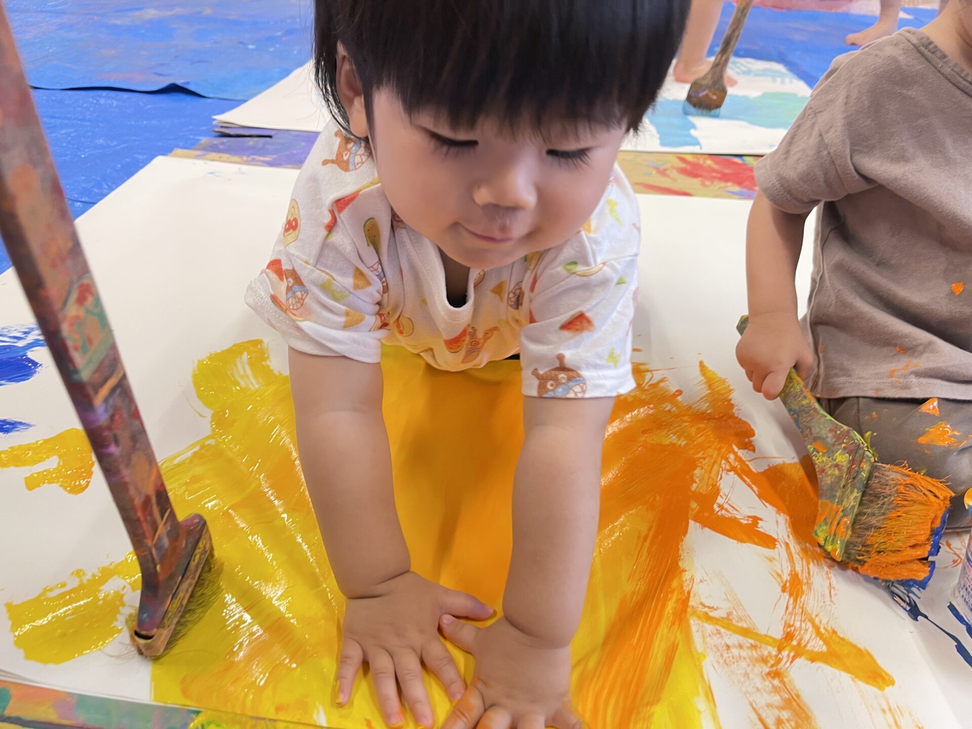 初めての子も多い中、絵の具の冷たい感触を思いっきり楽しんでいました😊