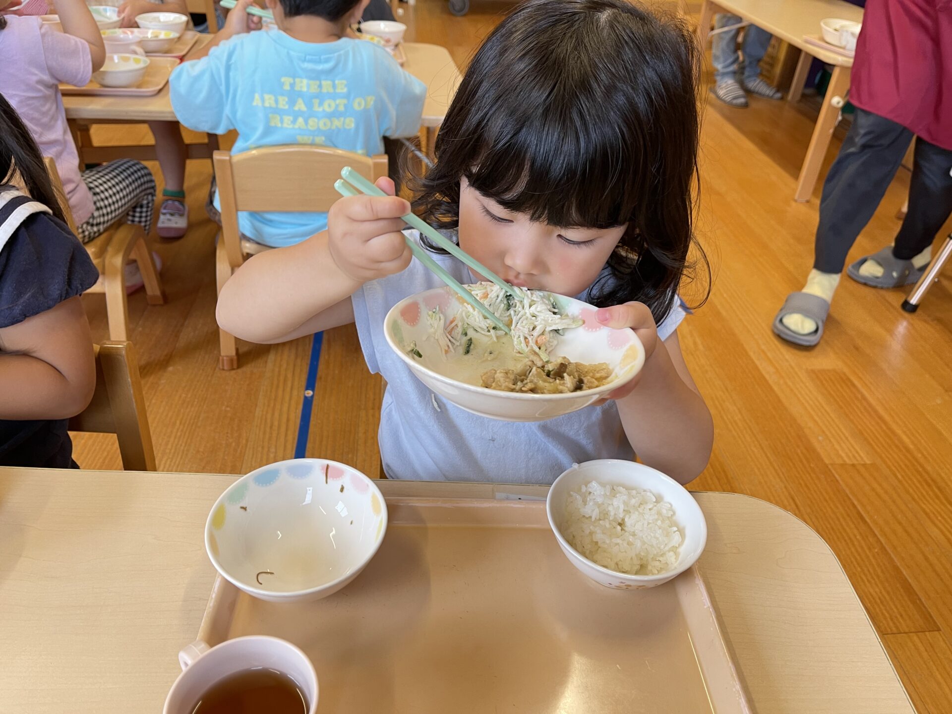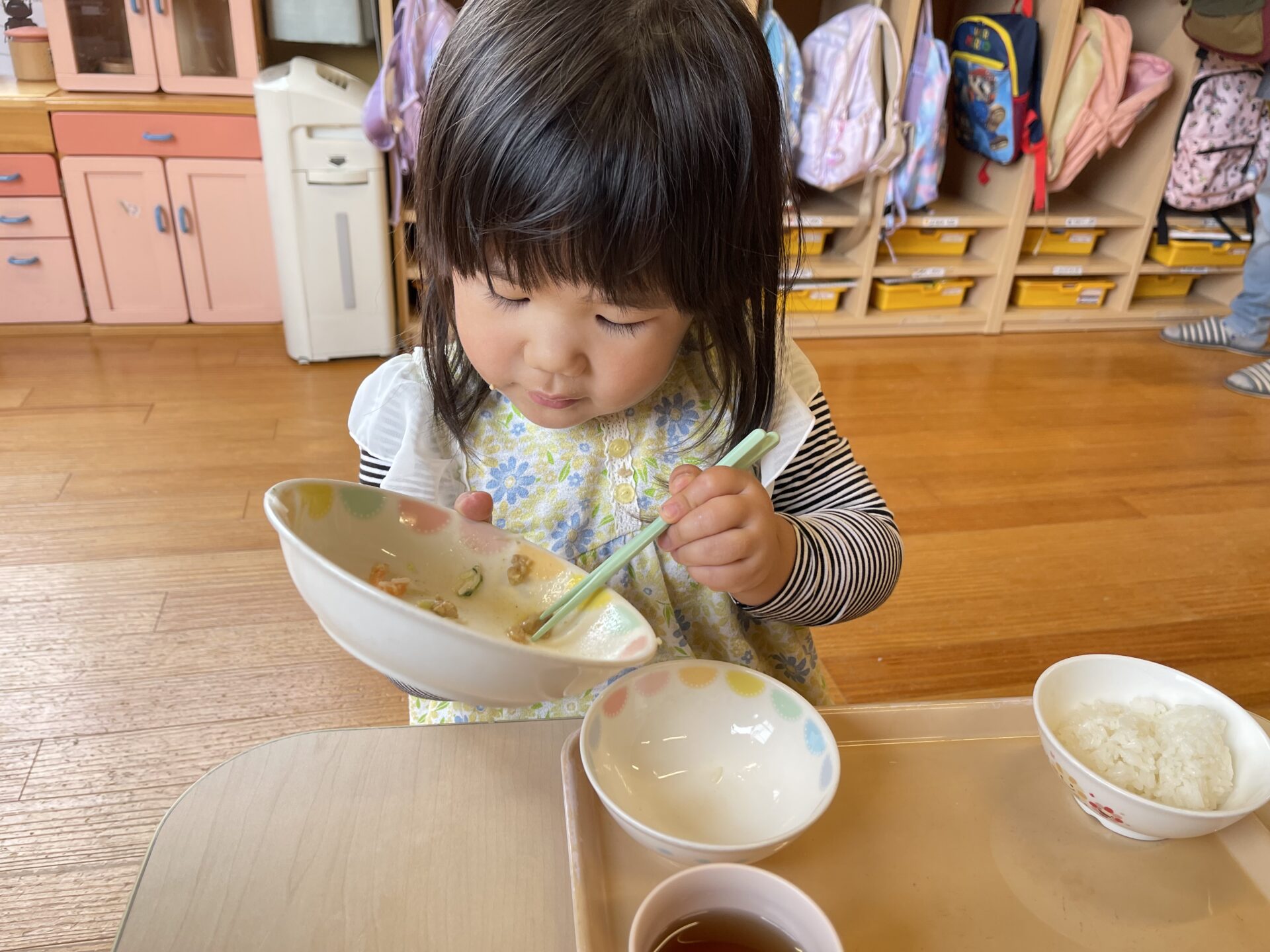 食べること大好きなにじチームさん😊最近は、箸の使い方が上手になって頑張って食べています!と担任のM先生が言っていました。