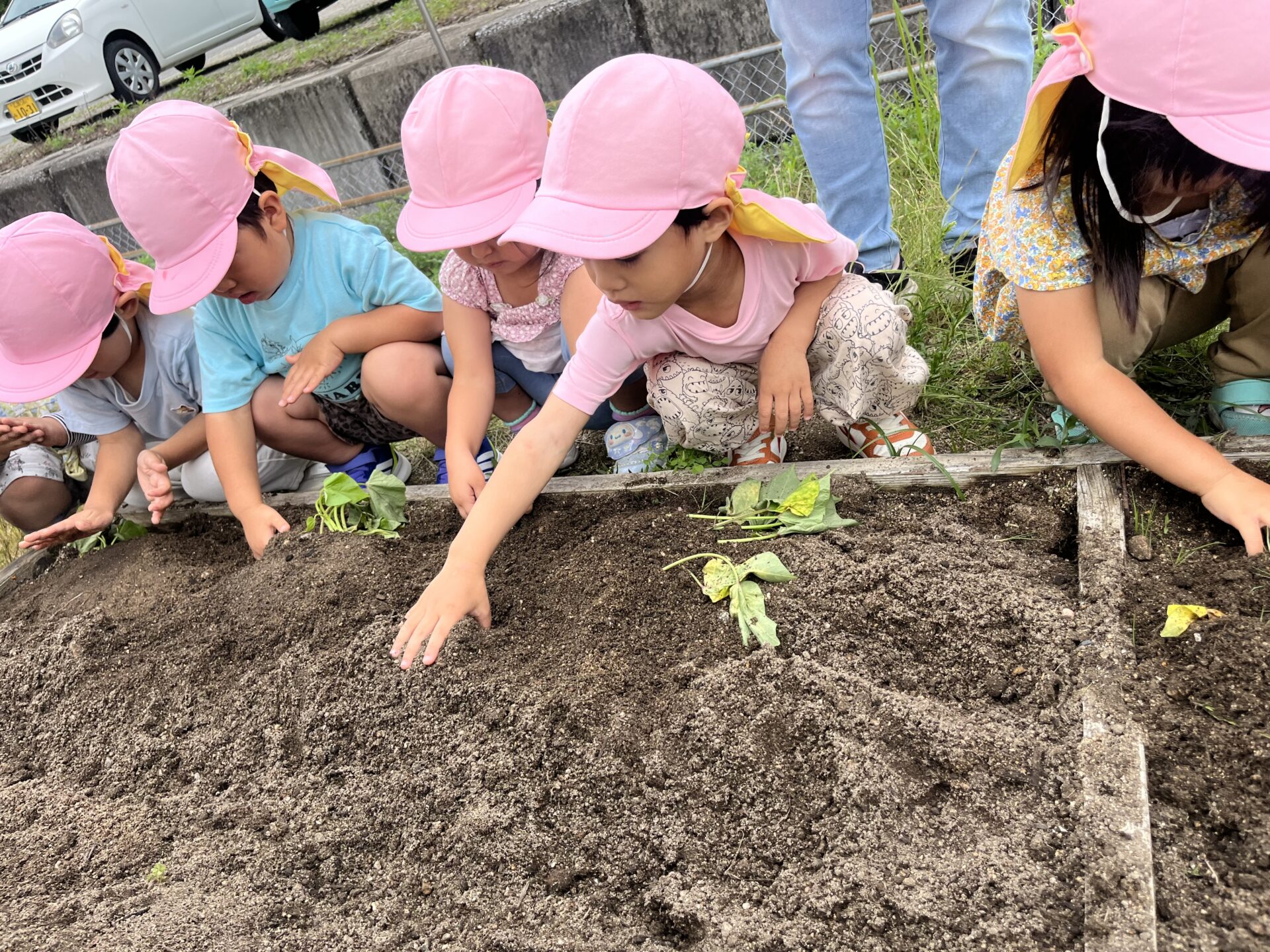「おいしいさつまいもになってね💗」「大きなおいもになってね😊」とお願いする姿が可愛かったです。