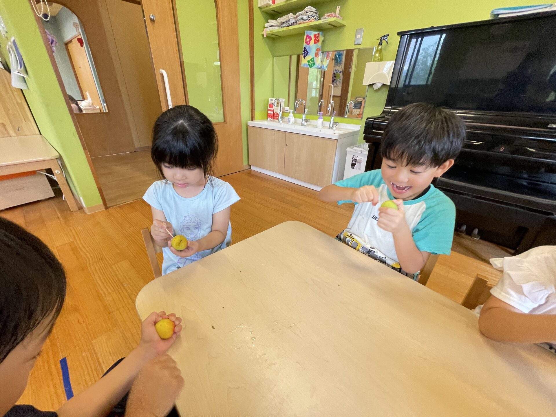 4歳児・そらチームさんは、去年も梅ジュースを作った経験があるのでとても上手です😊