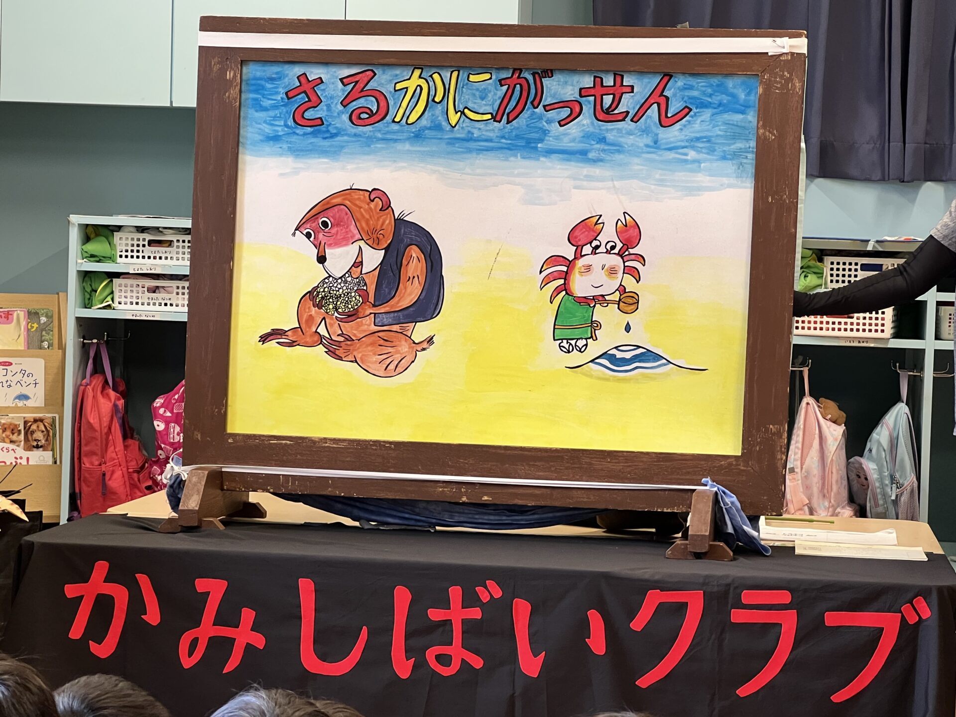 第2部は、幼児クラス向けに大型紙芝居を読み聞かせ。今までに見たことのないくらい大きな紙芝居に子ども達も、びっくり😳