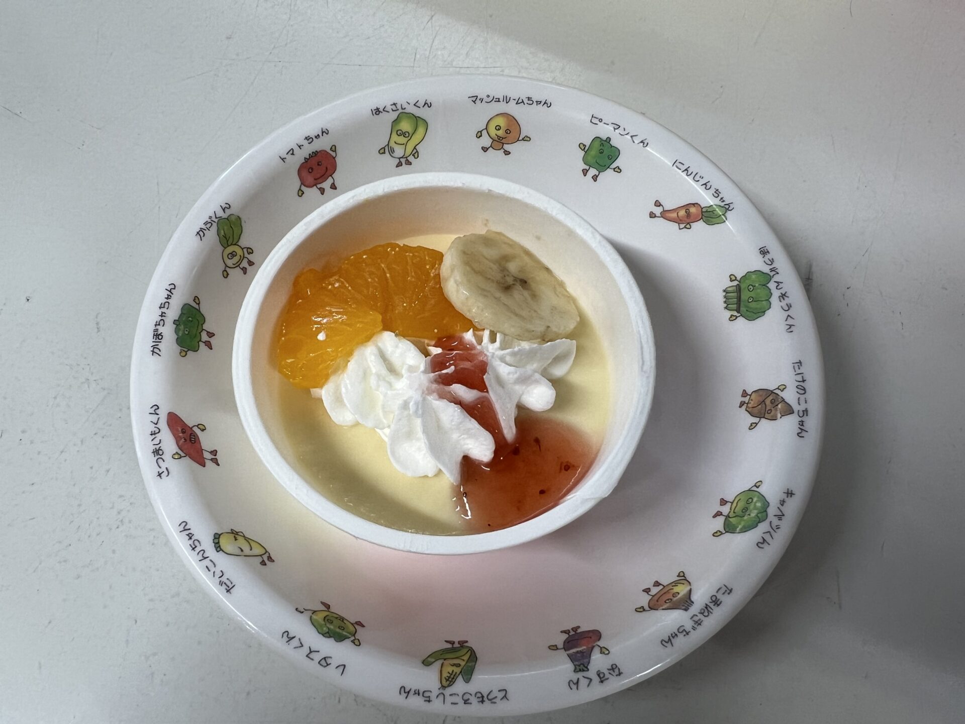 おやつも特別メニュー…プリンアラモード、ヤクルト