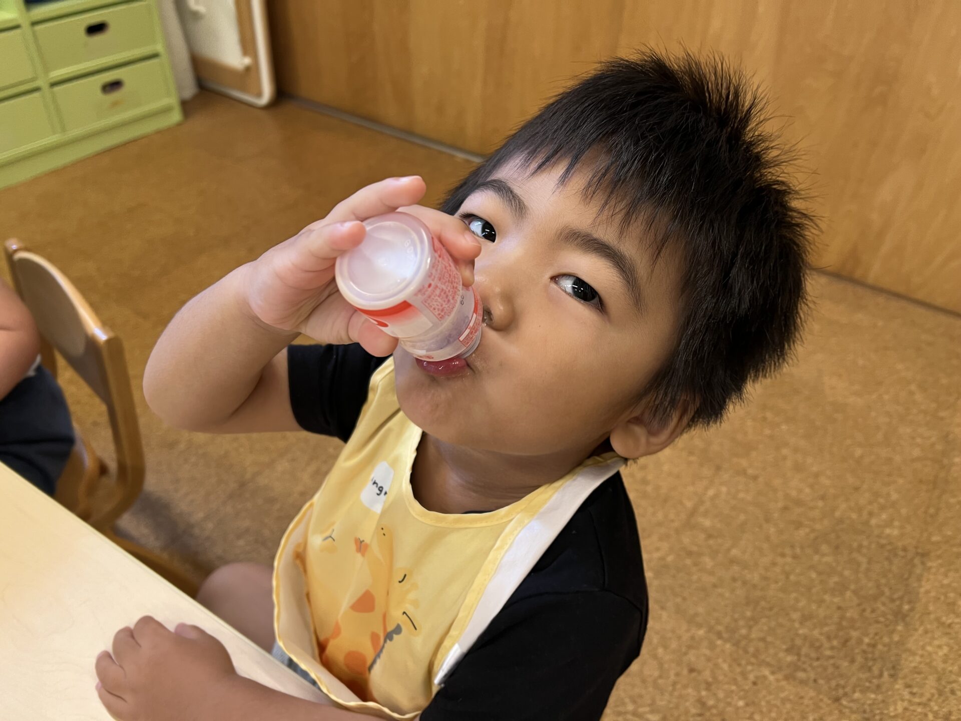 2歳児・あめチームのRくん😊まるで栄養ドリンクのCMかのように、グビグビ飲んでて笑ってしまいました😄「おいしいね💗」と言いながら、飲んでいて可愛かったです。