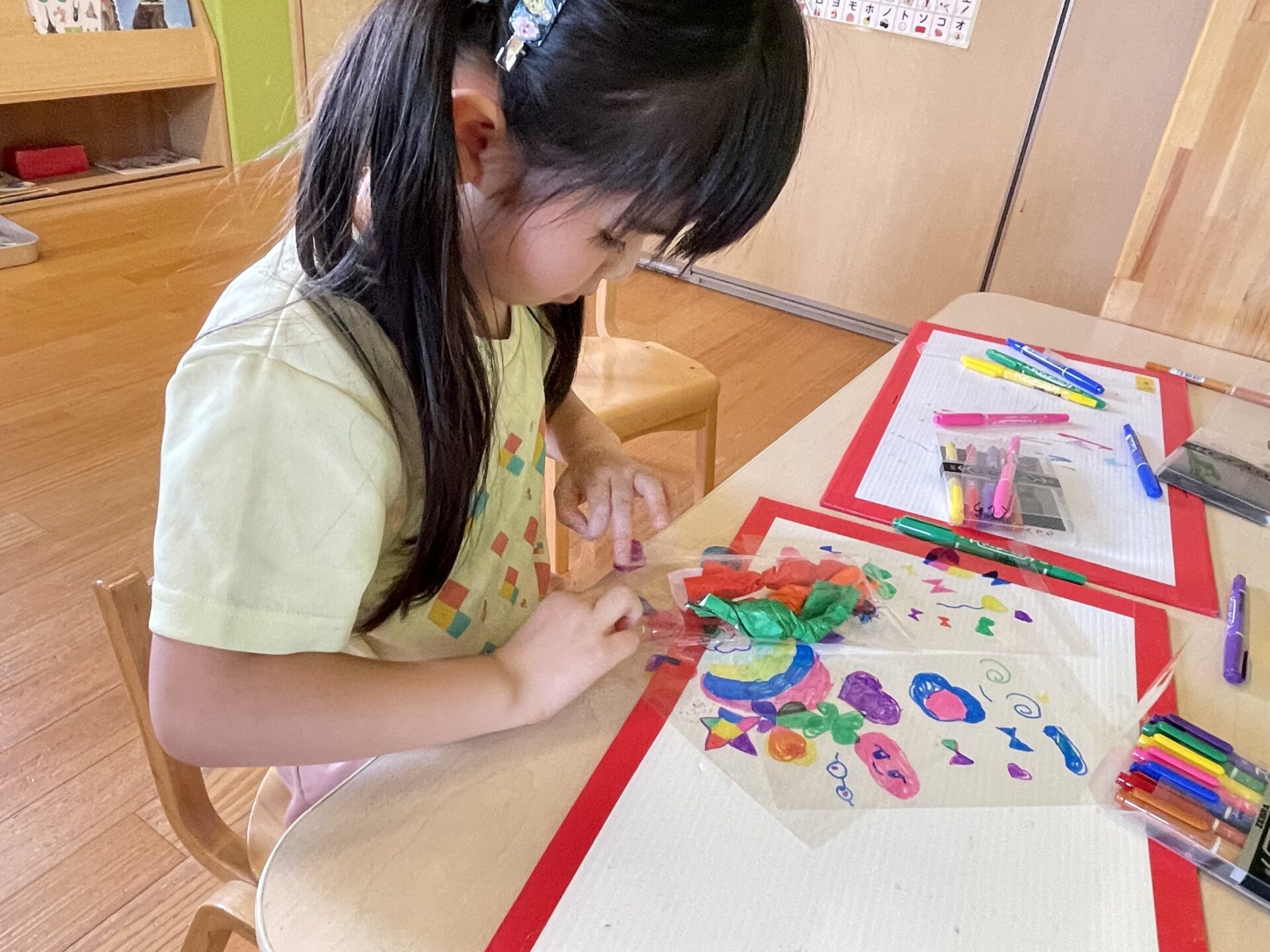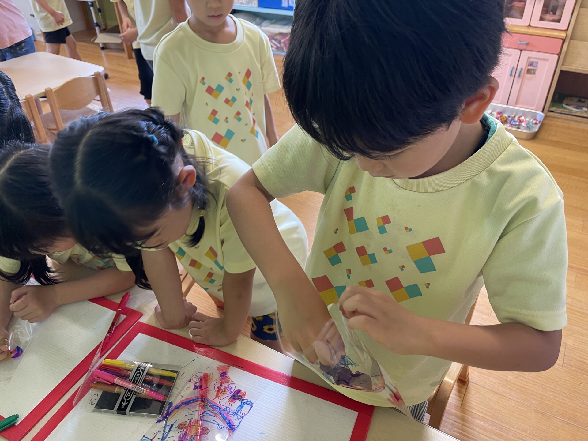 さて?何が出来たのでしょうか?袋にも絵を描いて装飾し、自分達でお土産を詰めて準備が着々と進んでいるようです😊