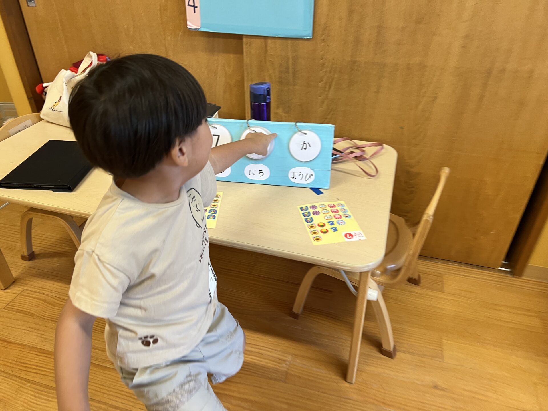ほとんどの子が。おままごとやブロックの中から、同じ色を探してくるんですが…