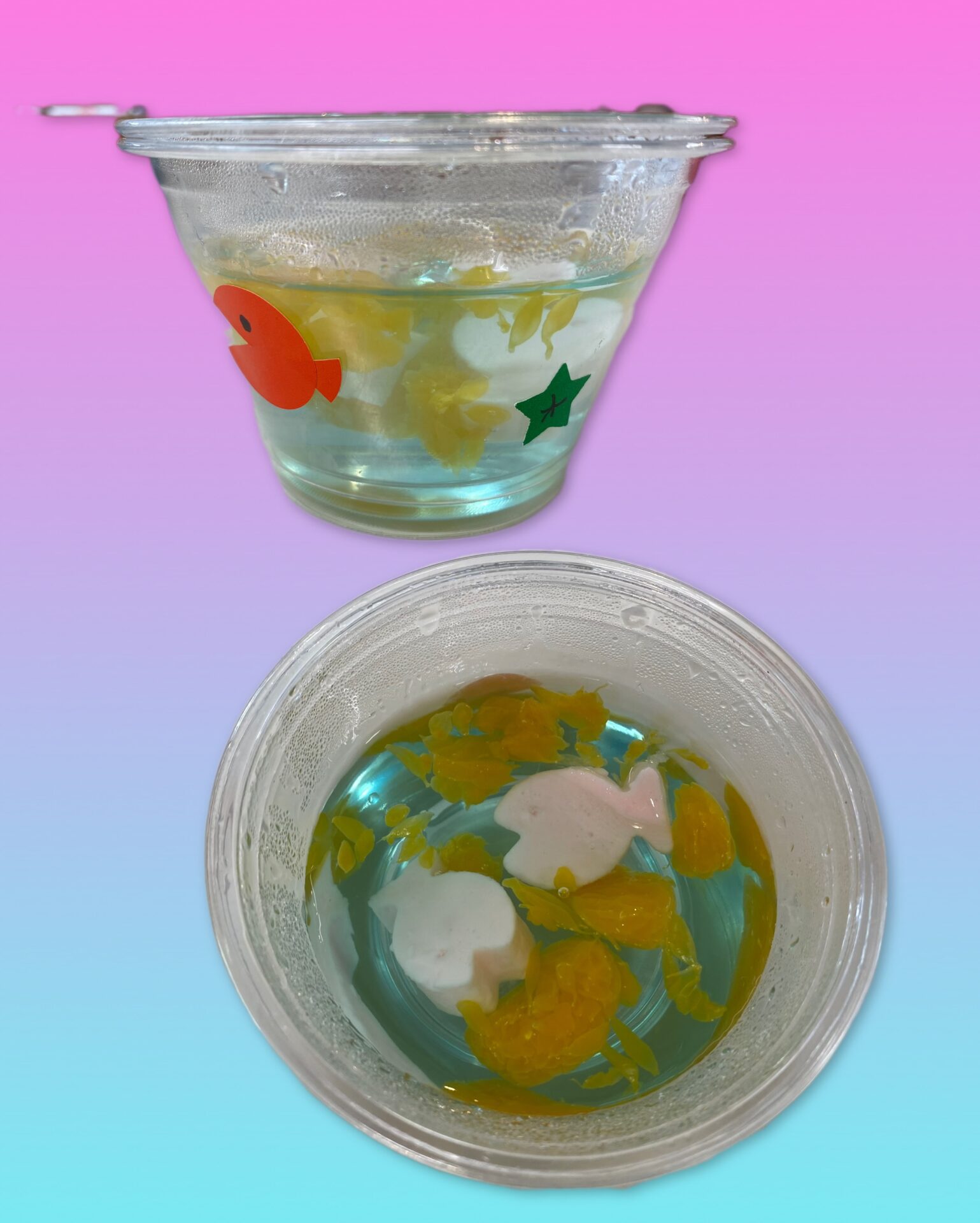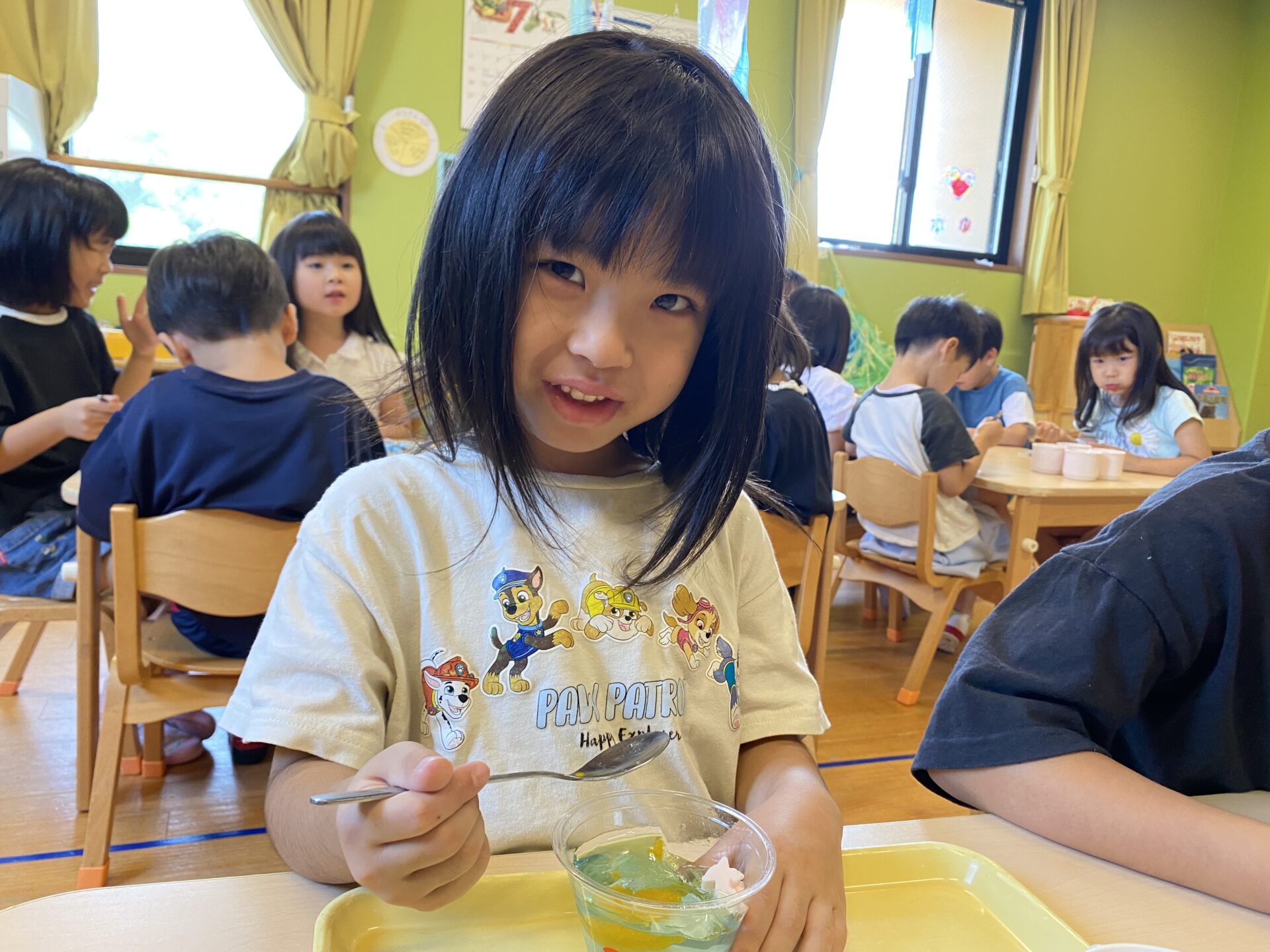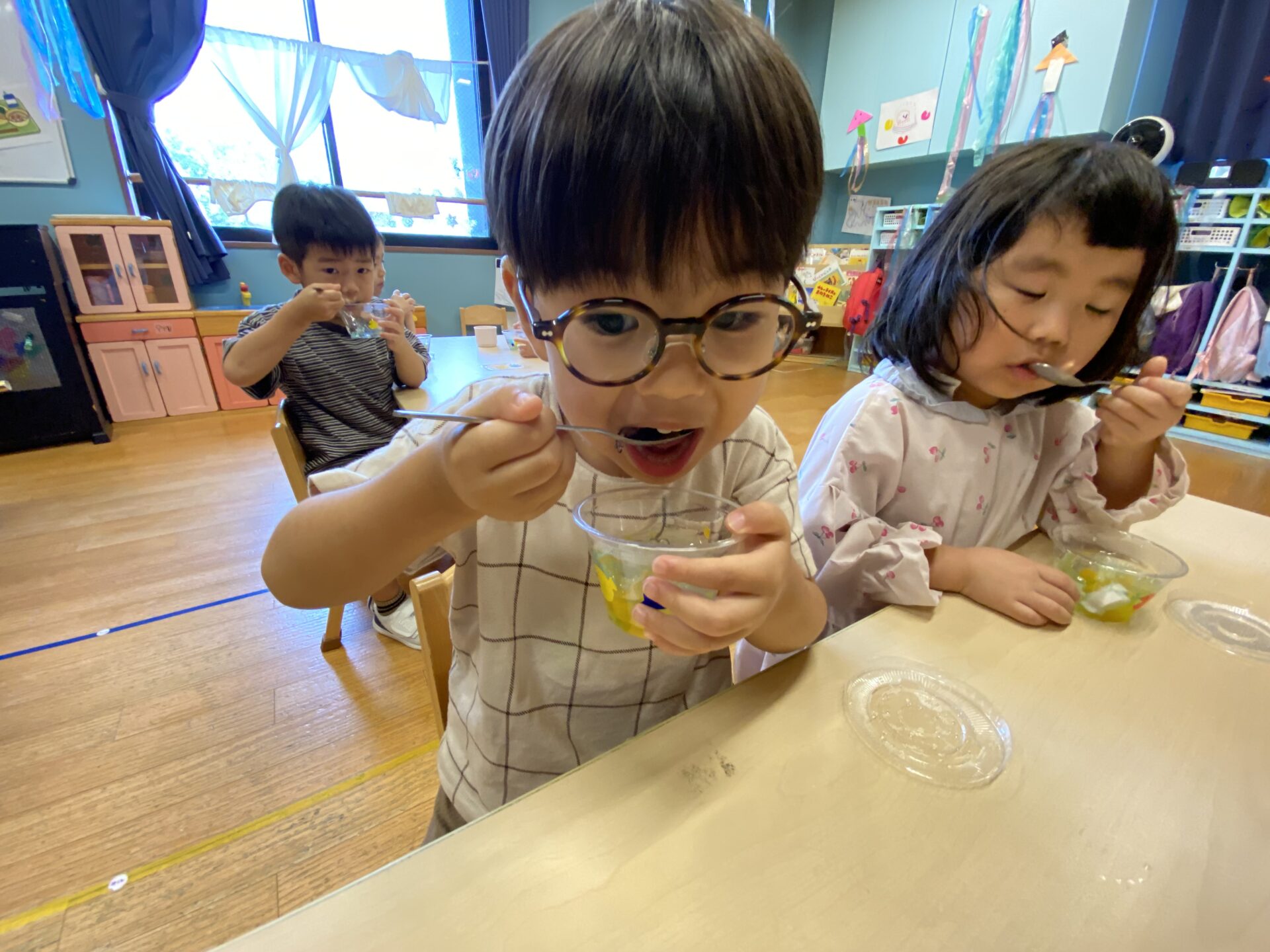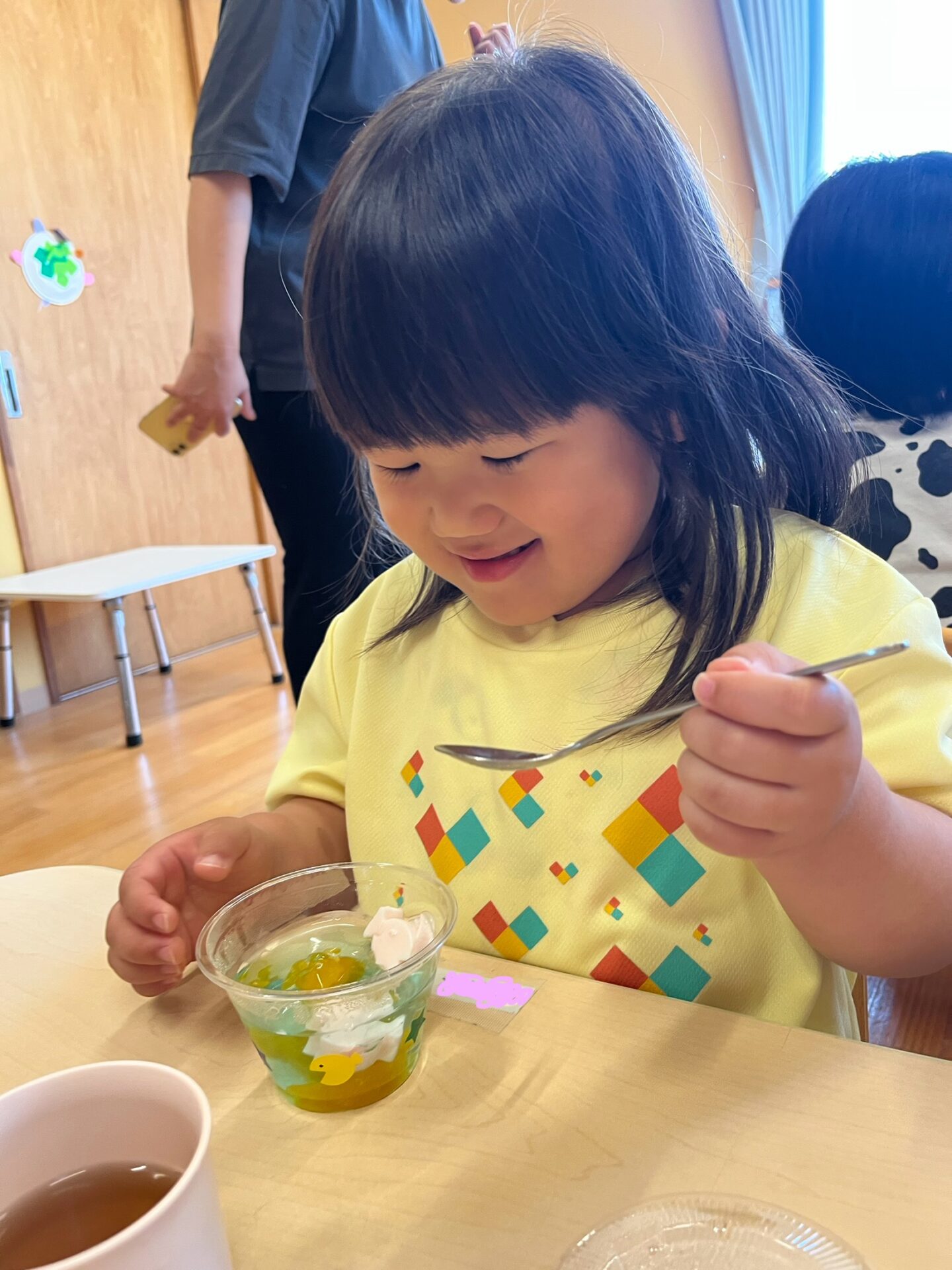 もうひとつのお楽しみ💗今日のおやつは、なんと【すいぞくかんゼリー】給食先生の協力の下、こんな可愛いゼリーを作って下さいました。