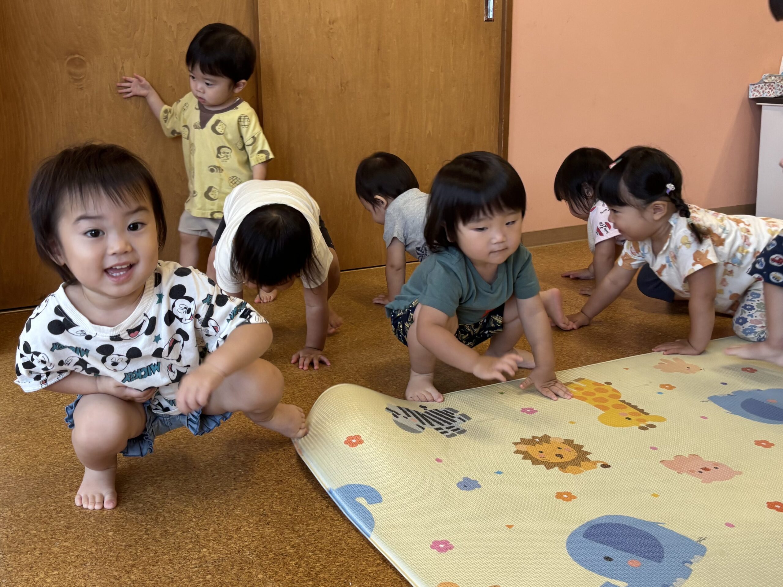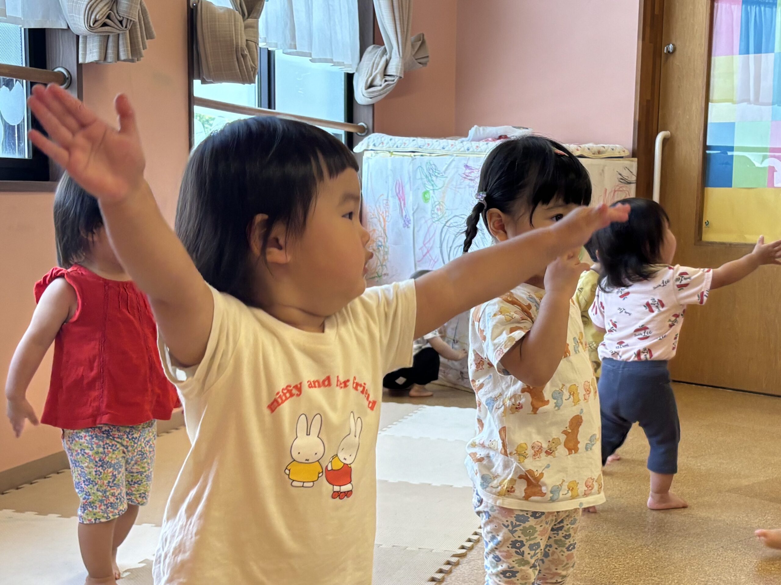 1歳児・だいちチームさんが、リズム遊びを楽しんでいました😊
