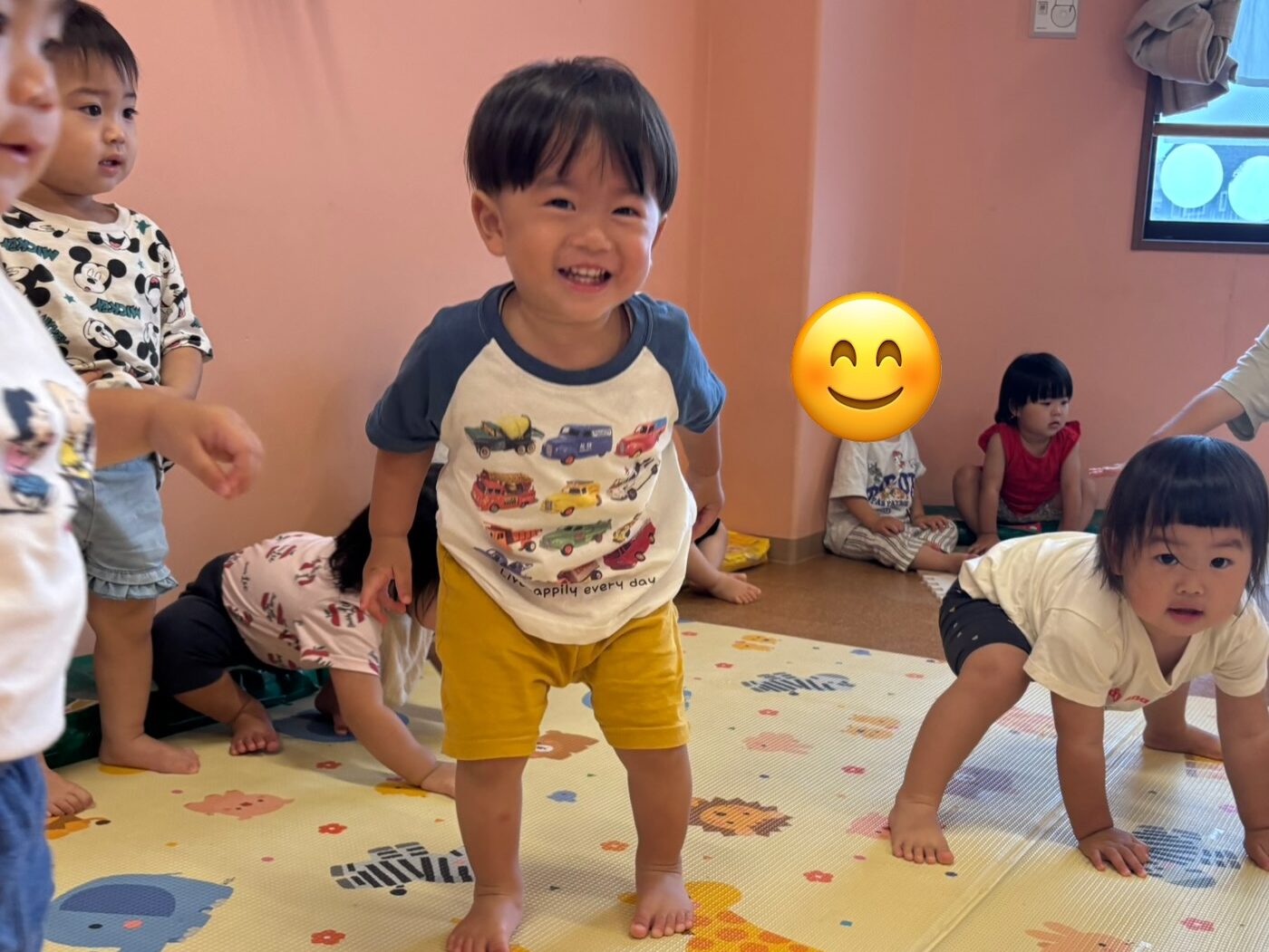 最初は、保育士のオンステージでしたが…(笑)段々とピアノの音に合わせて、動きを模倣していくようになります♪