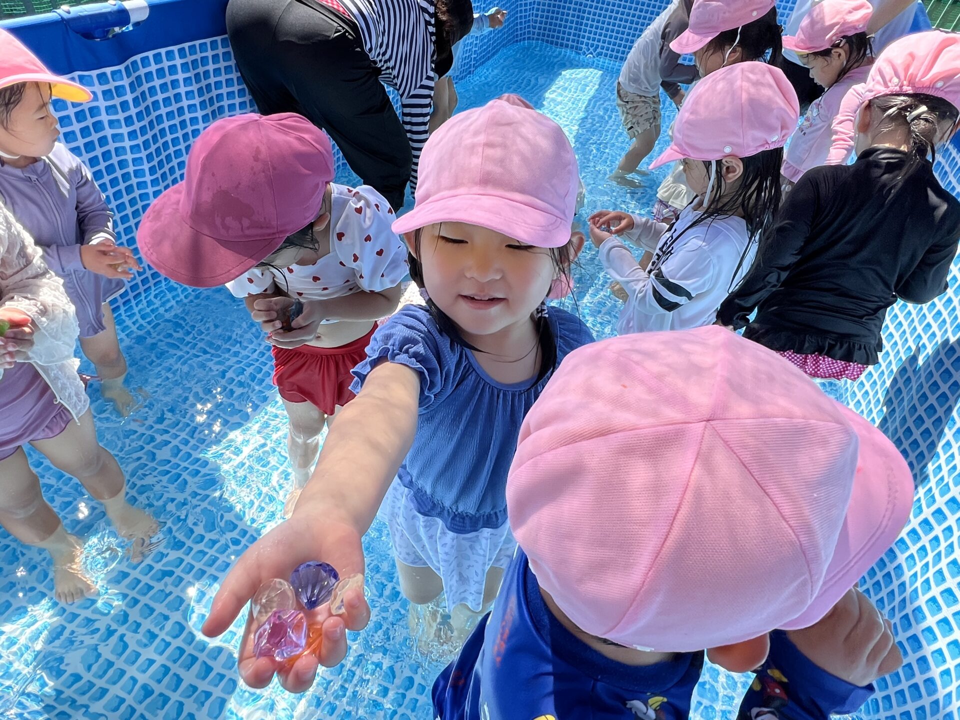 今日は、3歳児・にじチームさんがプール遊びを楽しんでいました。