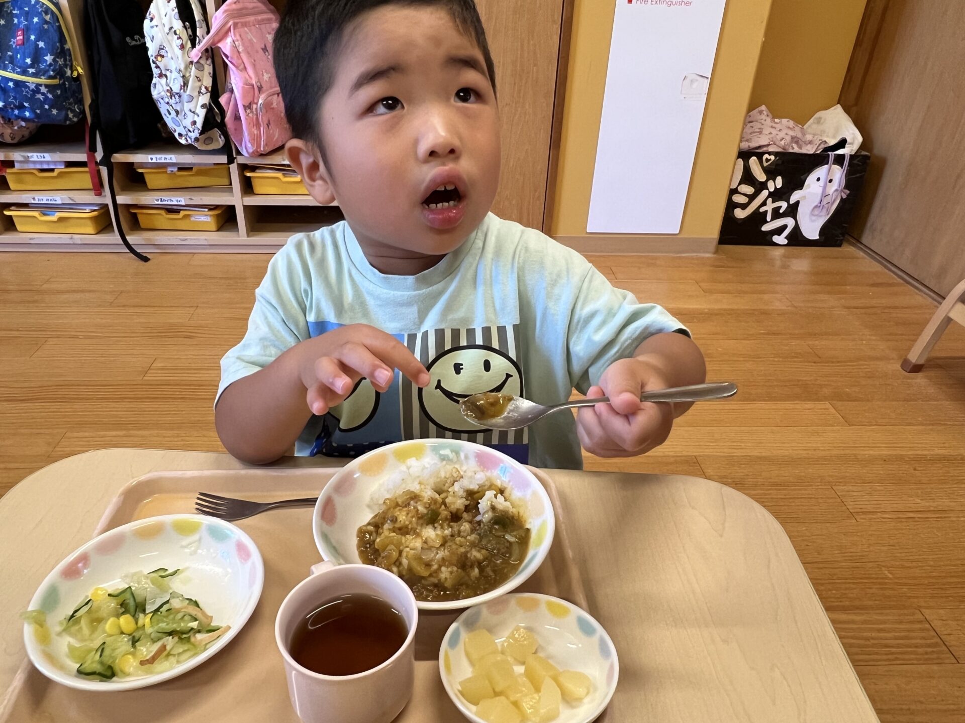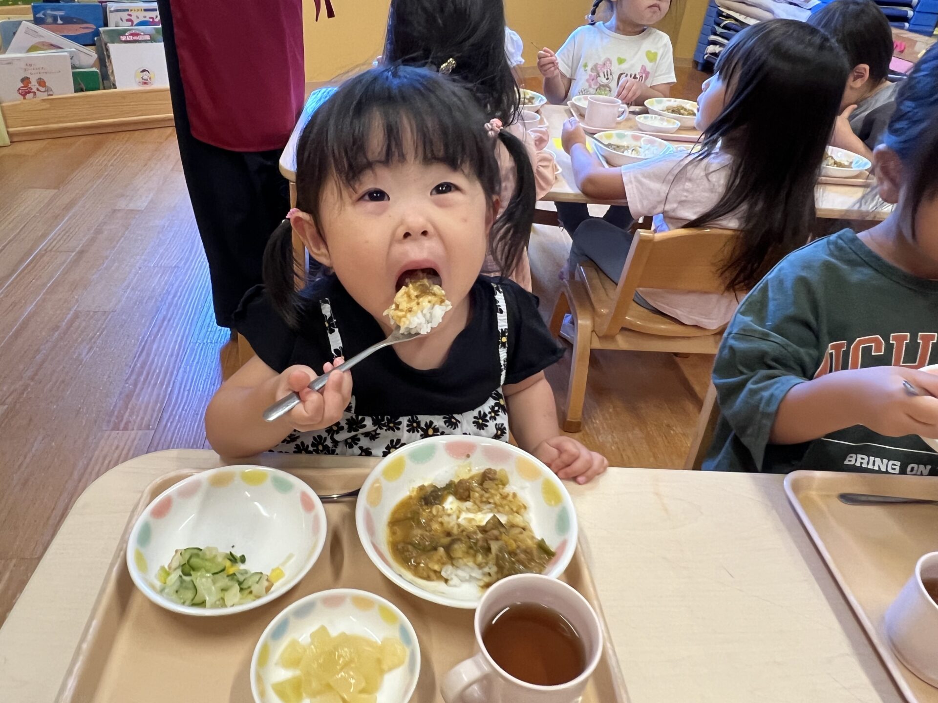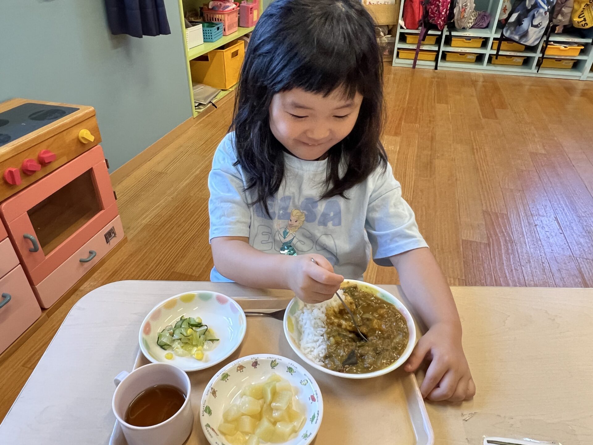 4歳児・そらチームさんも、大盛り夏野菜カレーを美味しそうに食べていまいました😊