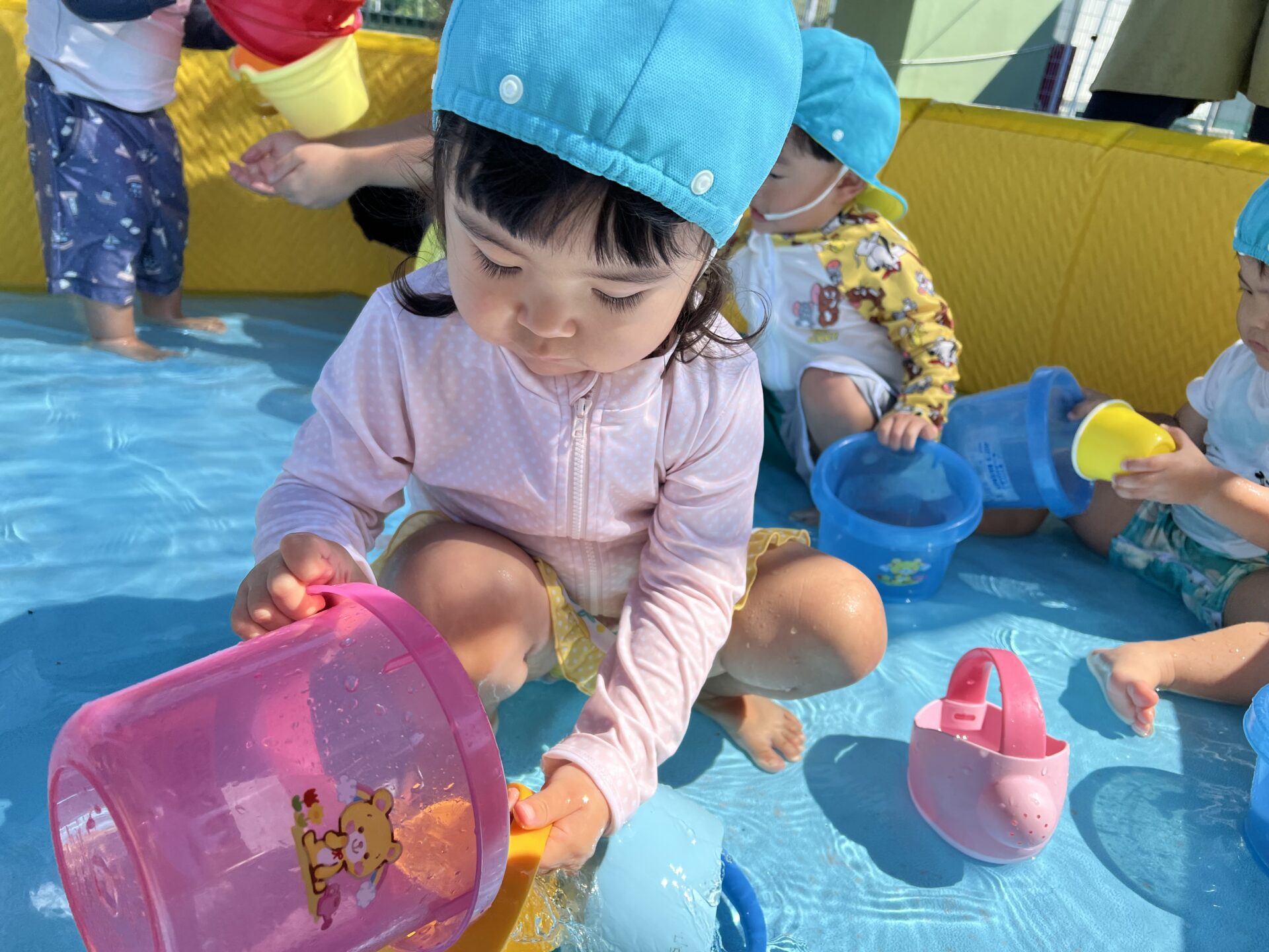 プール遊びは大好き💗Hちゃんは、バケツでお水をたくさん入れていました😊