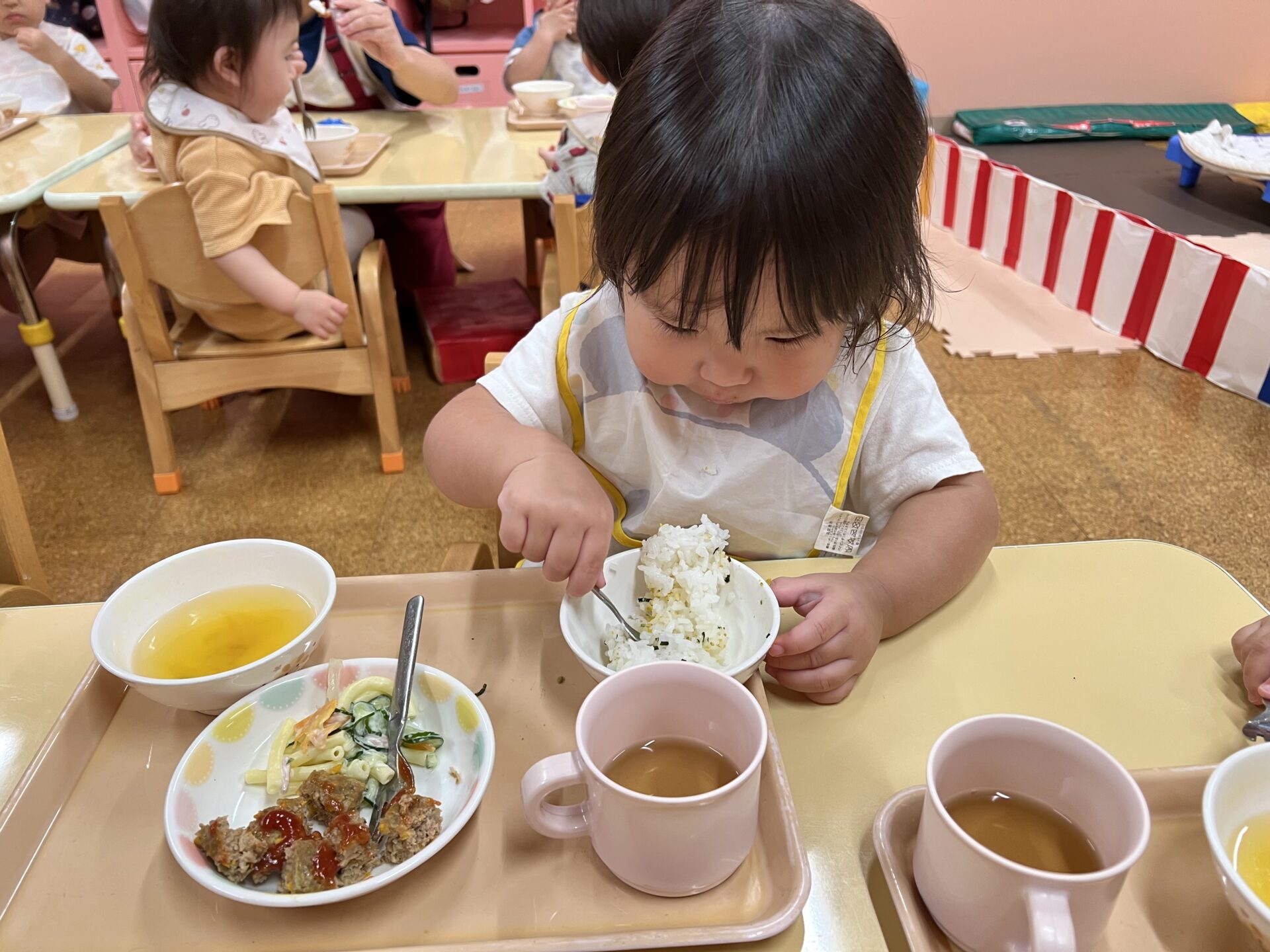 プール遊びを楽しんだので、お腹ペコペコのだいちチームさんは「美味しい💗」と言いながら、モリモリ食べていました😊