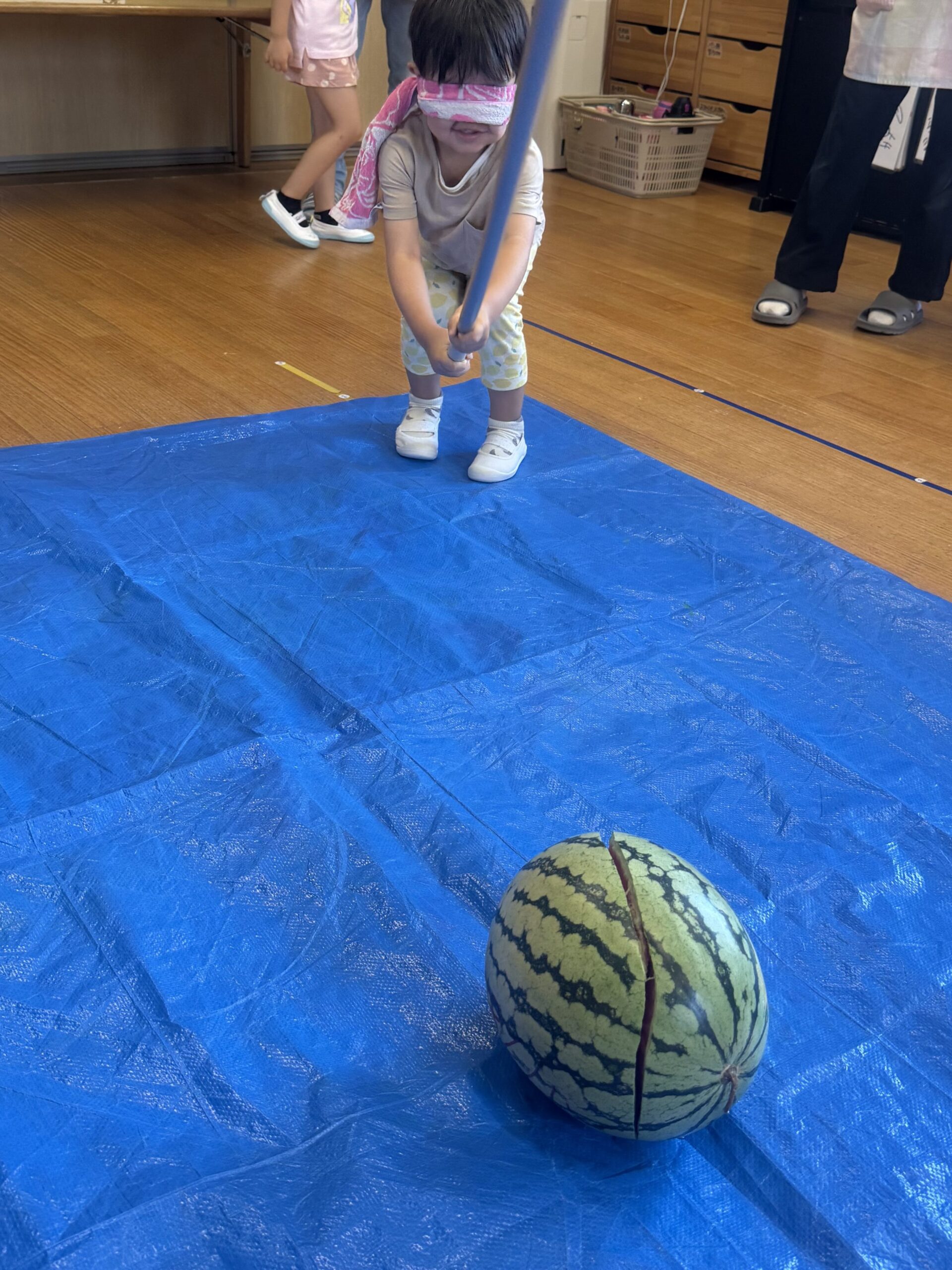 夏の風物詩『すいか割り🍉大会』を満喫した、子ども達です😊