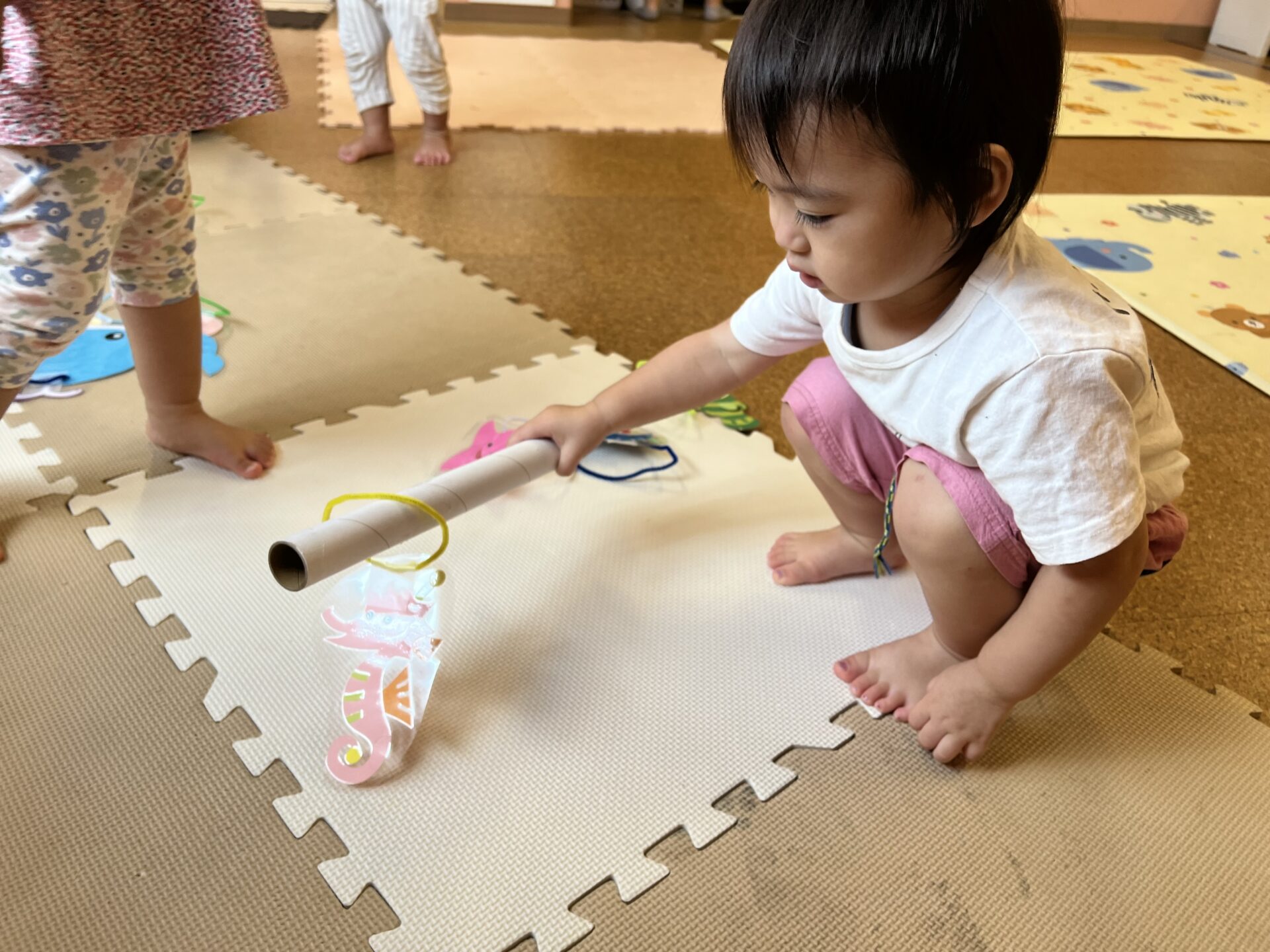 今日は、1歳児・だいちチームさんが「さかなつり」をして遊んでいました😊