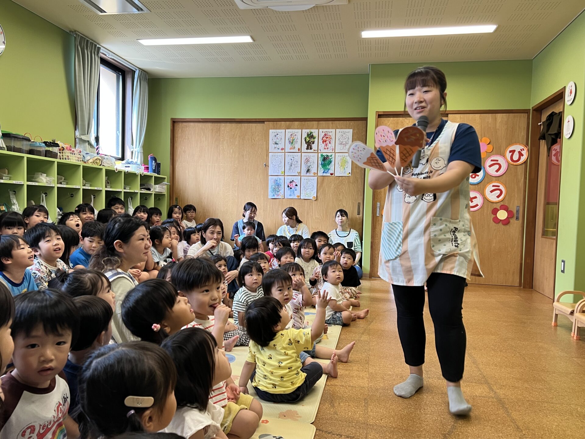 今日は、8月生まれのお誕生会が行われました😊季節にぴったりの『アイスクリームのうた』でスタートです。