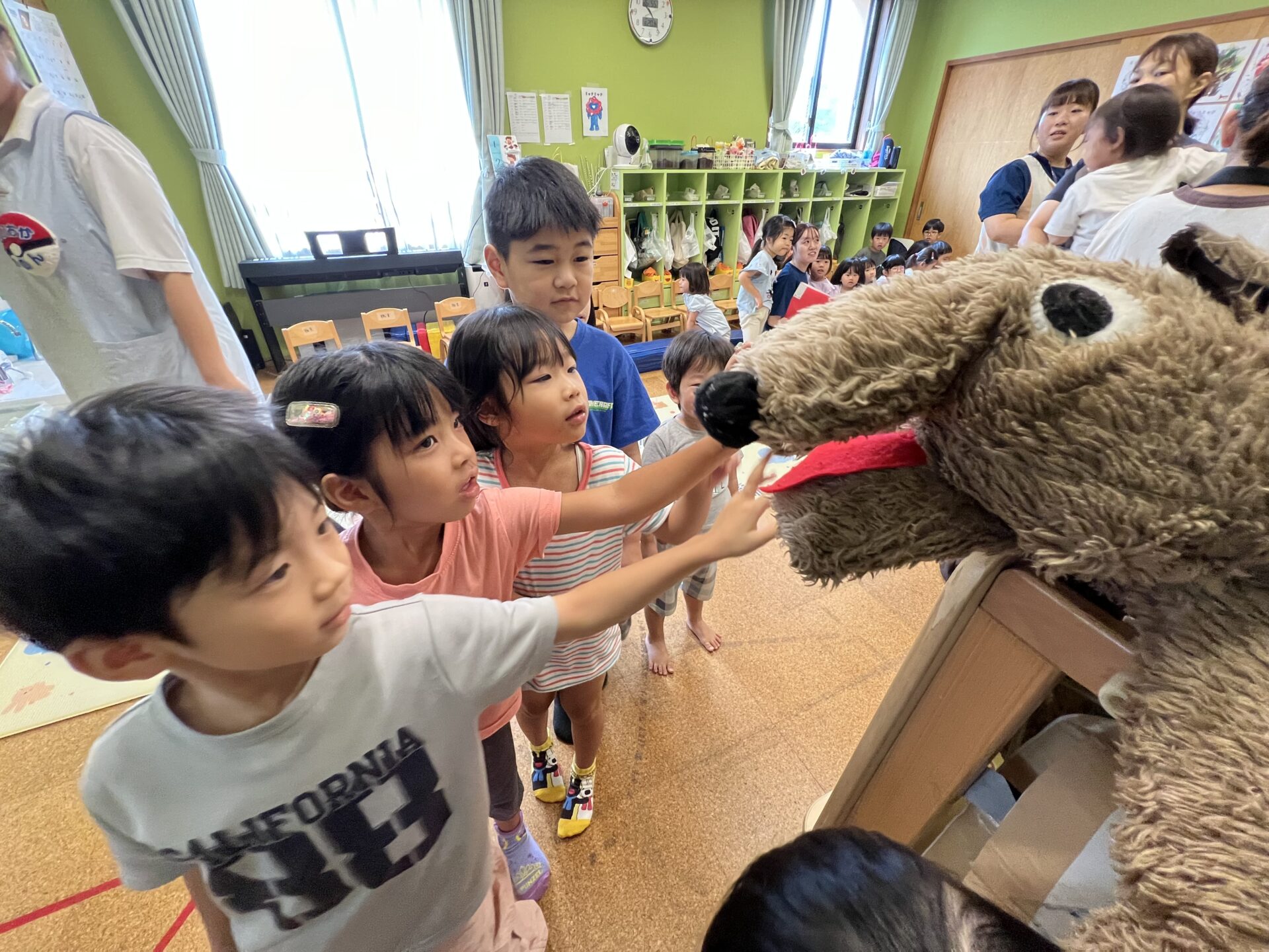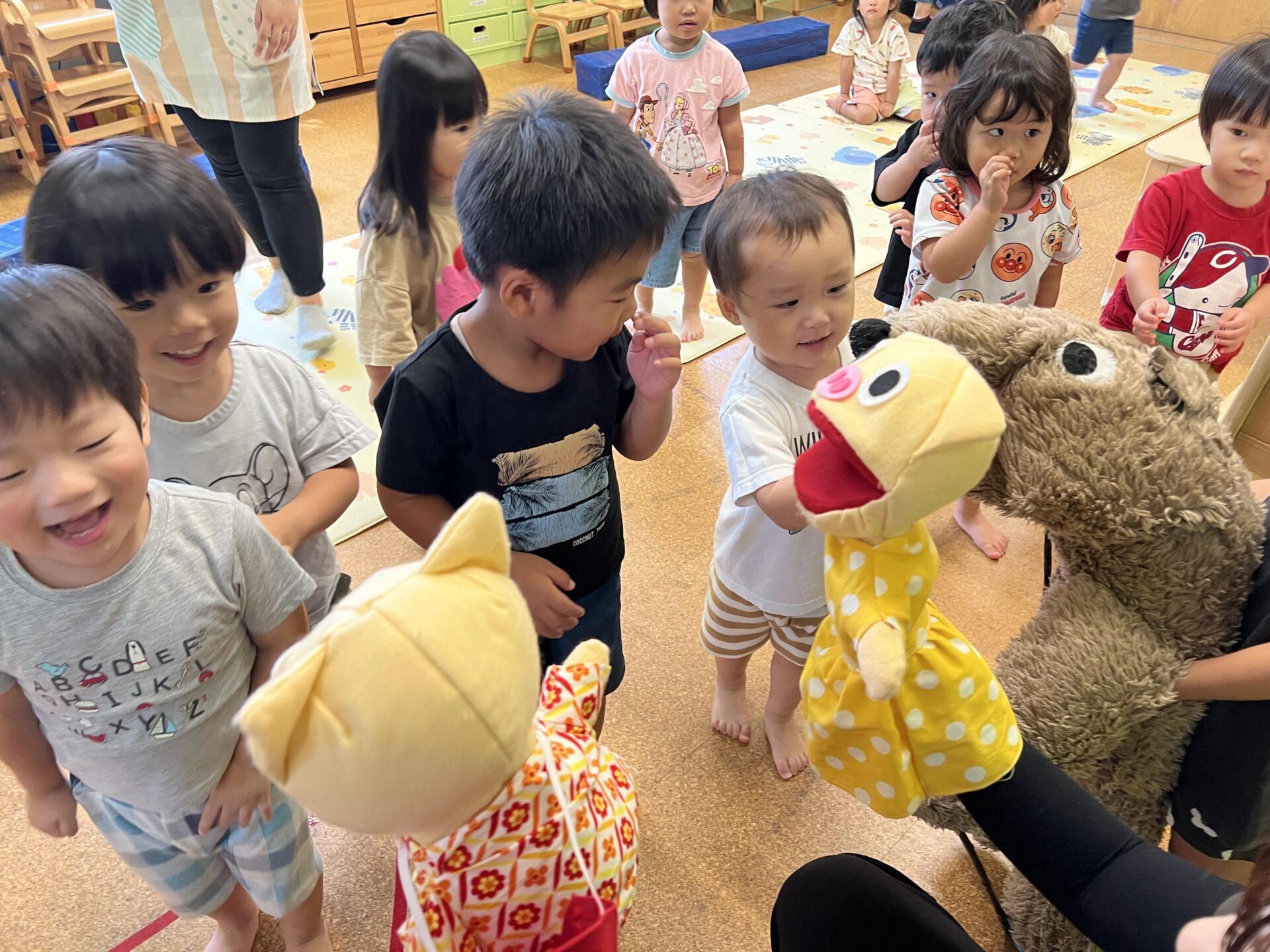 お話の途中に効果音✨もあって、子ども達は大笑い😄最後には、人形劇の方とも触れ合いとっても楽しい時間を過ごすことができました😊