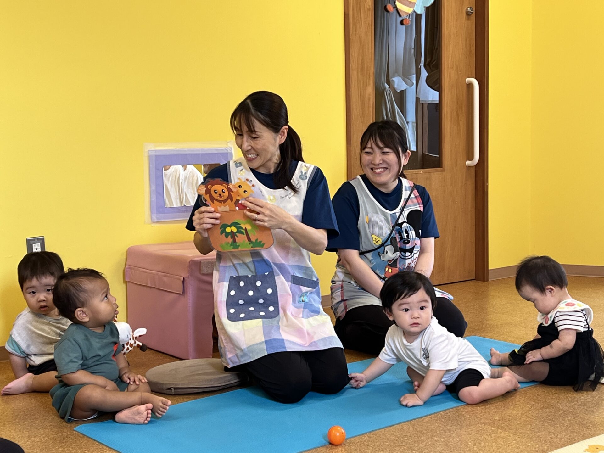 0歳児・うみチームも一緒に参加し、朝の会やふれあい遊びを楽しみました😊