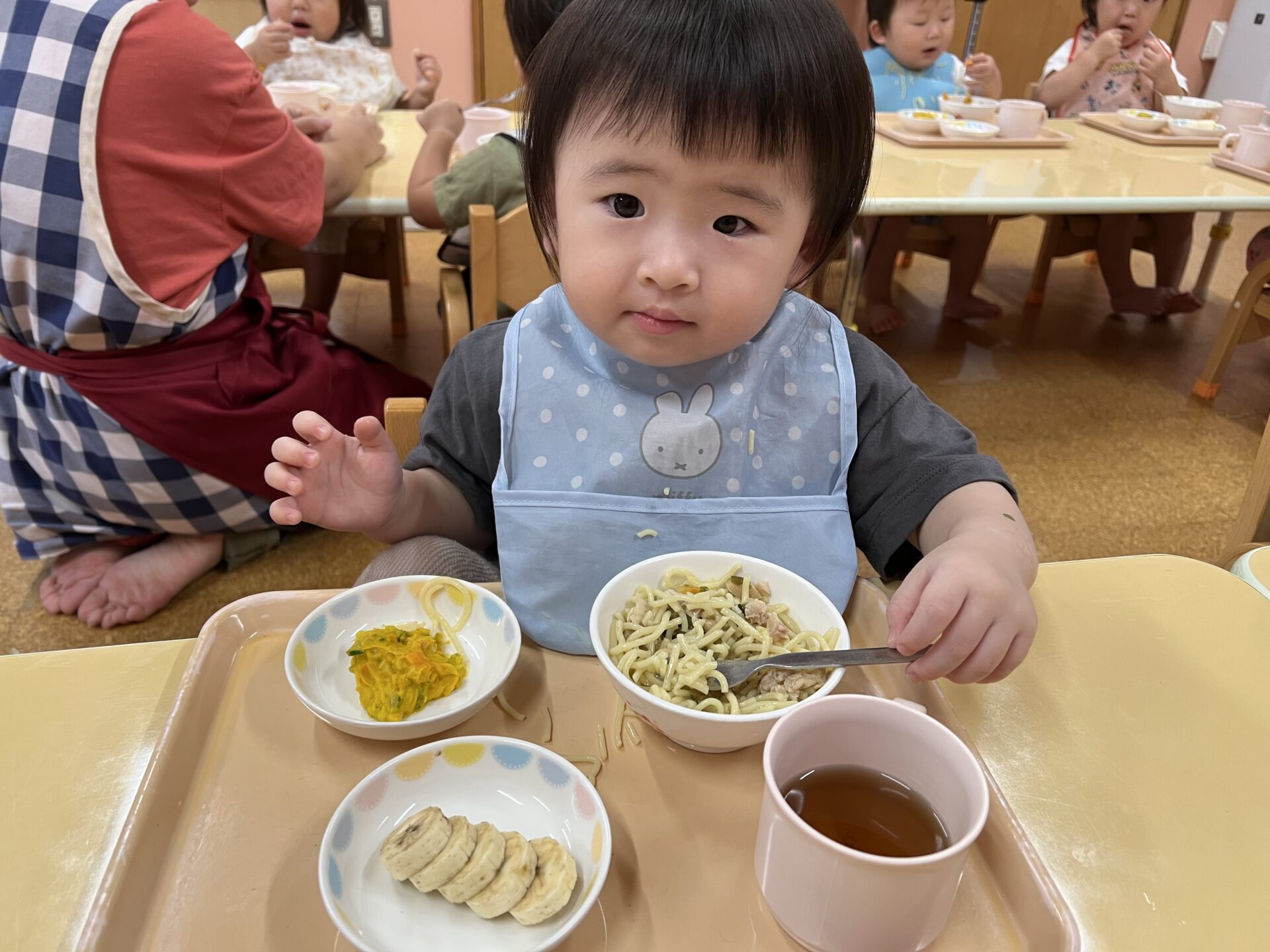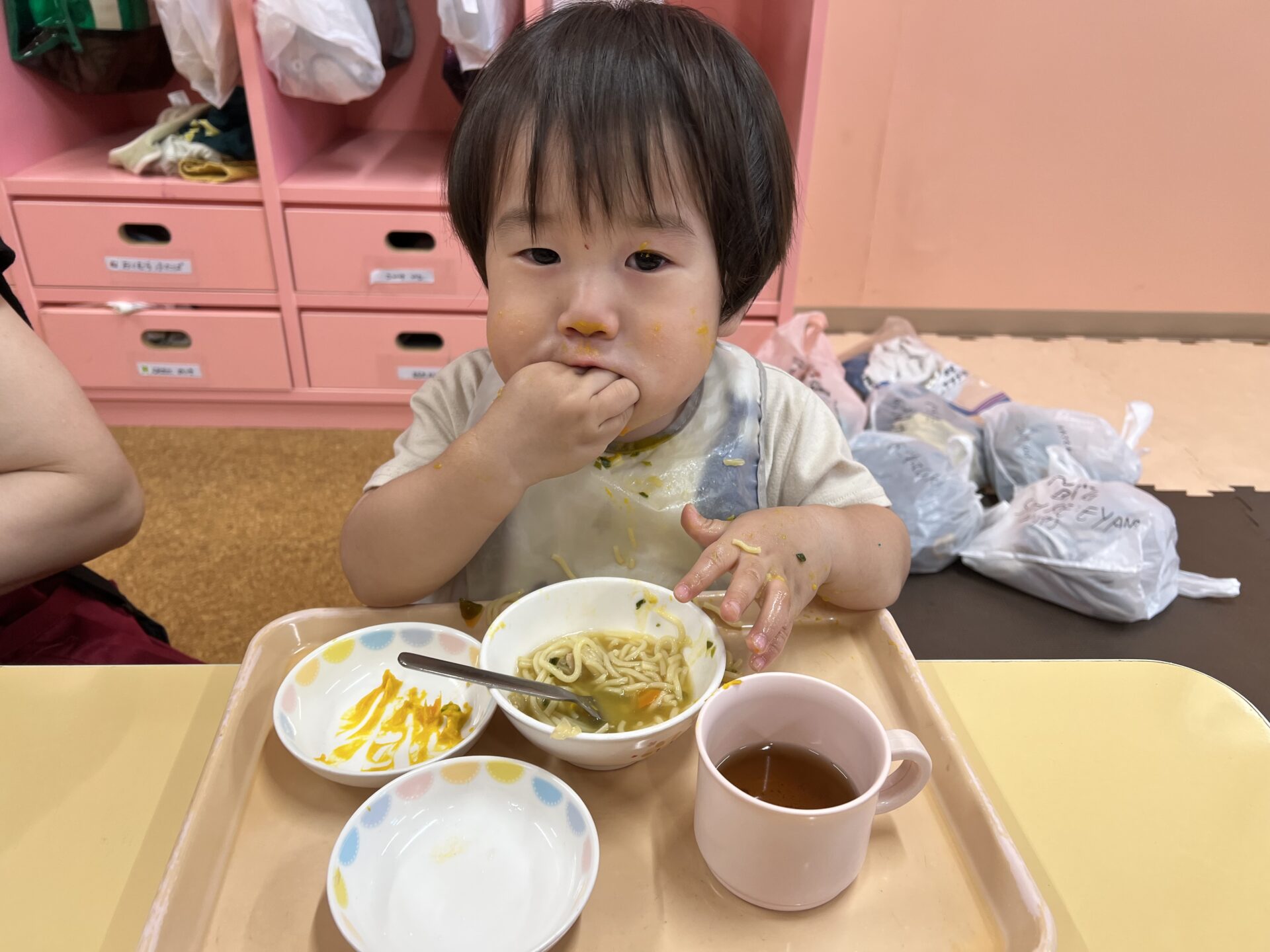 1歳児・だいちチームさんは、寒天遊びで盛り上がったそうです😊美味しいラーメンに、ツルツルといい音が聞こえてきました。