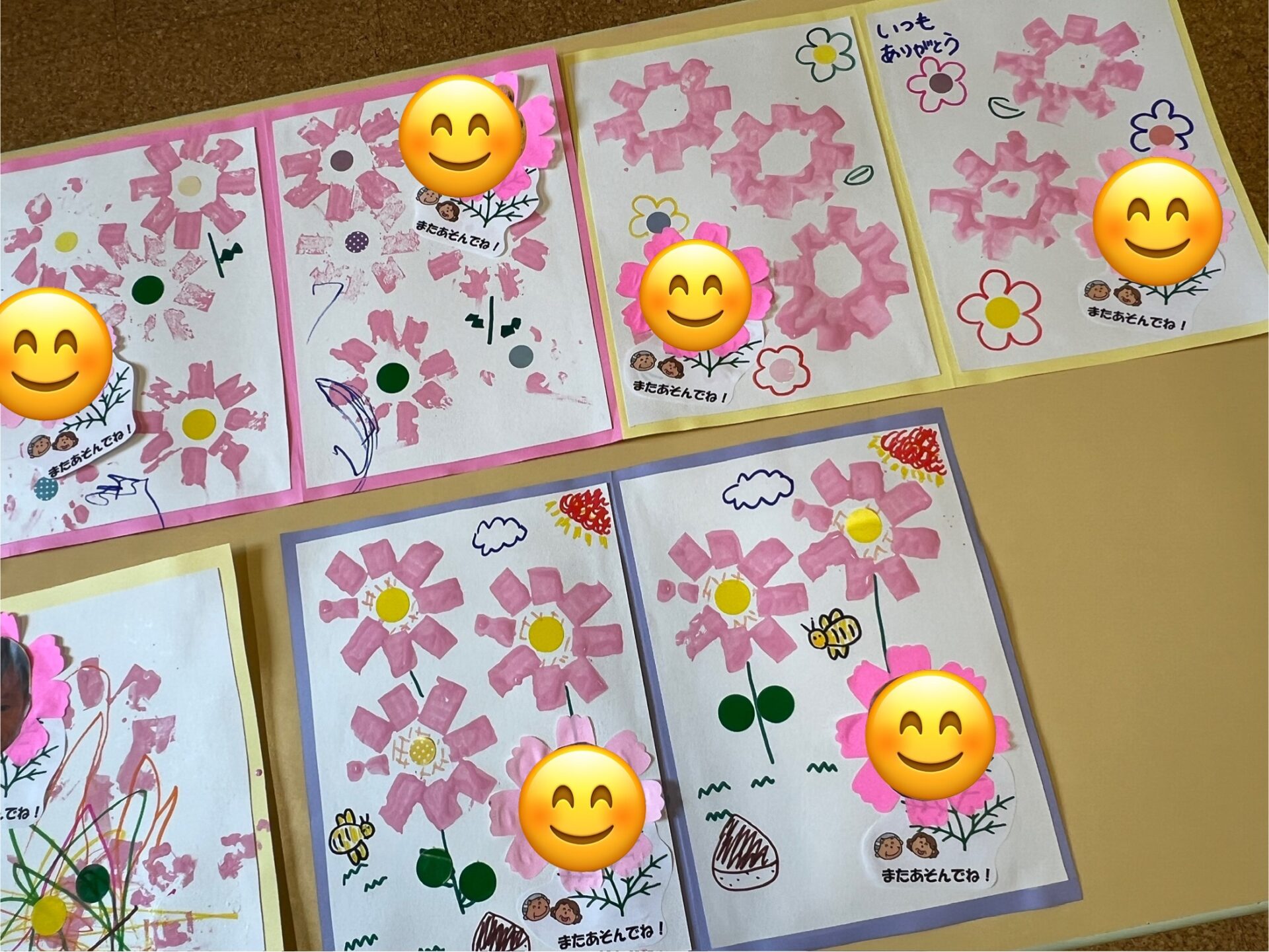 今回は、秋の製作「コスモスのスタンプ」をして、敬老の日のプレゼントを作りました😊毎回、楽しみにしてくれているようで、お母さんたちの方が、集中して頑張って作ってくれています。素敵な作品が出来ました😊