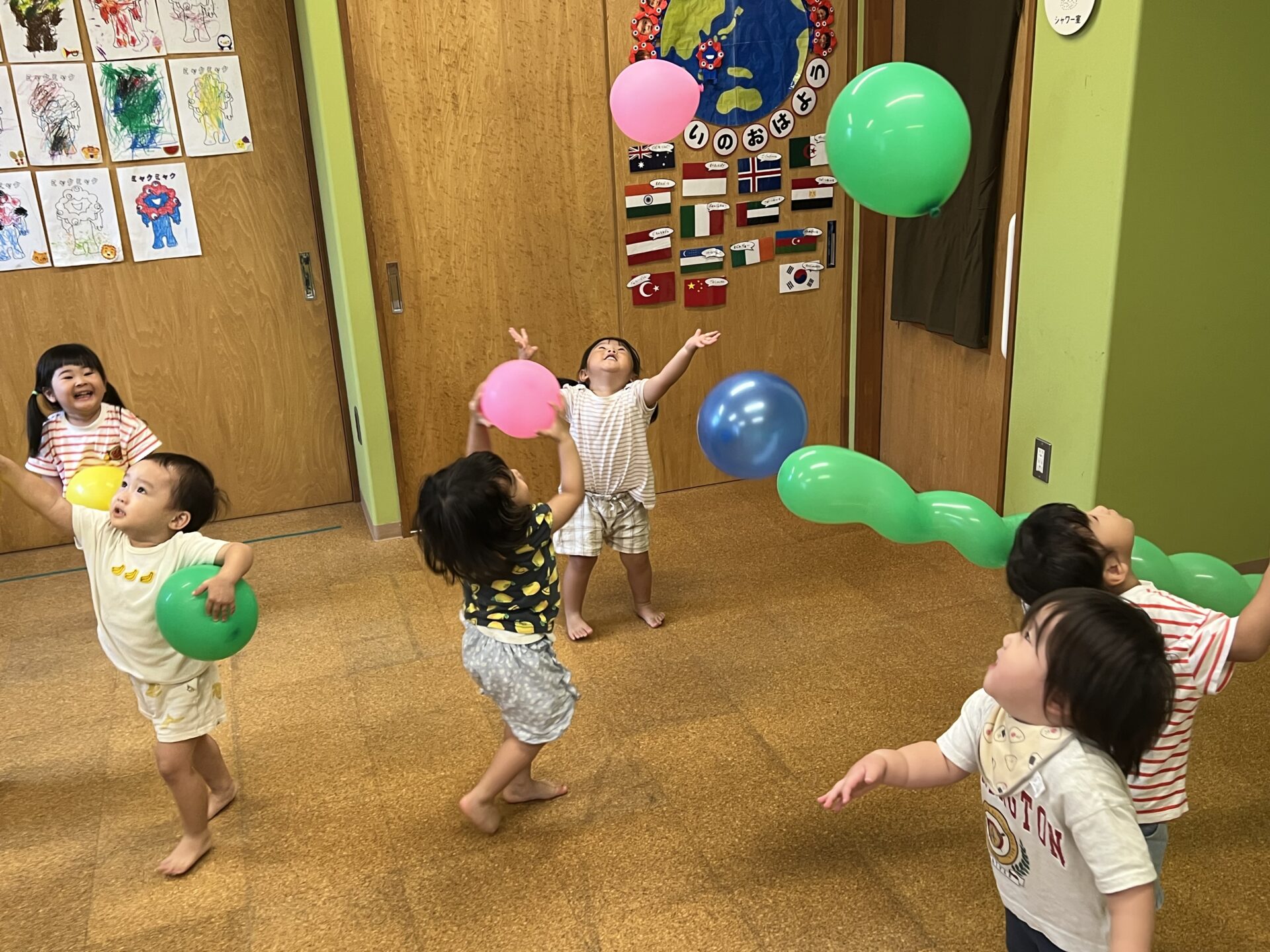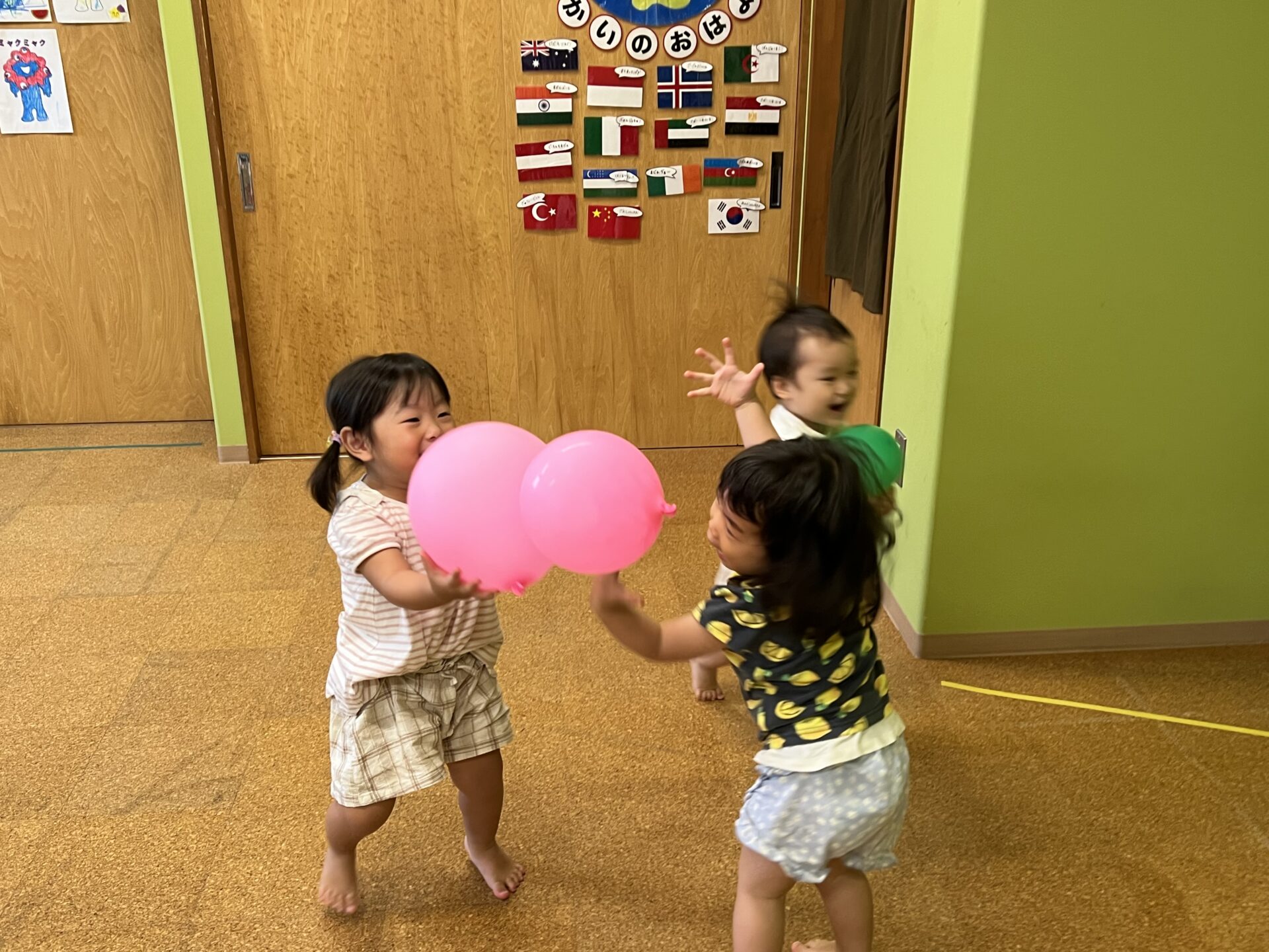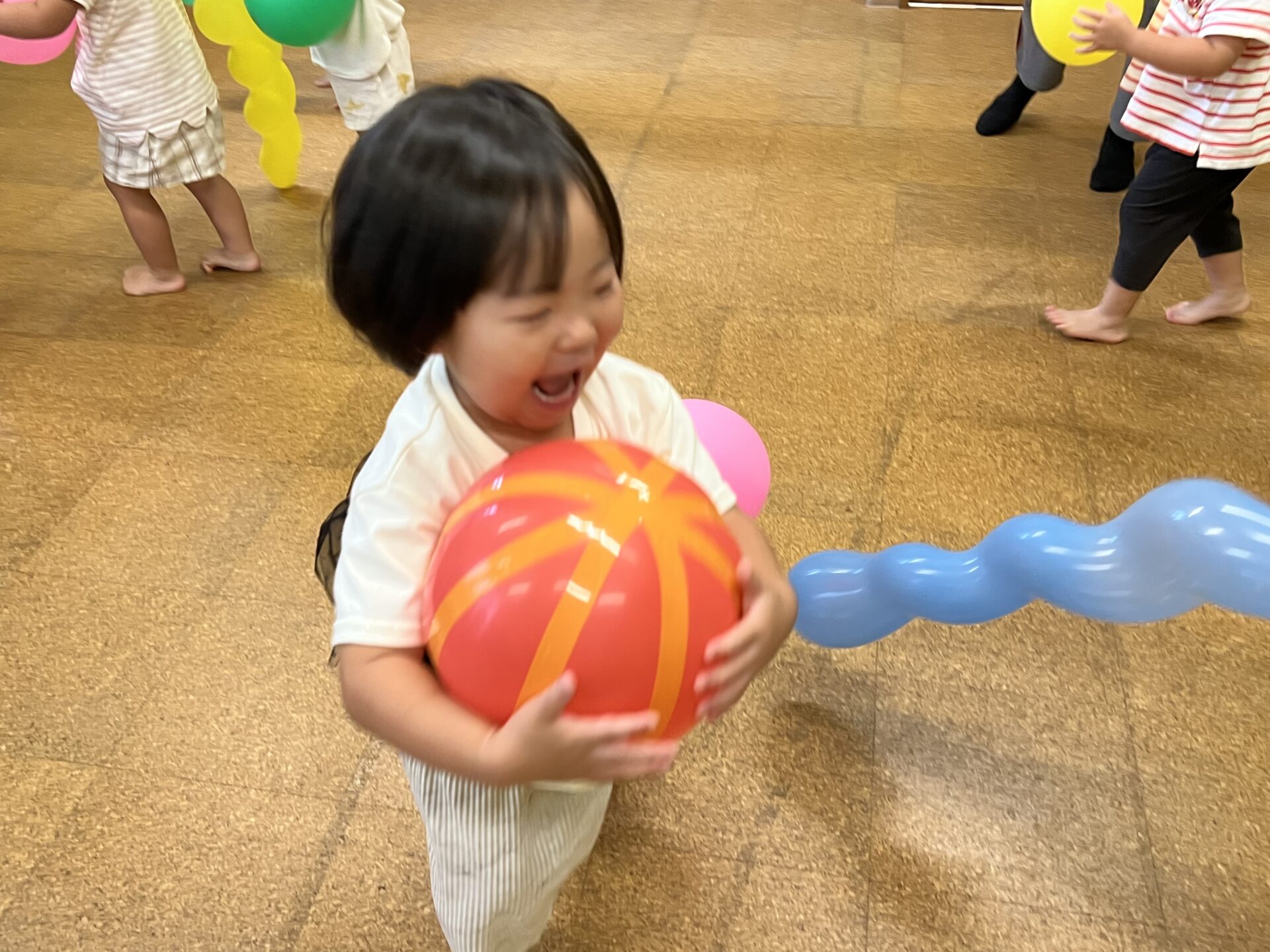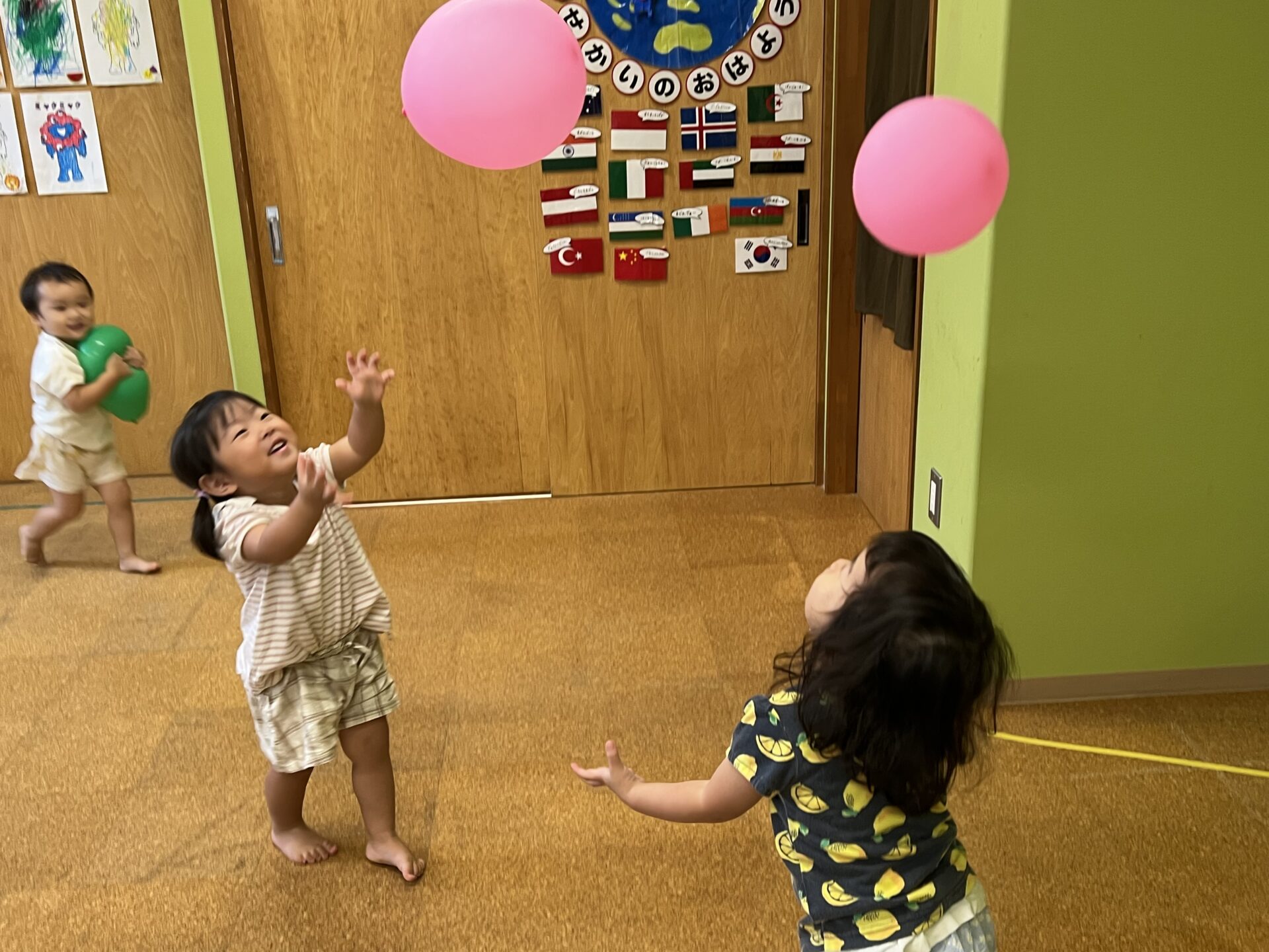 2歳児・あめチームさんが、元気に風船遊びを楽しんでいました😊