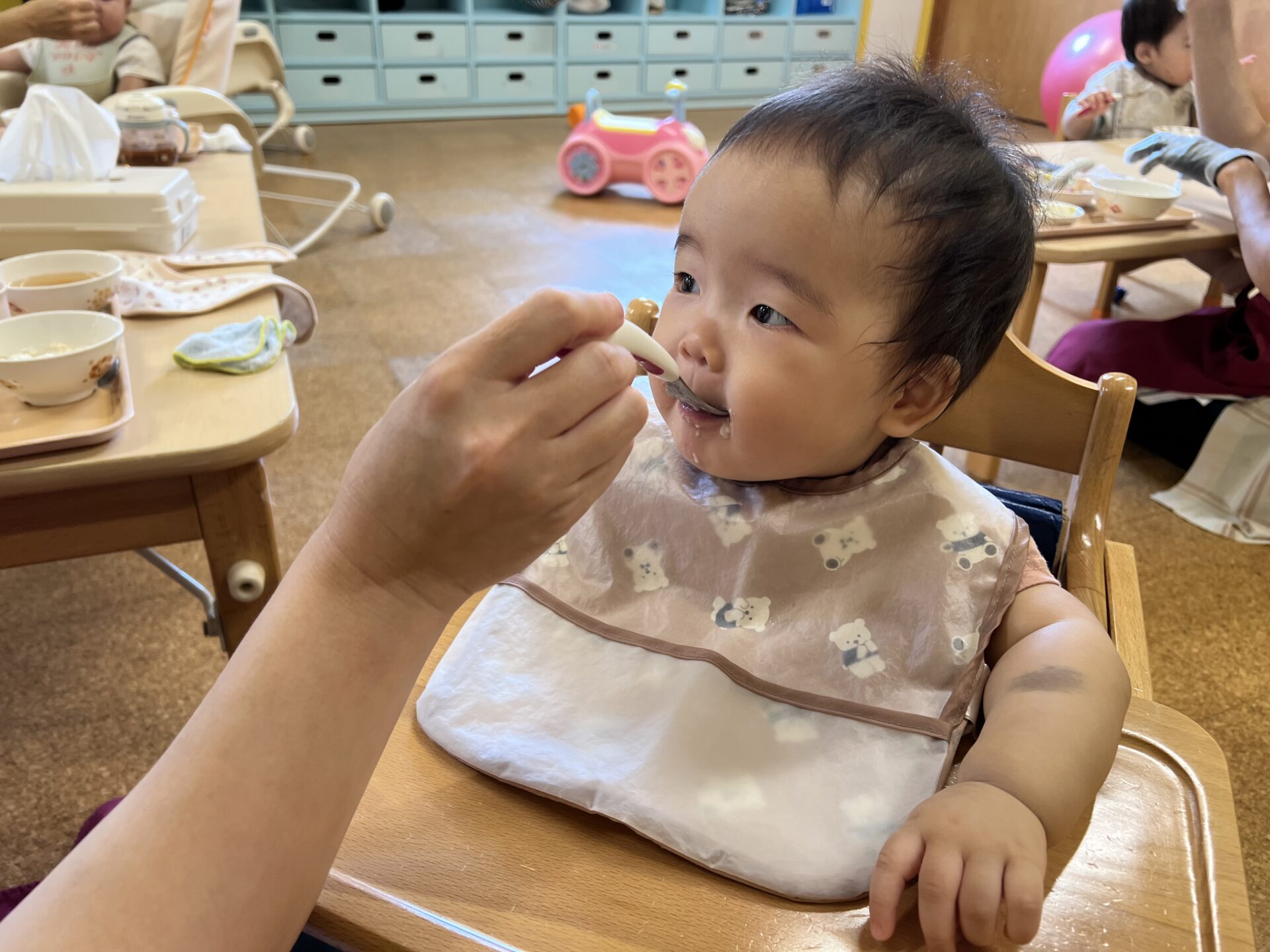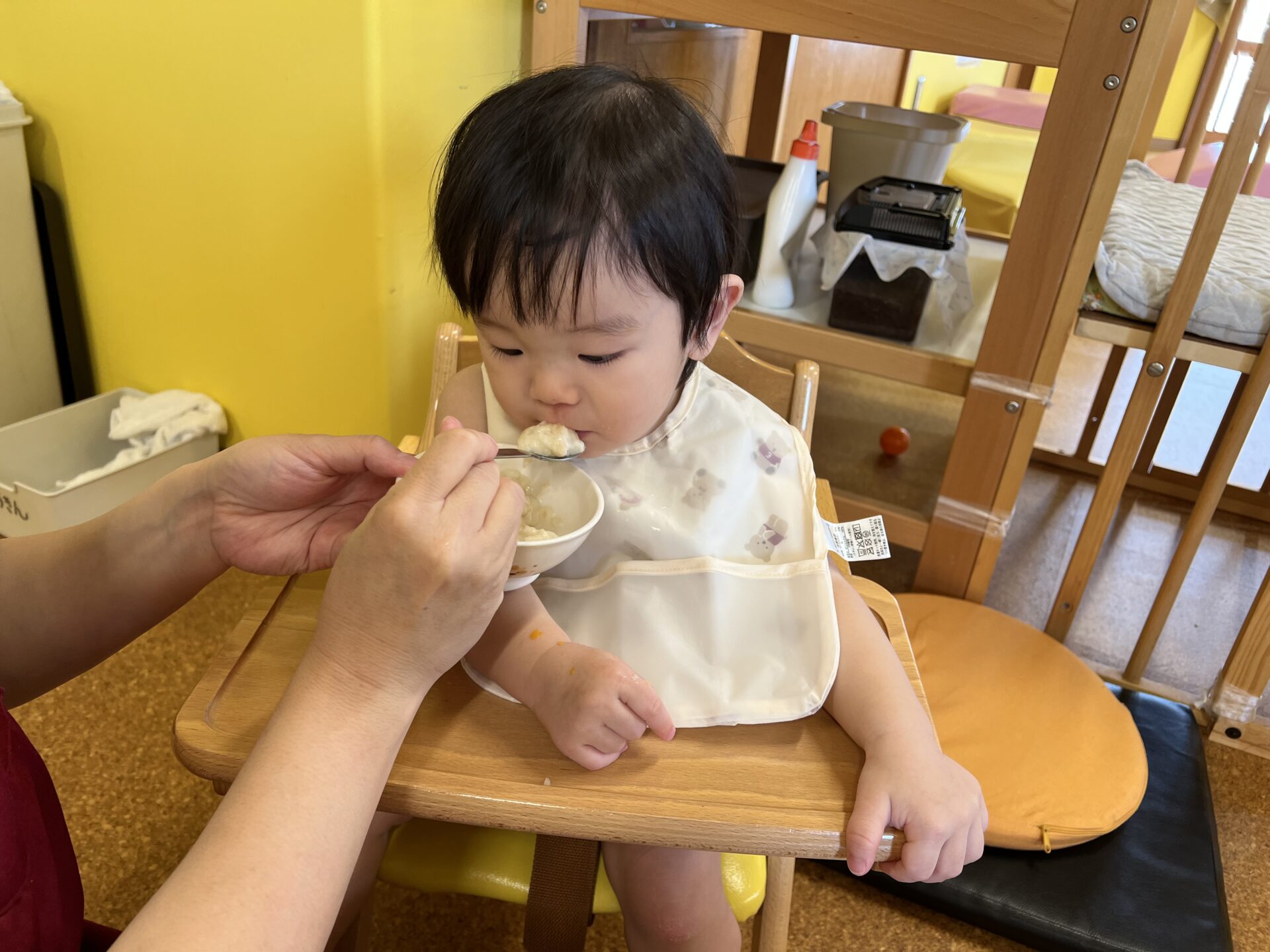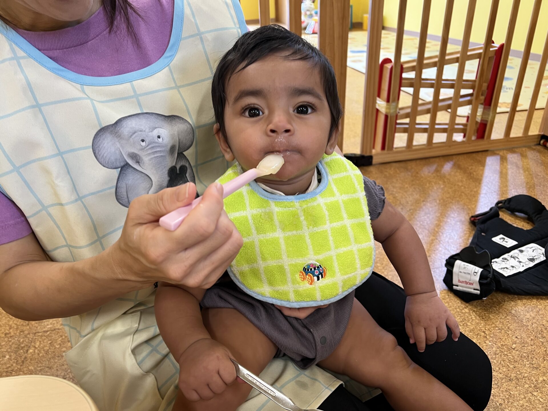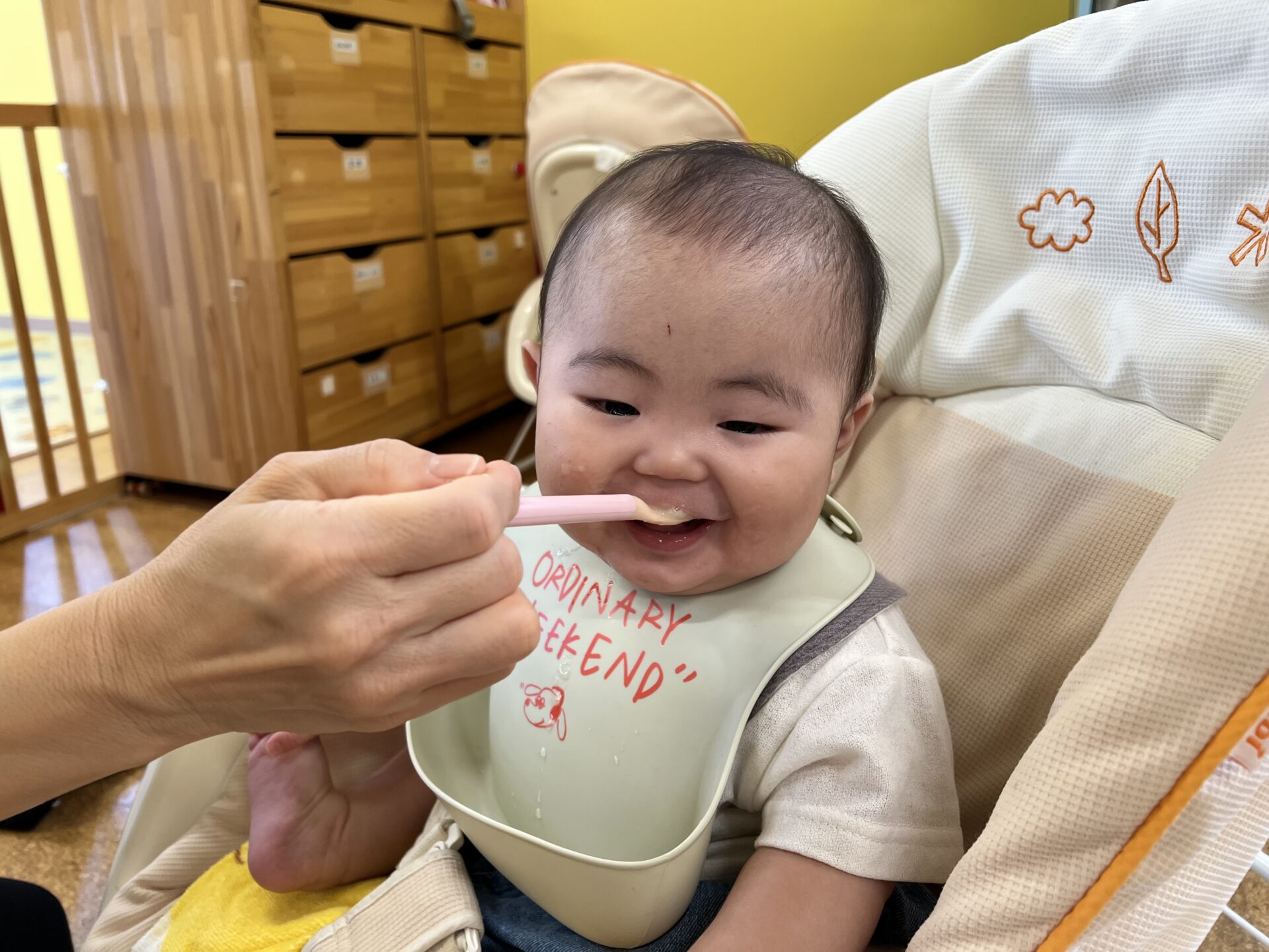 初期食のAちゃんは、なかなか保育園でミルクや食事に慣れなかったのですが、少しずつ離乳食が食べられるようになってきました!
