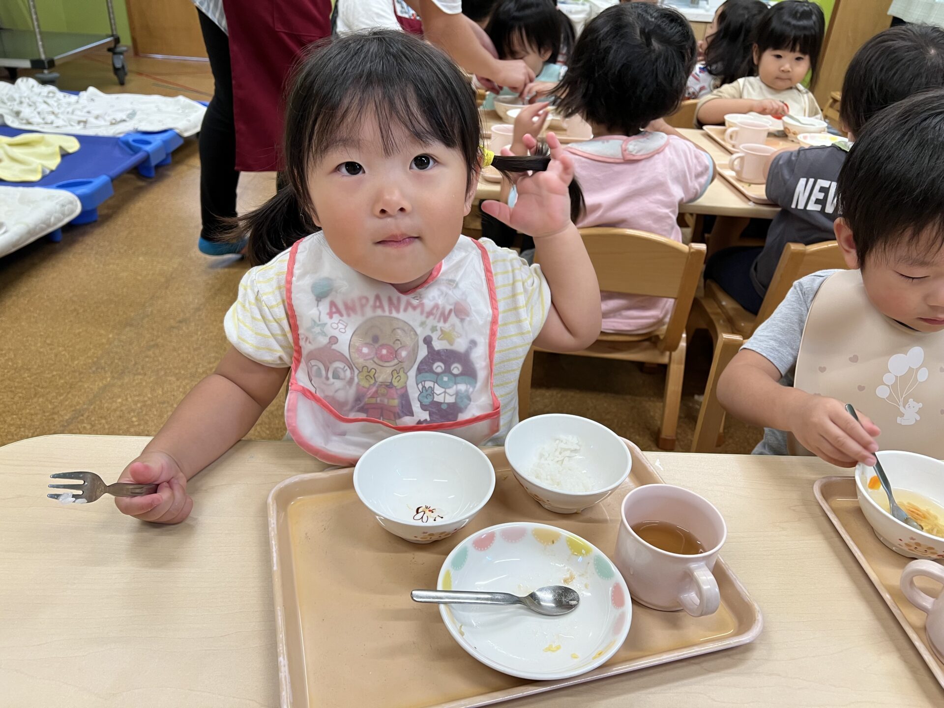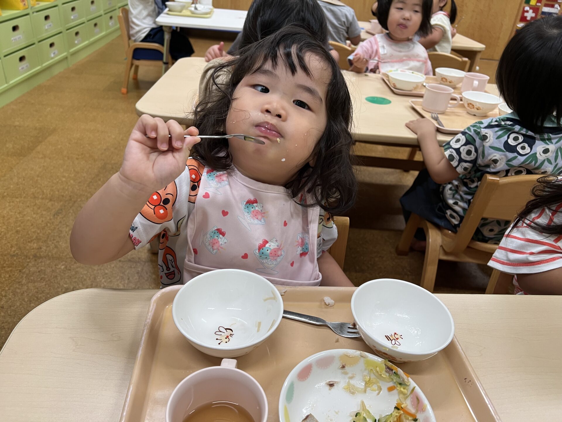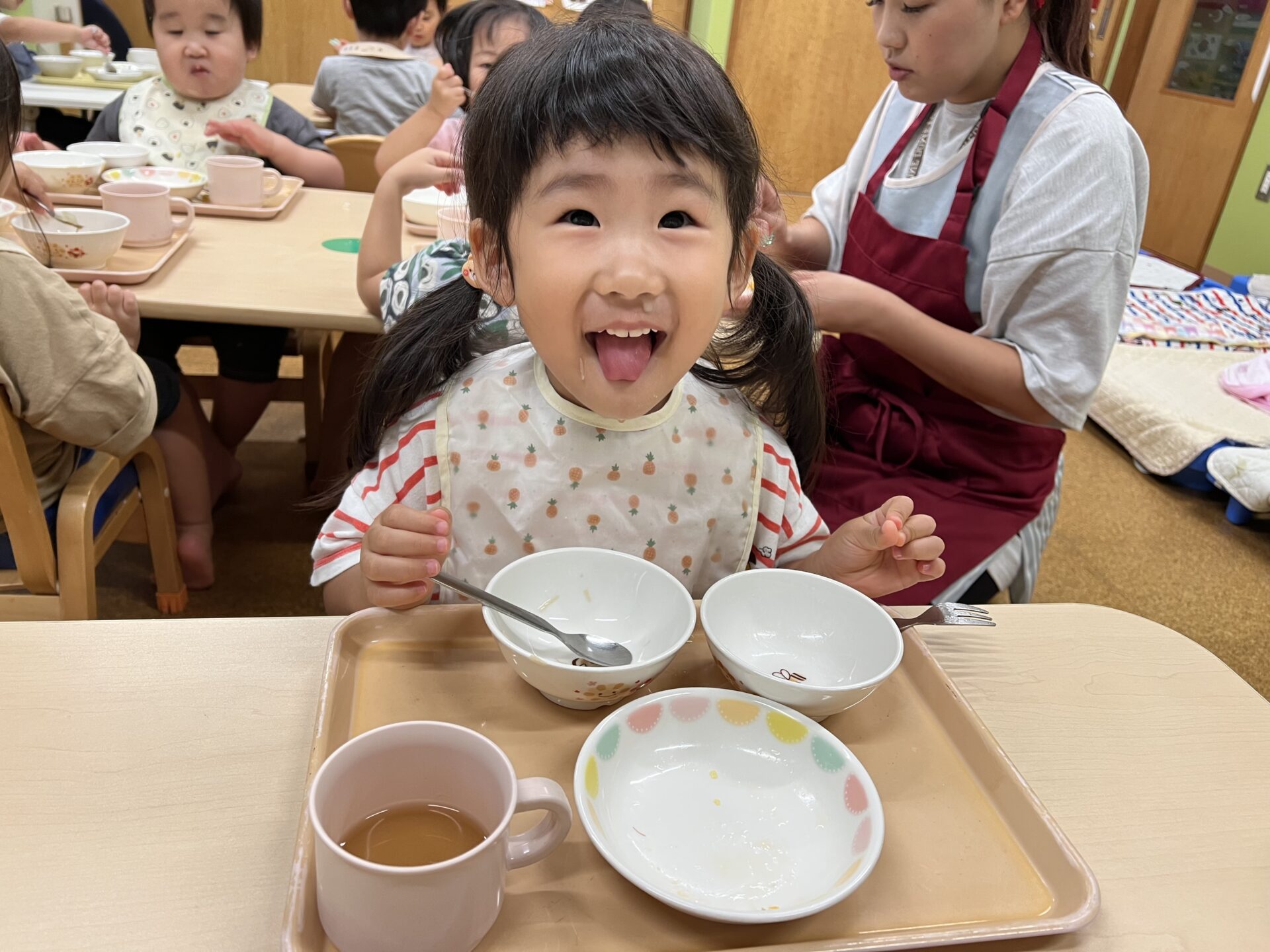 給食の時間をのぞいてみると、ほとんどの子がモリモリ食べていて、完食している子が多かったです😊