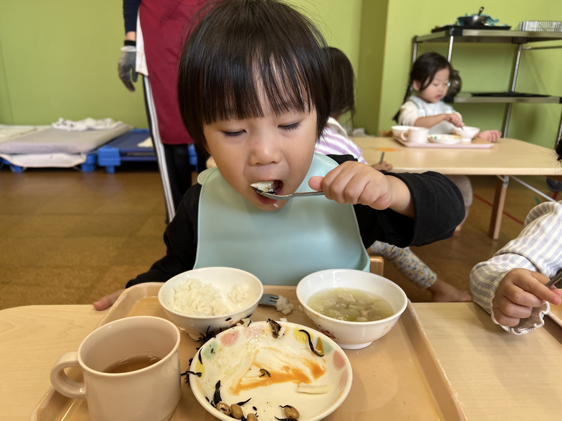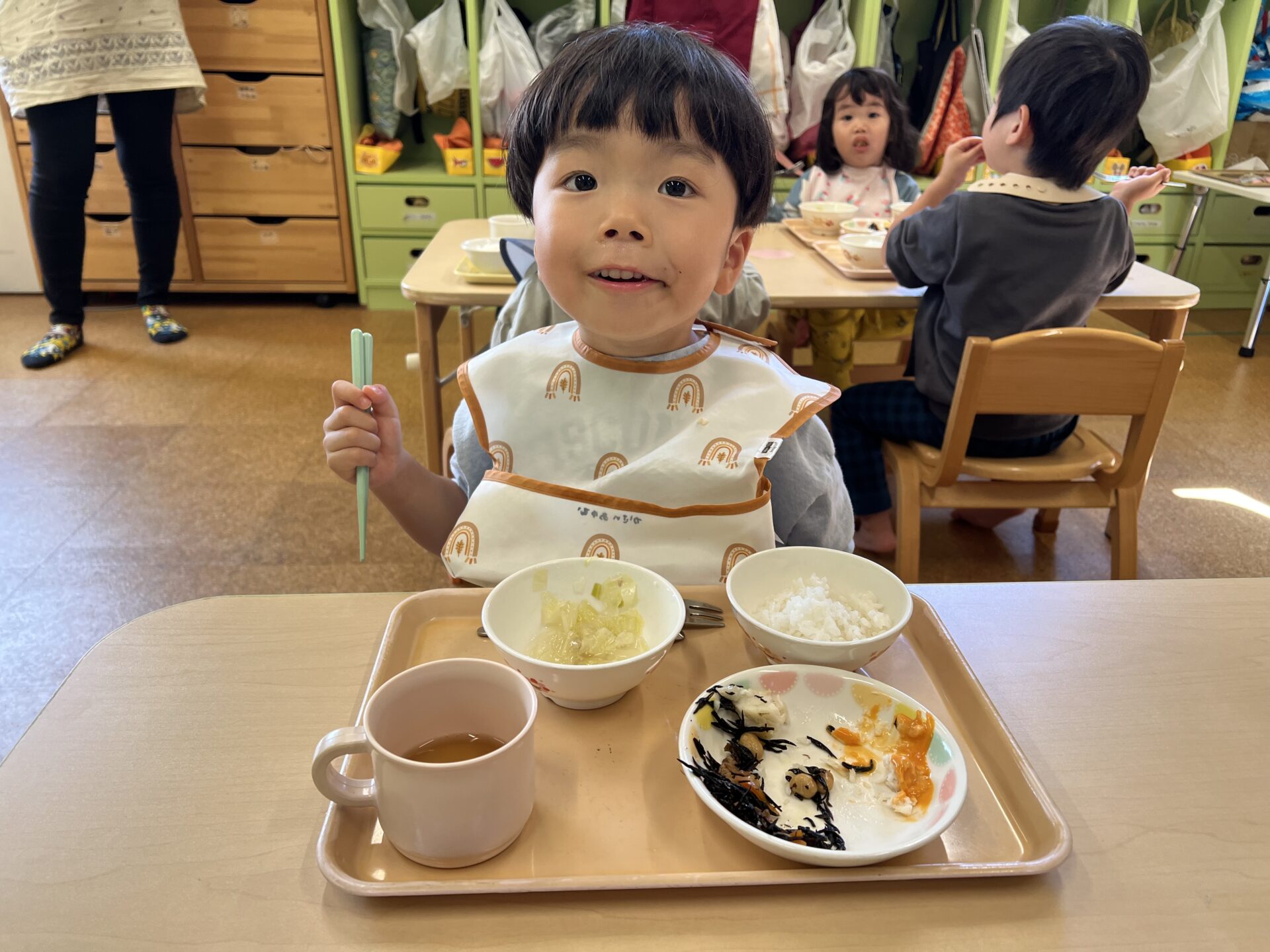 春雨スープが人気で、あっという間に完食していました。元気なあめチームさんは、給食ももりもり食べていましたよ😊