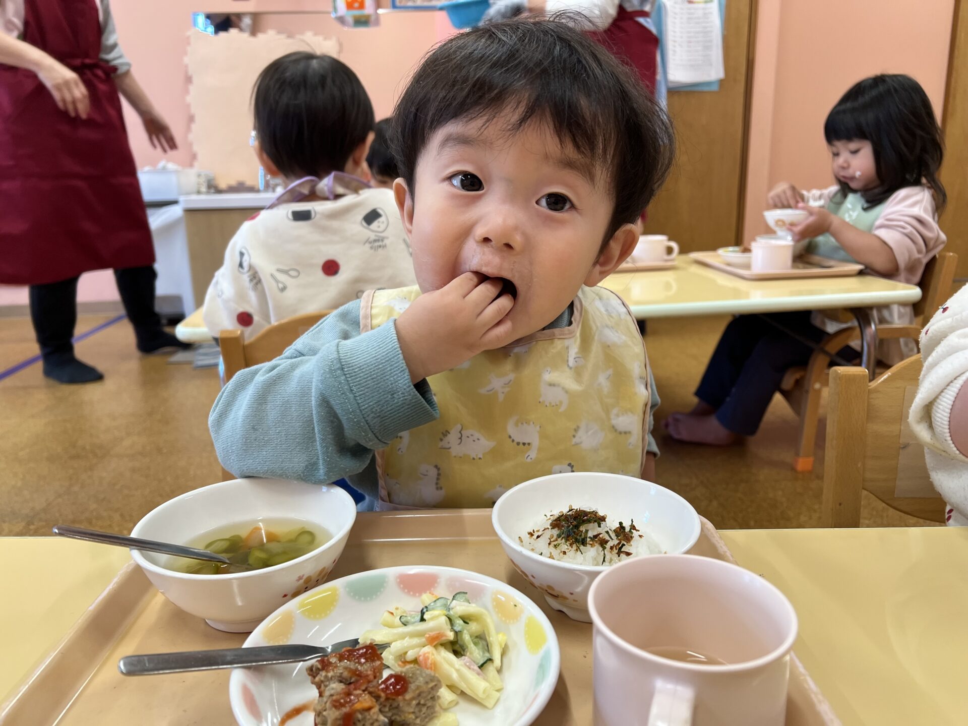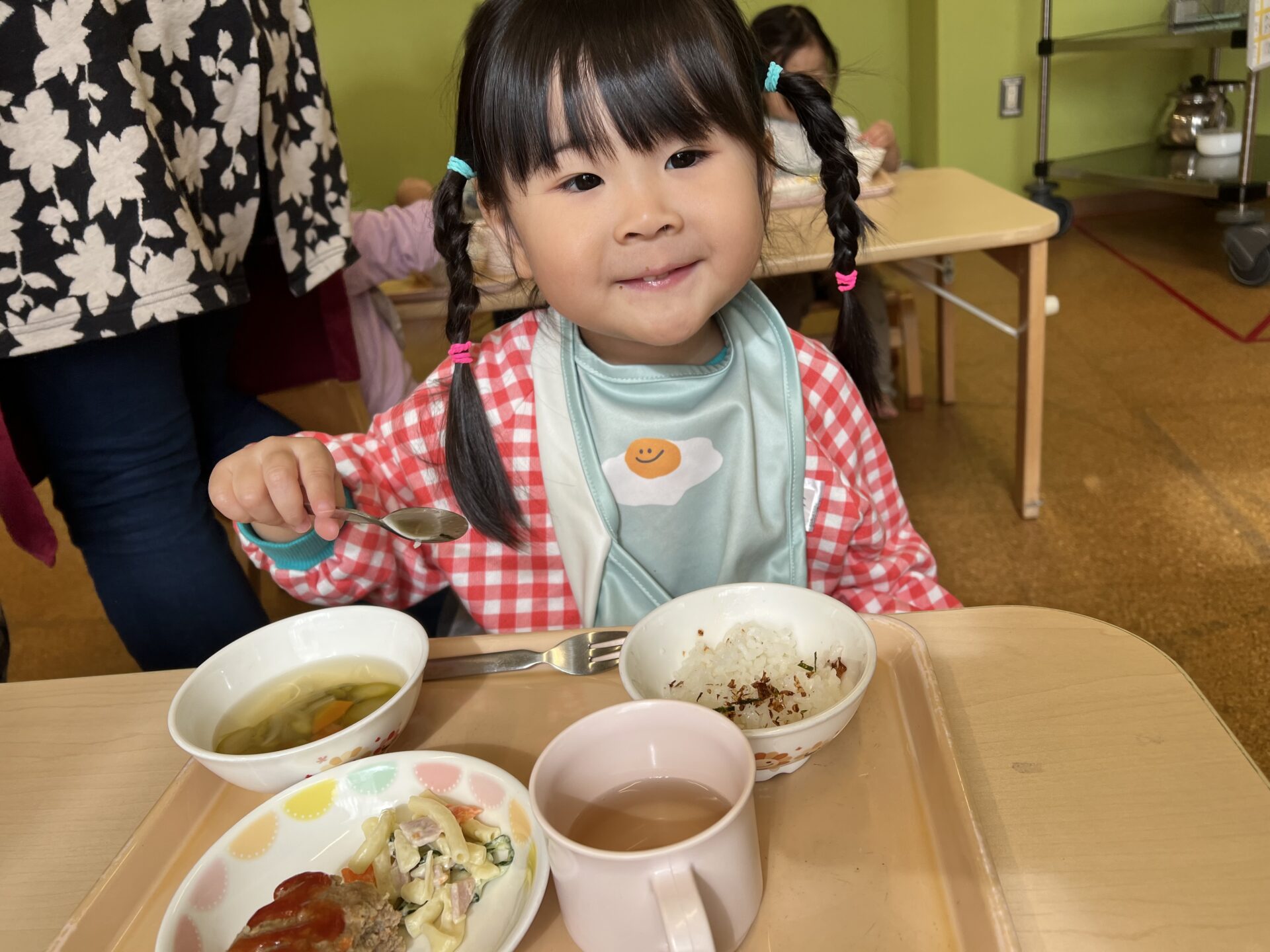 2歳児・あめチームのIちゃん😊好きな食べ物は『マスカットです💗』とバッチリ答えていました。