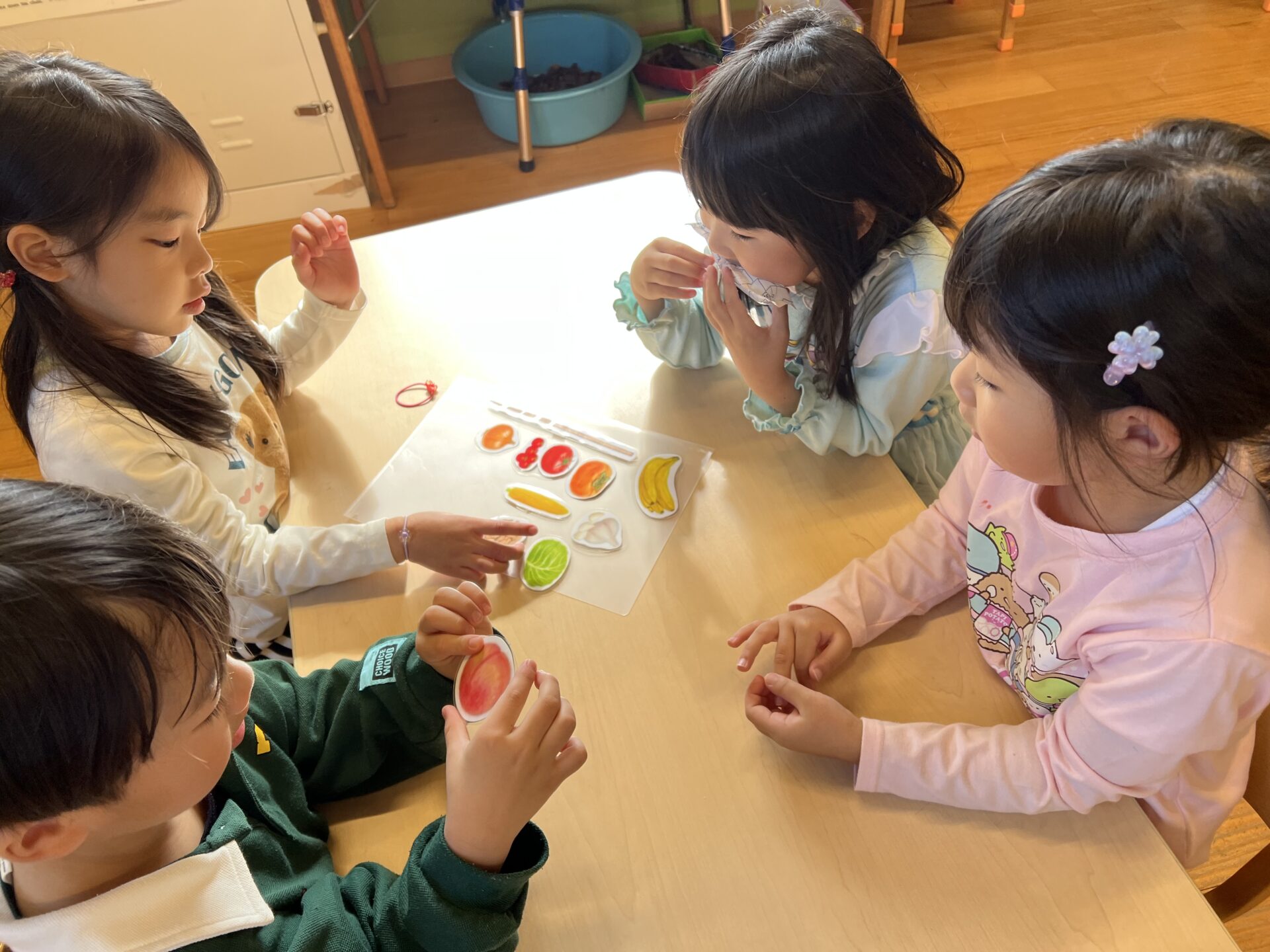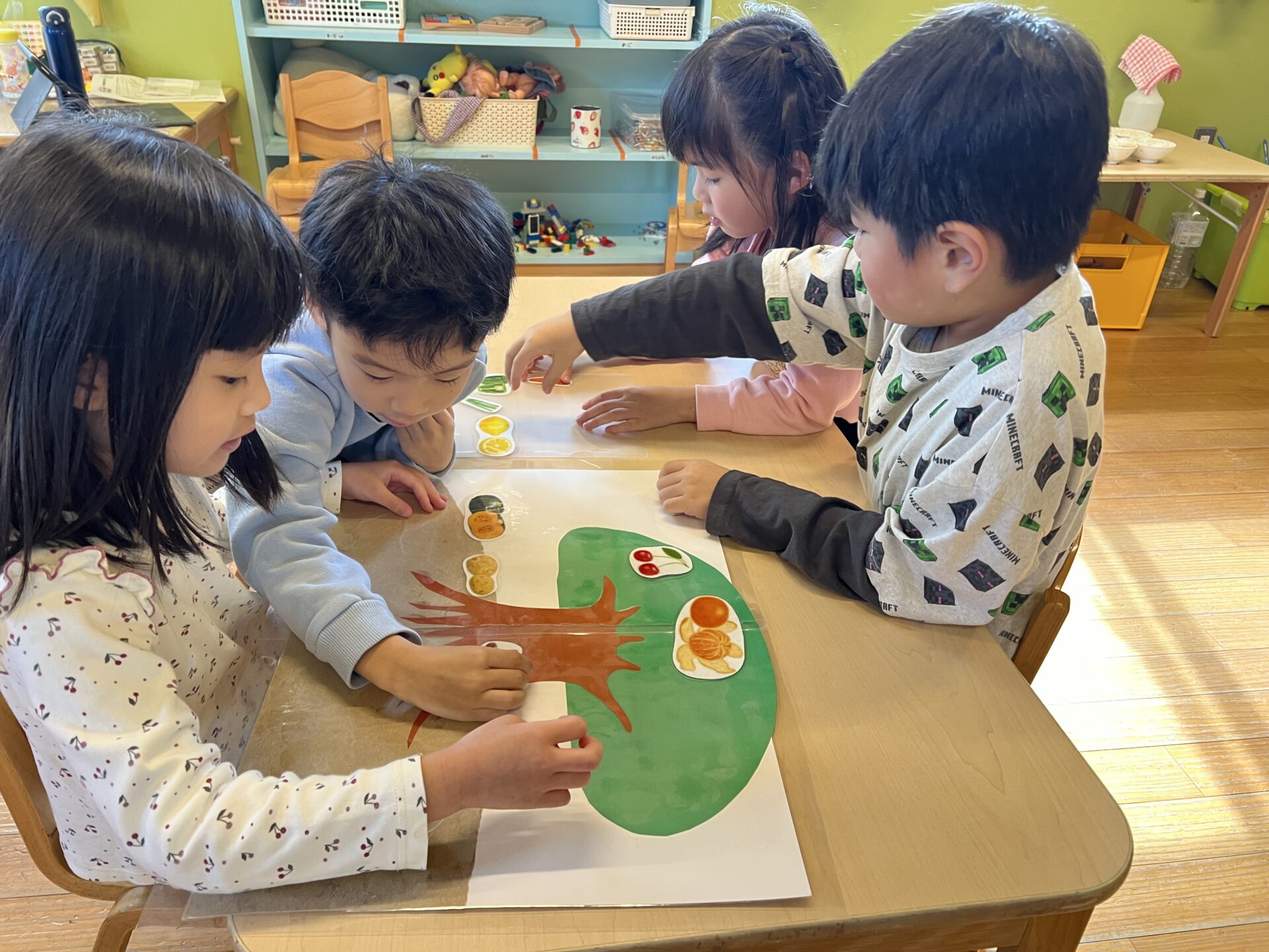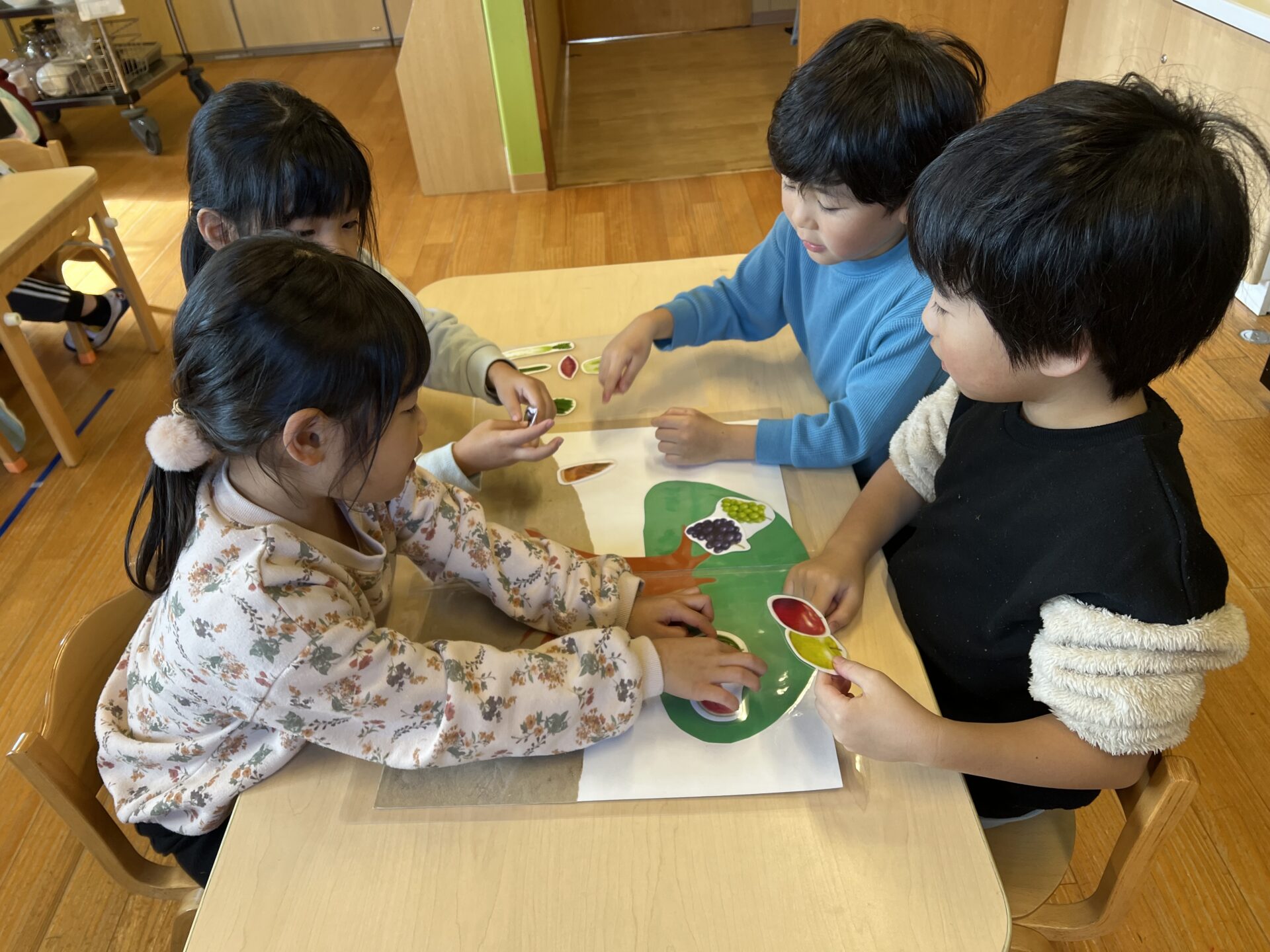 各チームで、考えながら貼っていきます😊Rちゃんは、「これは、つちのうえだったはず!」とみんなに熱弁していました✨