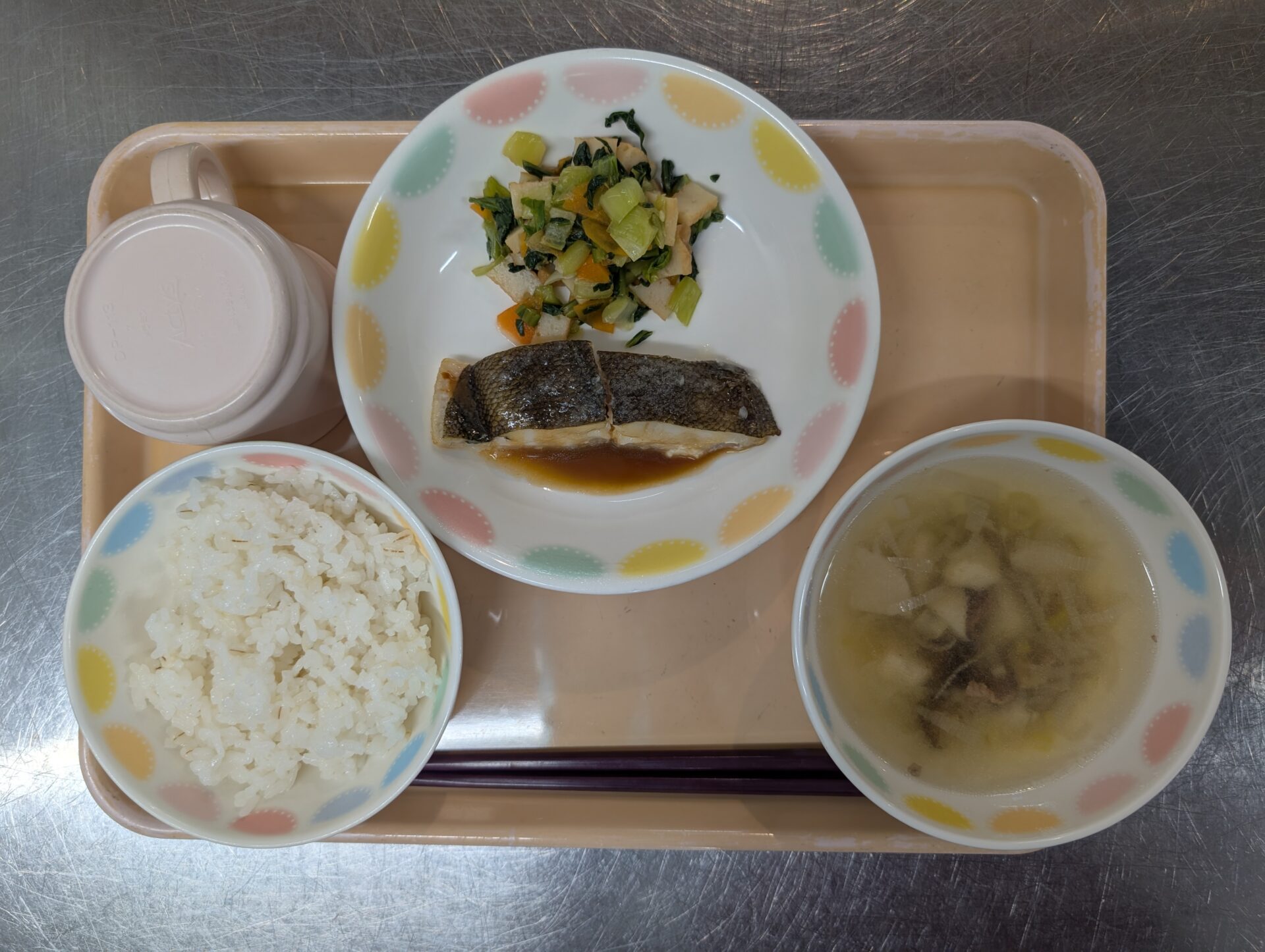 今日の郷土料理は、山形県。麦ご飯、カレイのバター醤油かけ、チンゲン菜と平天のおひたし、芋煮汁です😊今日は、全国的に師走並みの寒さ💦と朝のニュースで言っていた通り、寒かったので芋煮汁がぴったりでした😊
