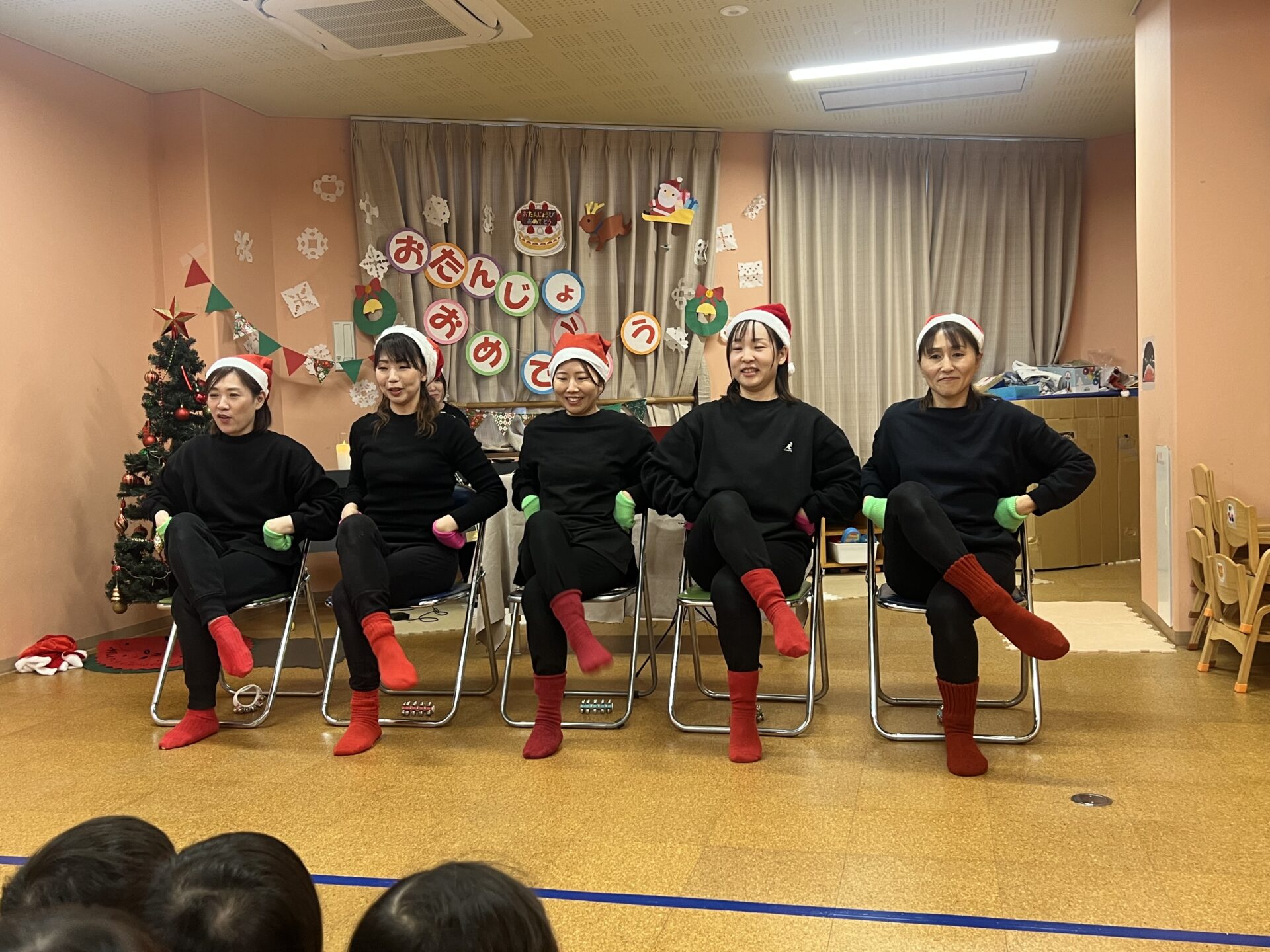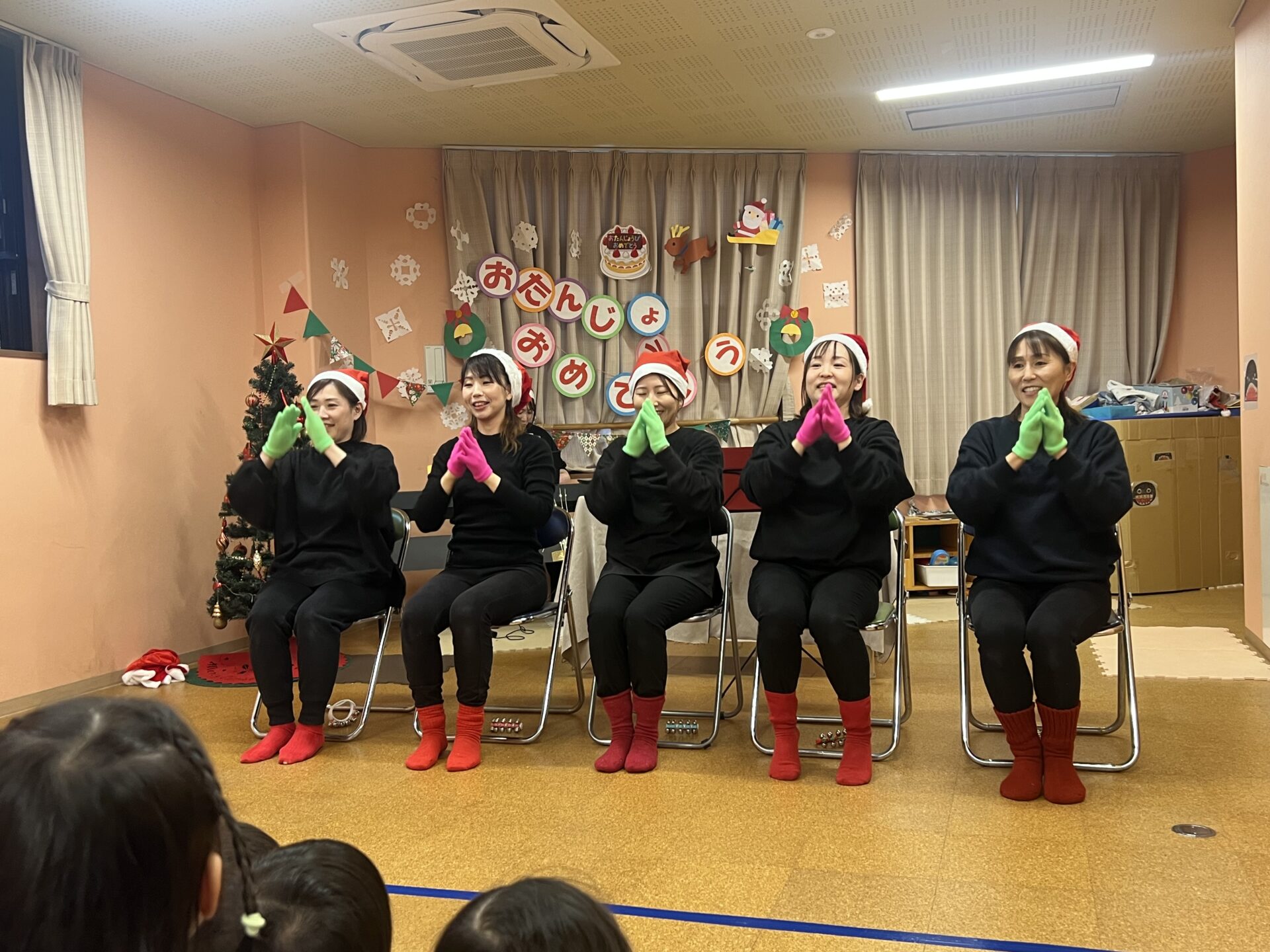 12月生まれのお誕生日の子のお祝いをした後は、先生達からのクリスマスプレゼント!