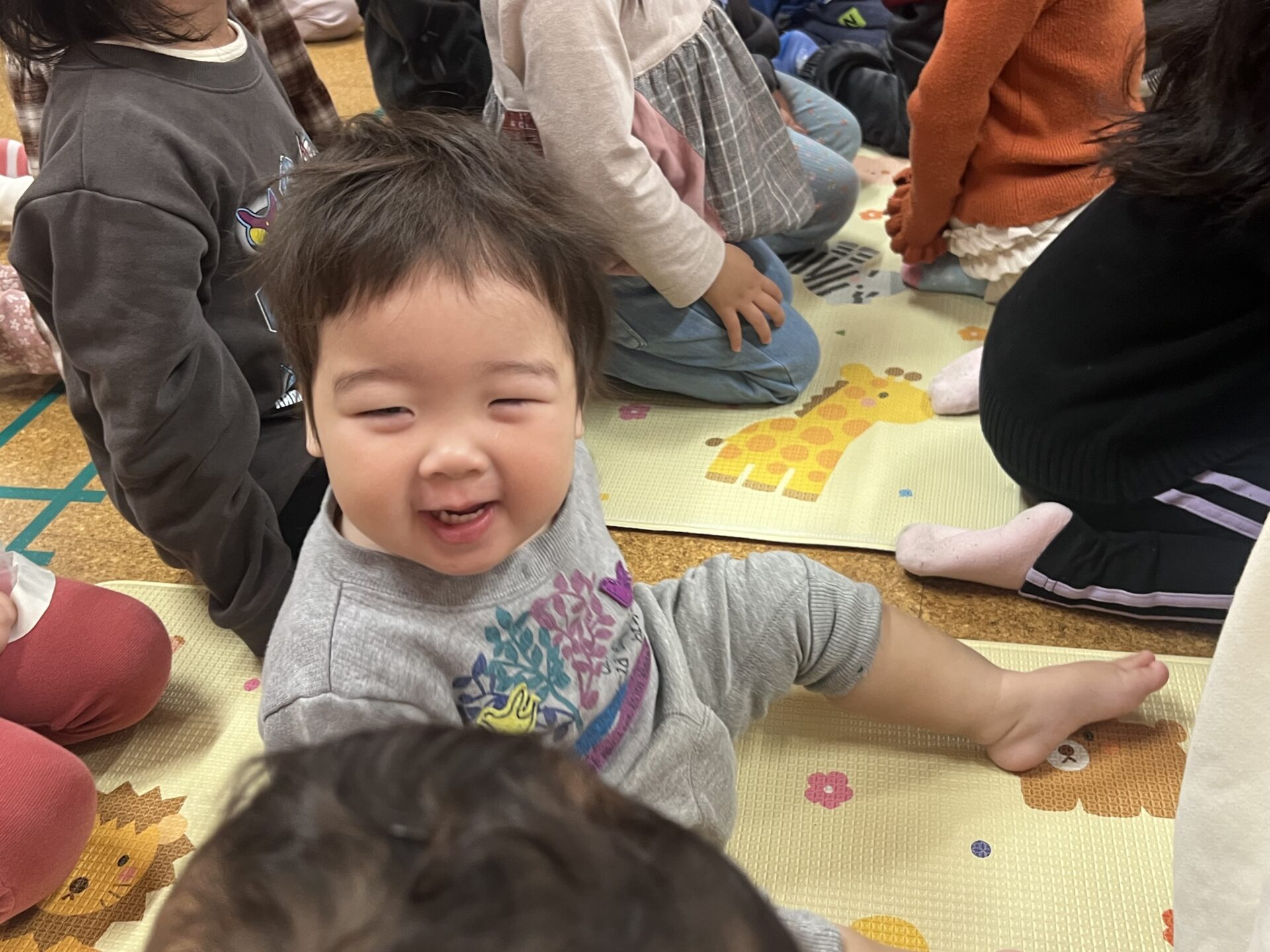 2歳児・あめチームのS君は大きな声で返事をすることができ、お歌の時にパチパチと拍手したり終始楽しそうな様子でした👏🏻