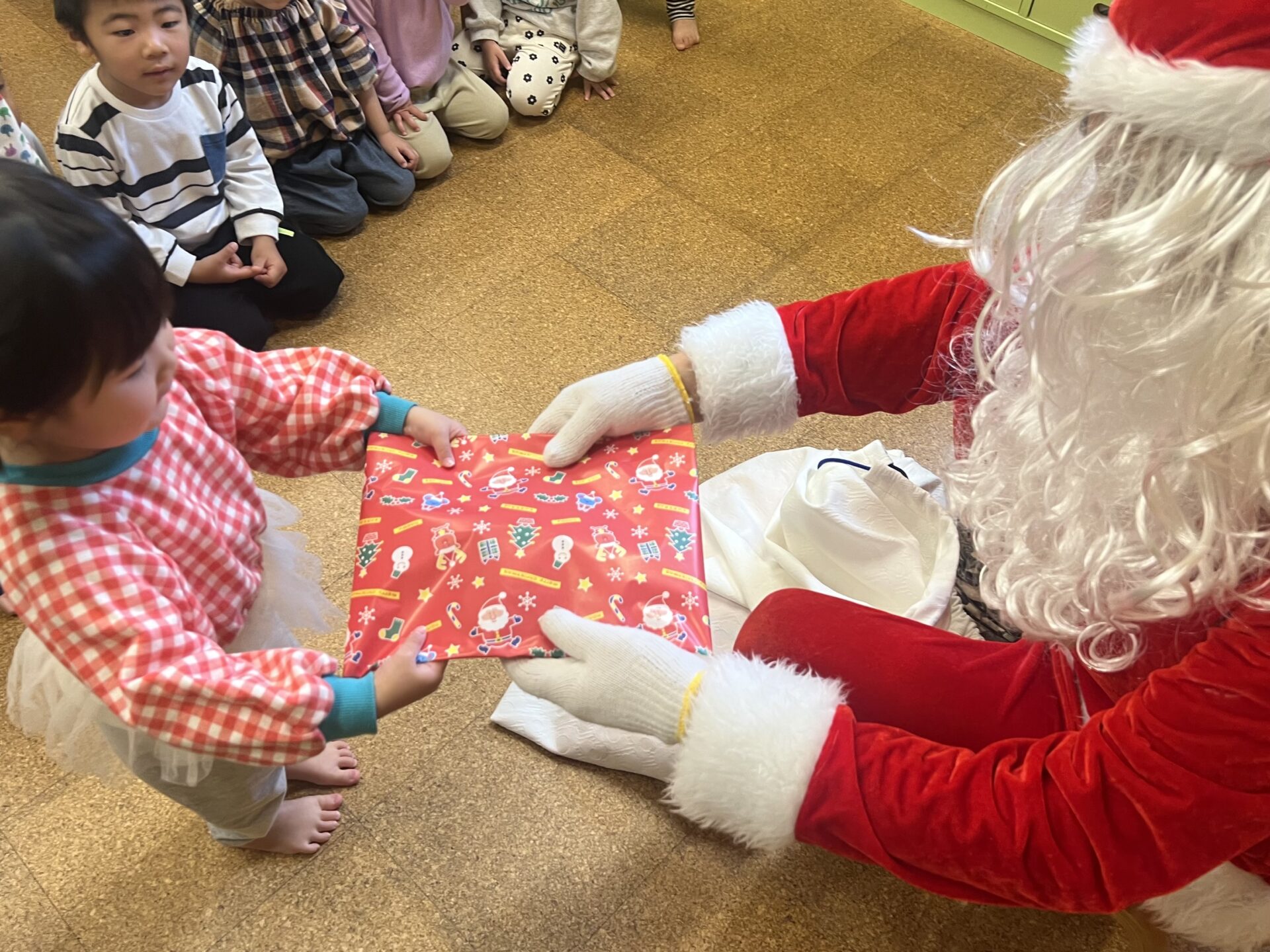 子ども達一人ひとりにプレゼントを手渡ししてくれたサンタさん!子供たちは大喜び💖