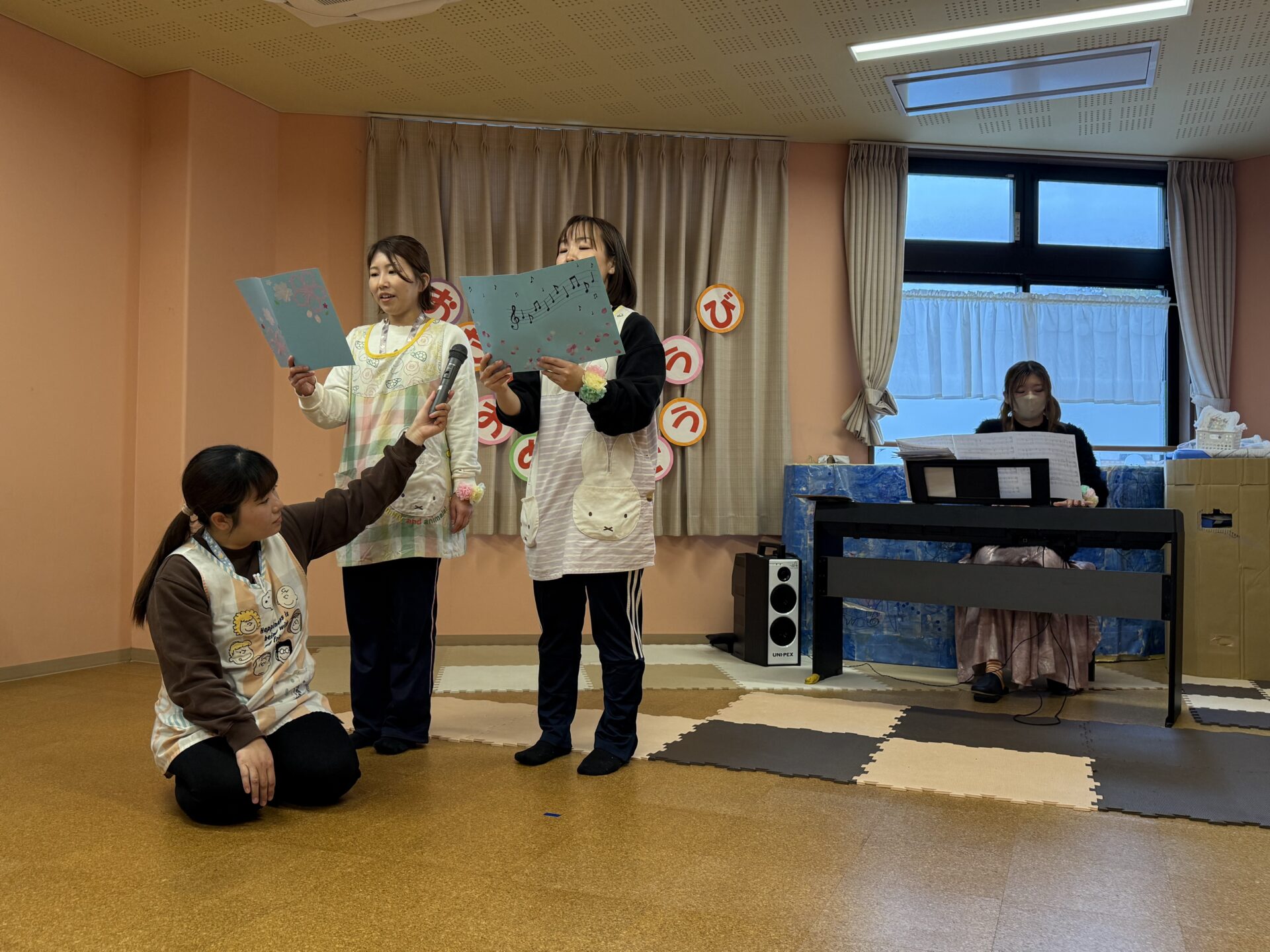今月の誕生日会の出し物は、I先生、K先生による〝合唱〟歌のプレゼントでした🎵