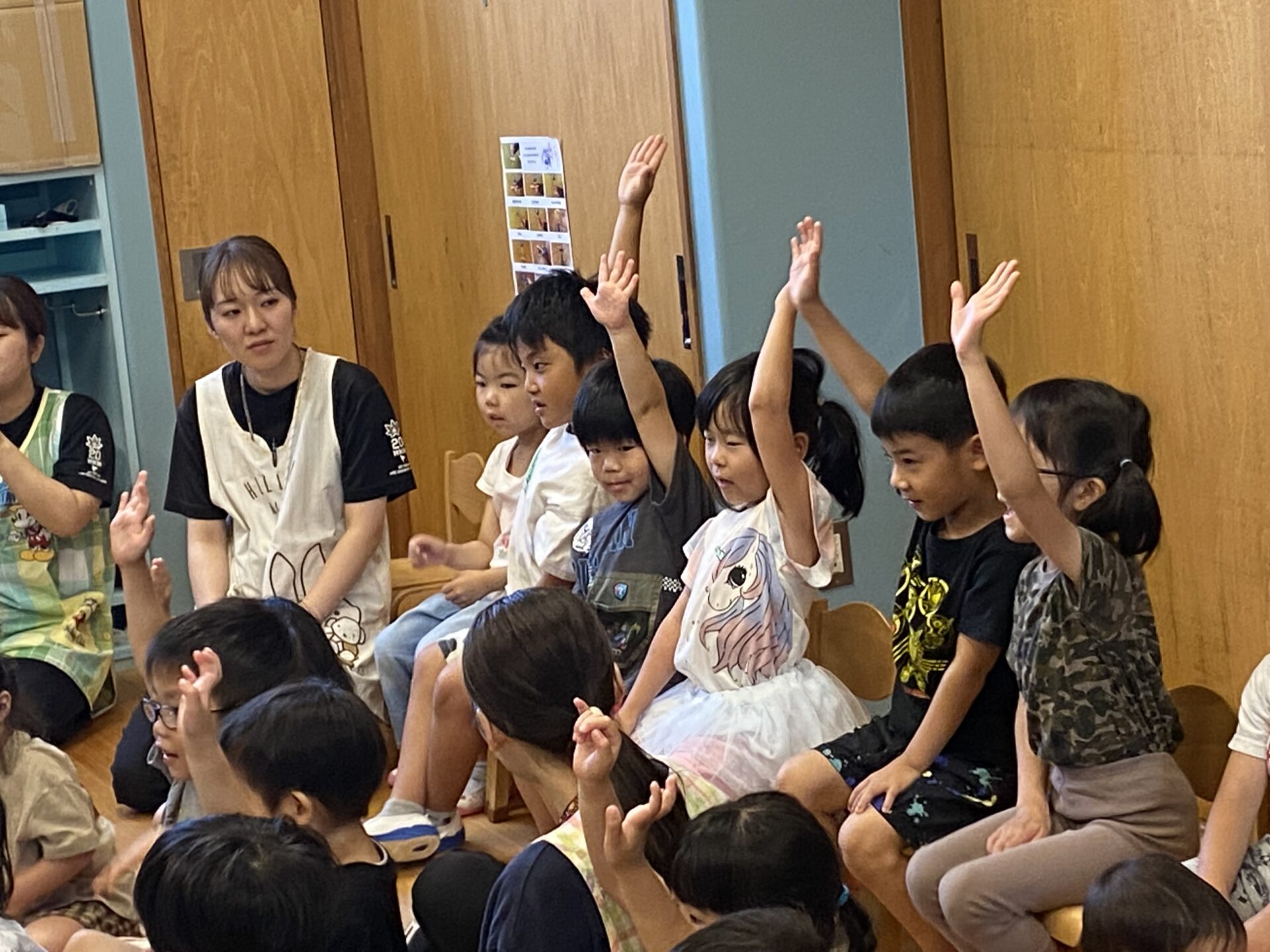 質問も子どもたちが考えていますよ。「お誕生日のお友達に聞きたいことある?」と聞くとみんな手を挙げて、質問したくてたまらないオーラを出していました。一番多い質問は「大きくなったら何になりたい?」でした。みんな気になるのですね☺