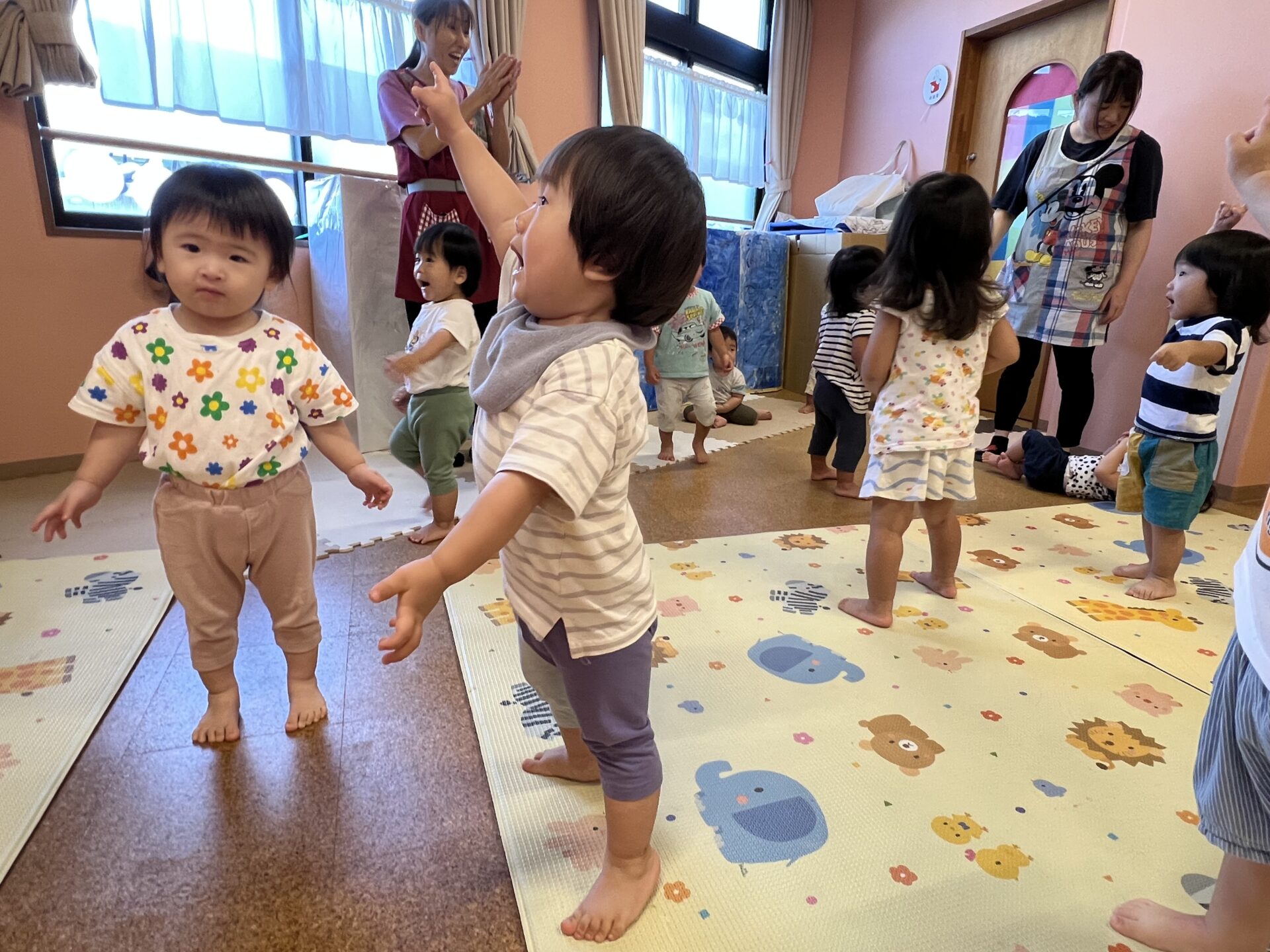 1歳児・だいちチームのYくんは、少しおっとりした性格だと思っていましたが、ダンスがとっても上手💗指先まで力が入っていカッコイイ😍
