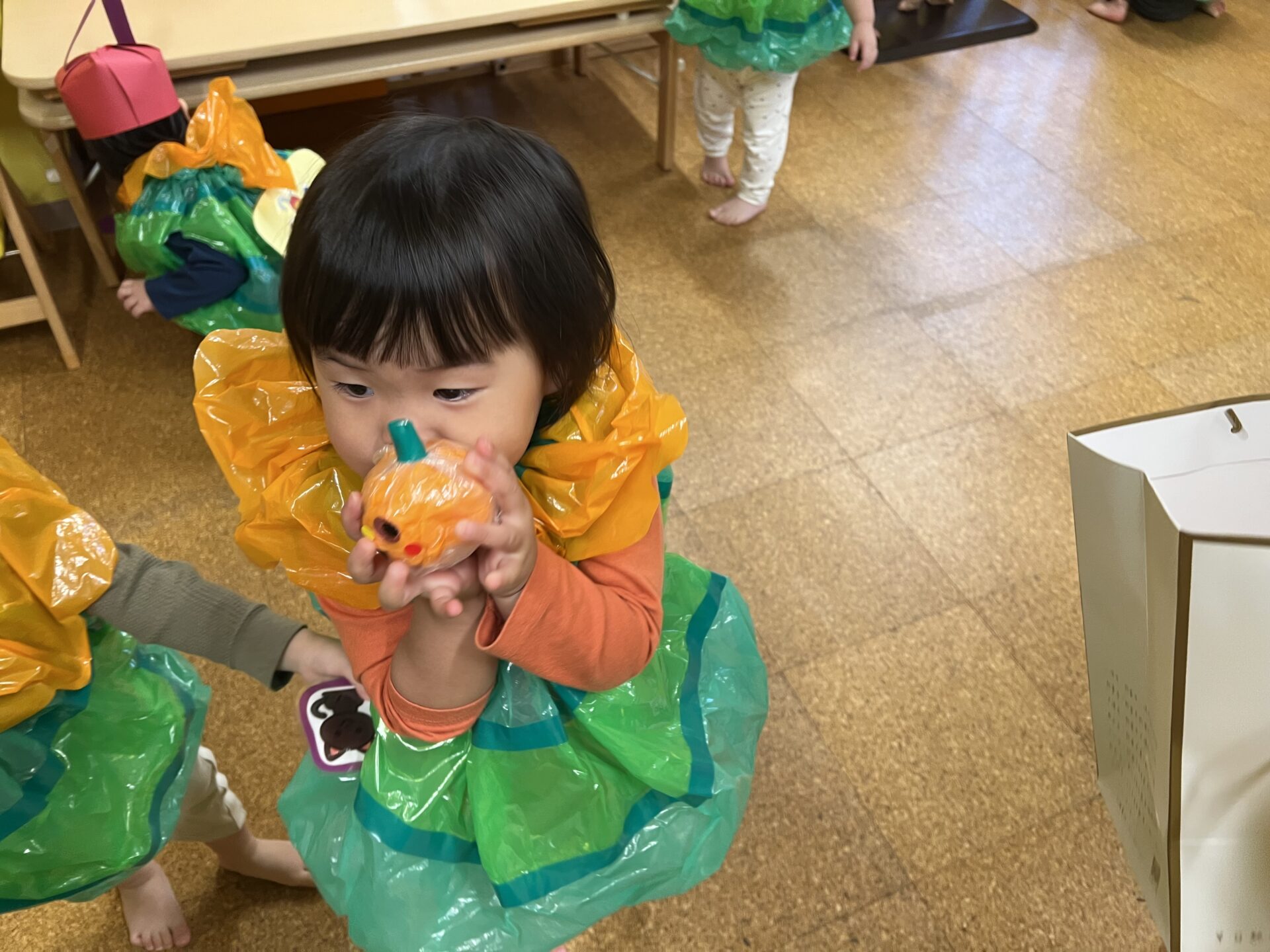 1歳児・だいちチーム「はらぺこあおむし」くんも、かわいいかぼちゃのお宝ゲットです😊