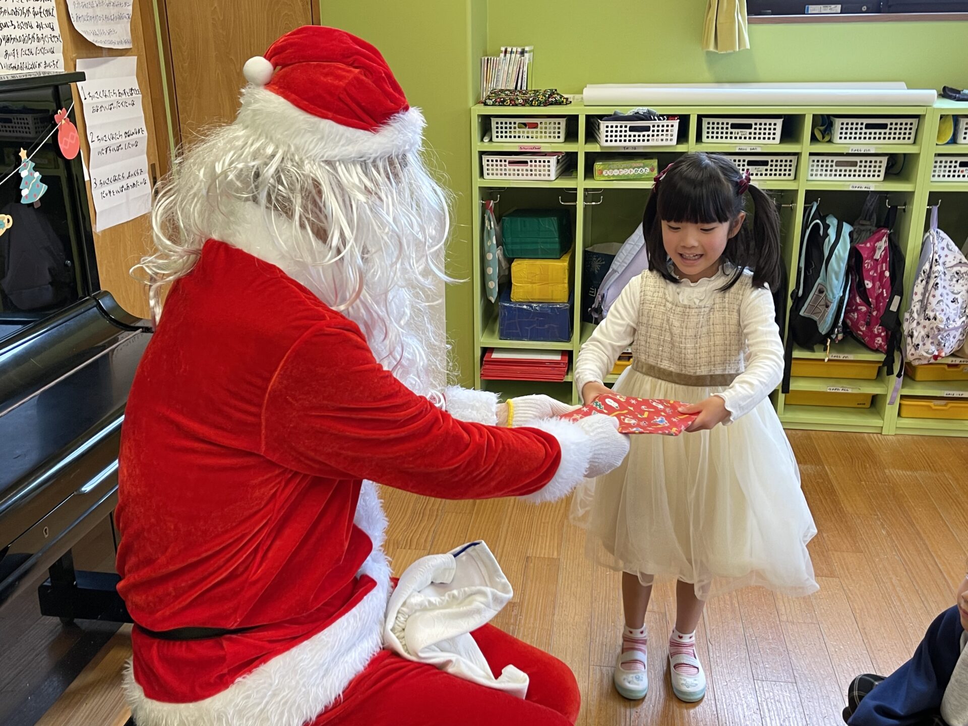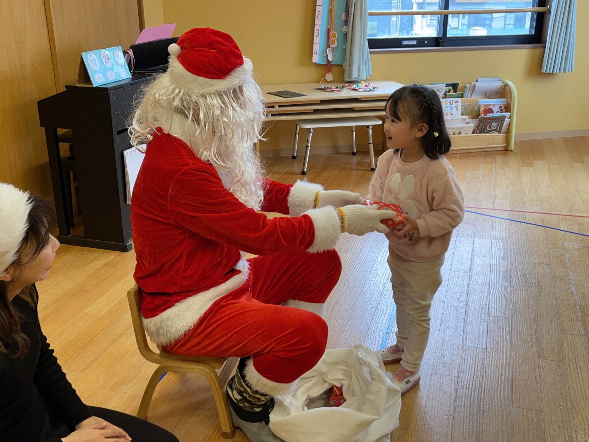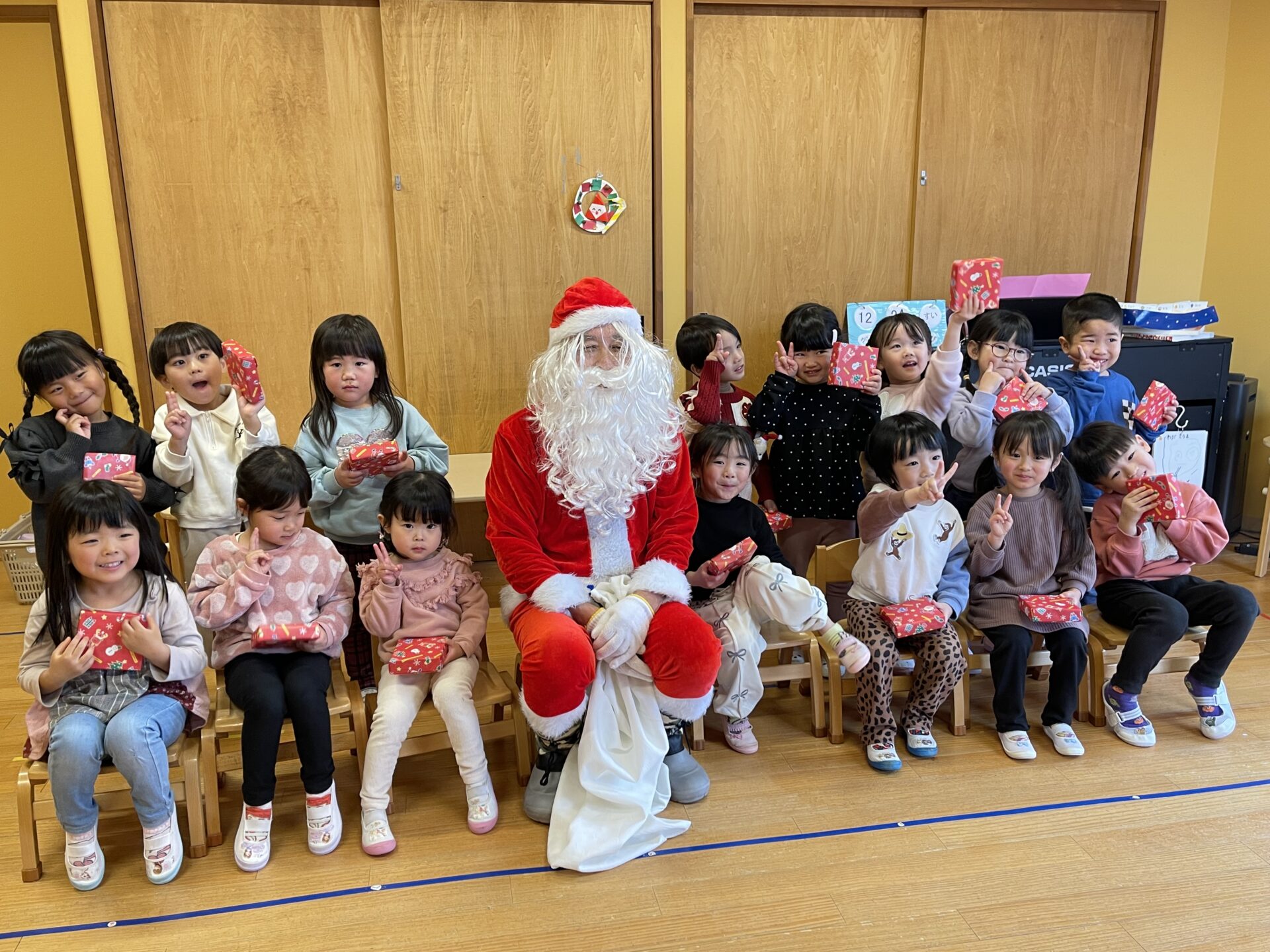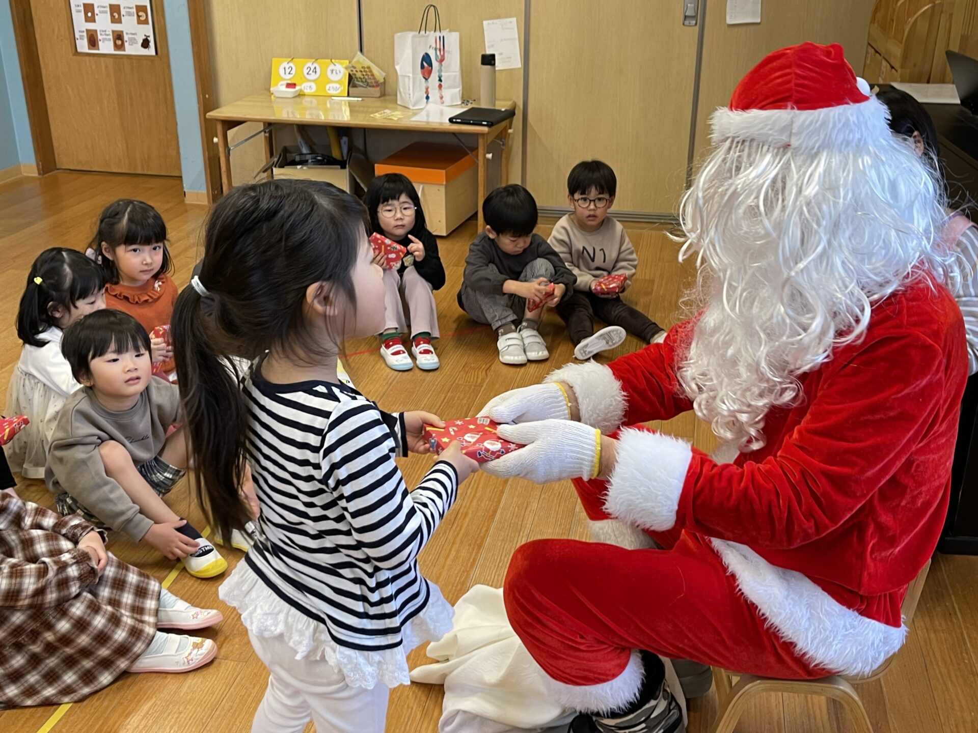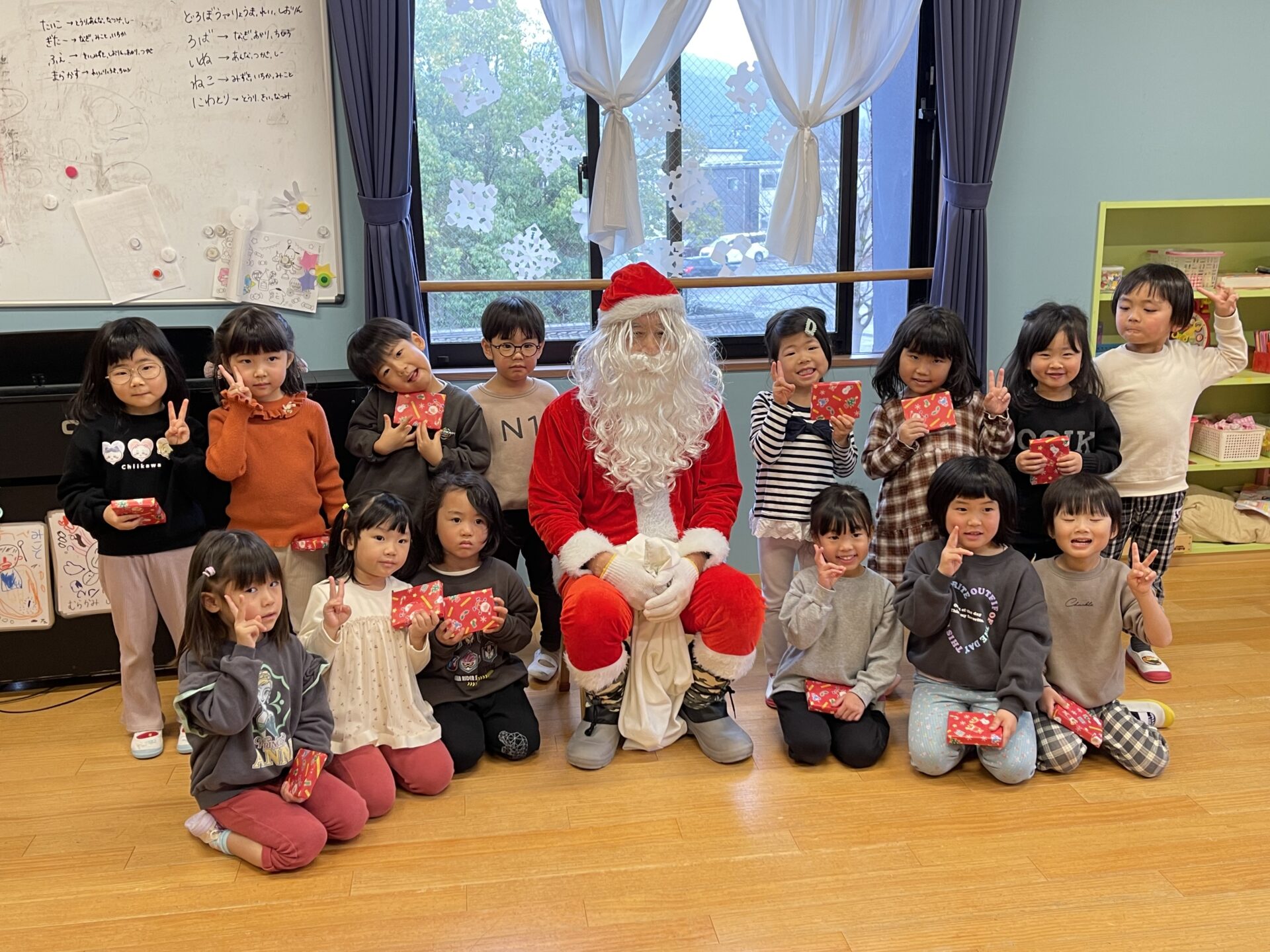 5歳児・くじらチームさんも、一人ひとりプレゼントを貰い、しっかりお礼を言っていました😊