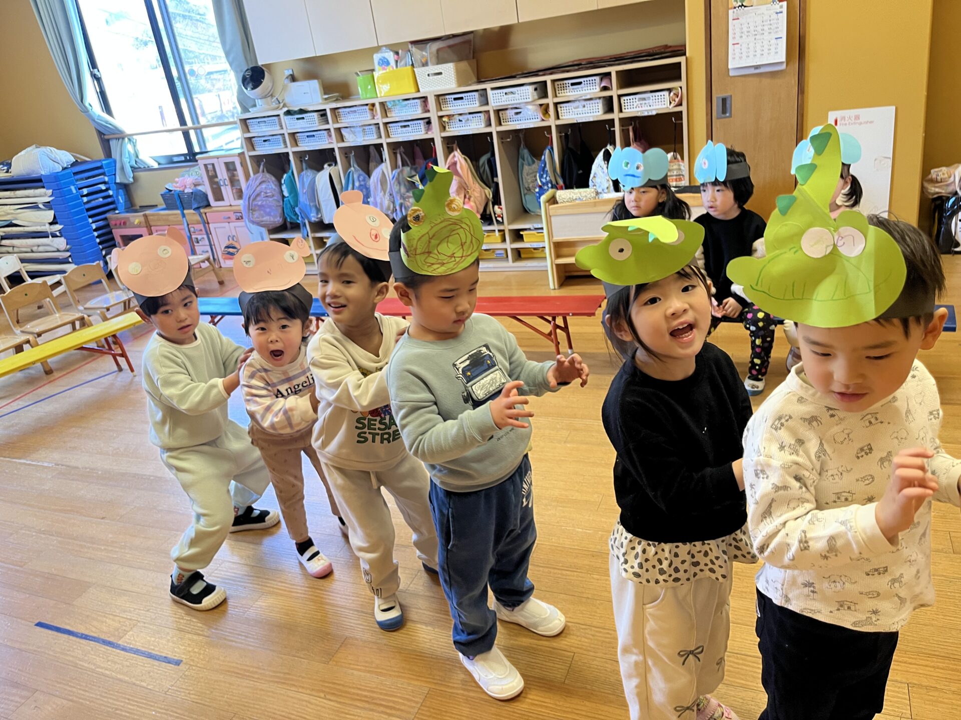 「もりのおふろ」をやることを伝えると、張り切って動物になりきっていました😊