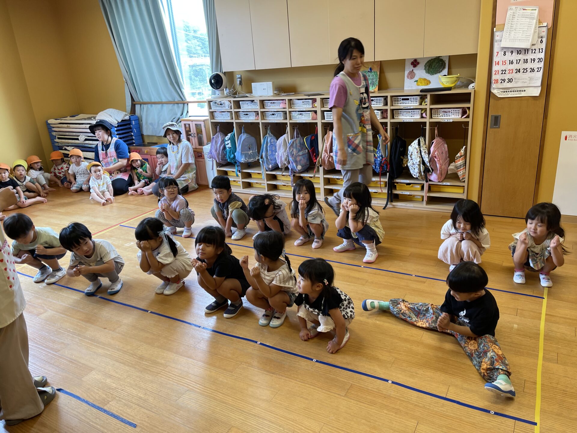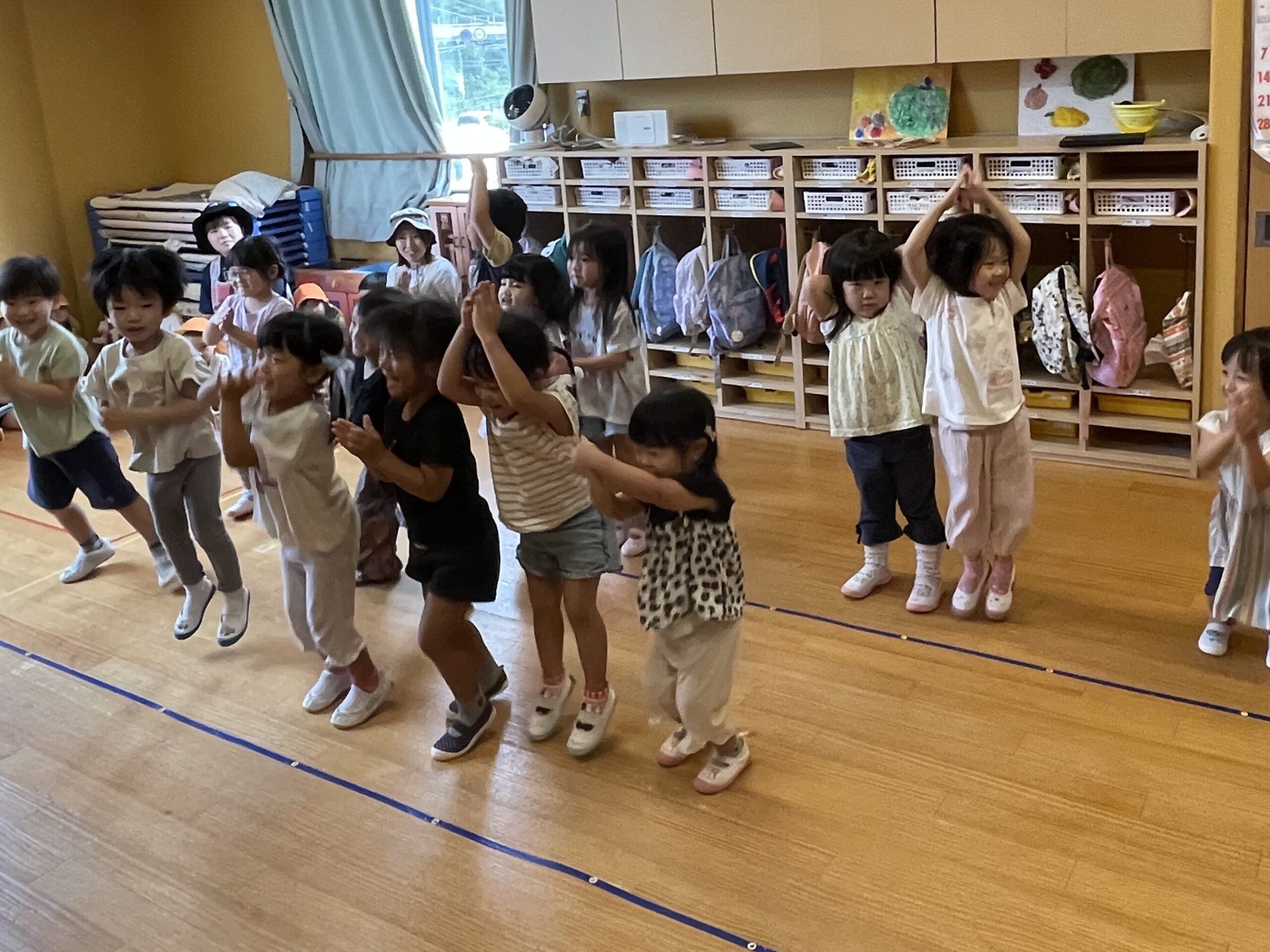 今年のにじチームさんにぴったりな曲【ポップコーン】で踊ります😊担任のM先生の動きを真似しながら、可愛く踊っていました♪