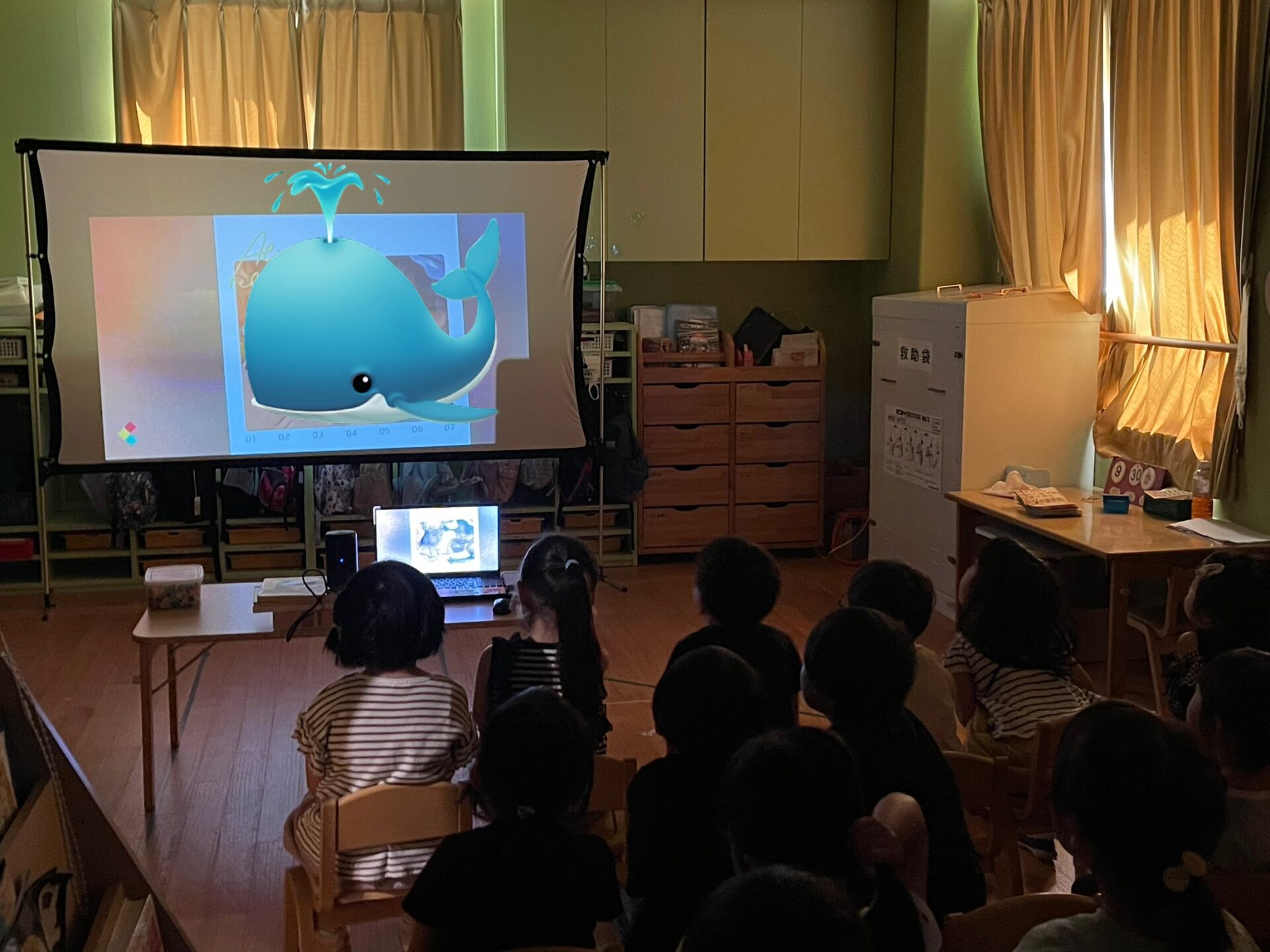 ZOOMの中で、「あっ!!理事長先生!!」「H園長先生も見つけた😊」と、みんなで手を振り大盛り上がり。
