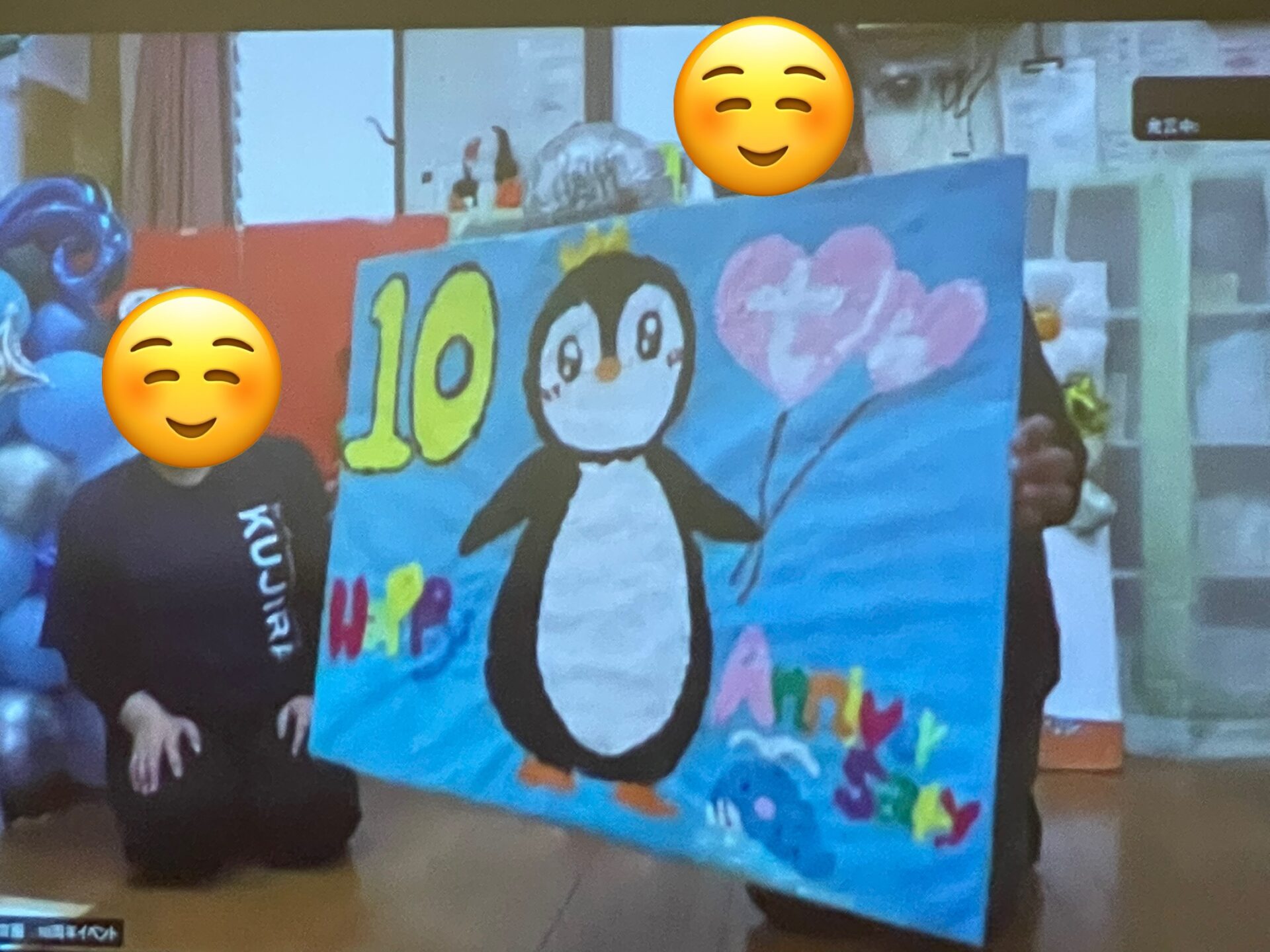 残念ながら、こちらの映像は繋がっていませんでしたが、最後に大きな声で『伊予ぺんぎん小規模保育園のみなさん10周年おめでとう!!』とメッセージを送りました😊