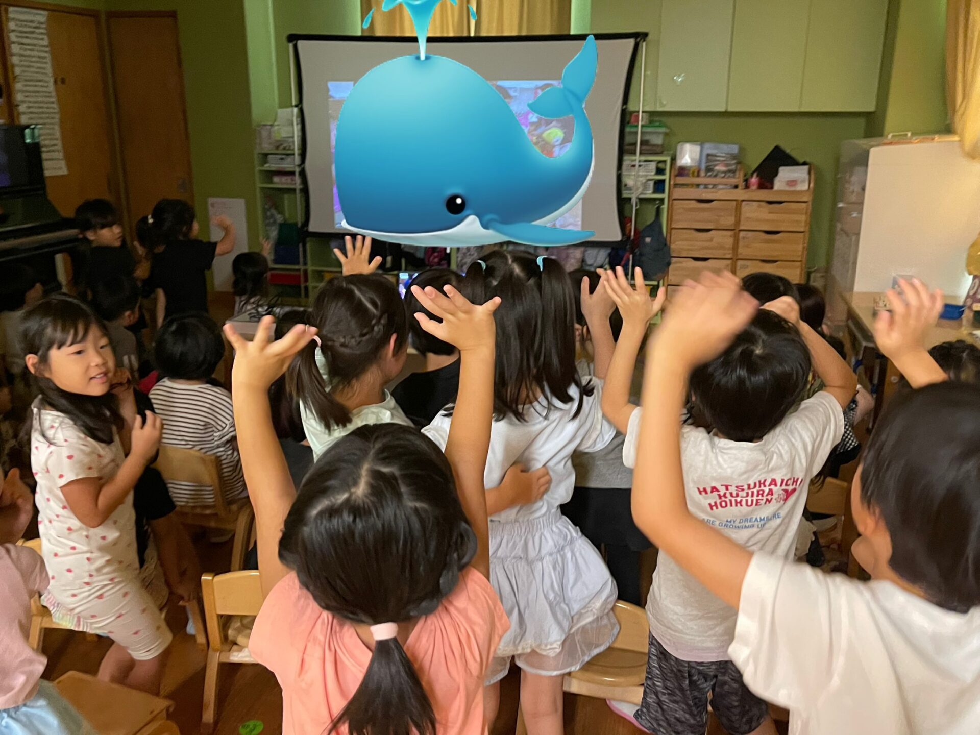 今日は、みんなで『伊予ぺんぎん小規模保育園の10周年』をお祝いしよう!!ということで、廿日市くじら保育園の3歳児~5歳児、にじ・そら・くじらチームさんが、広島県からZOOMで参加しました😊