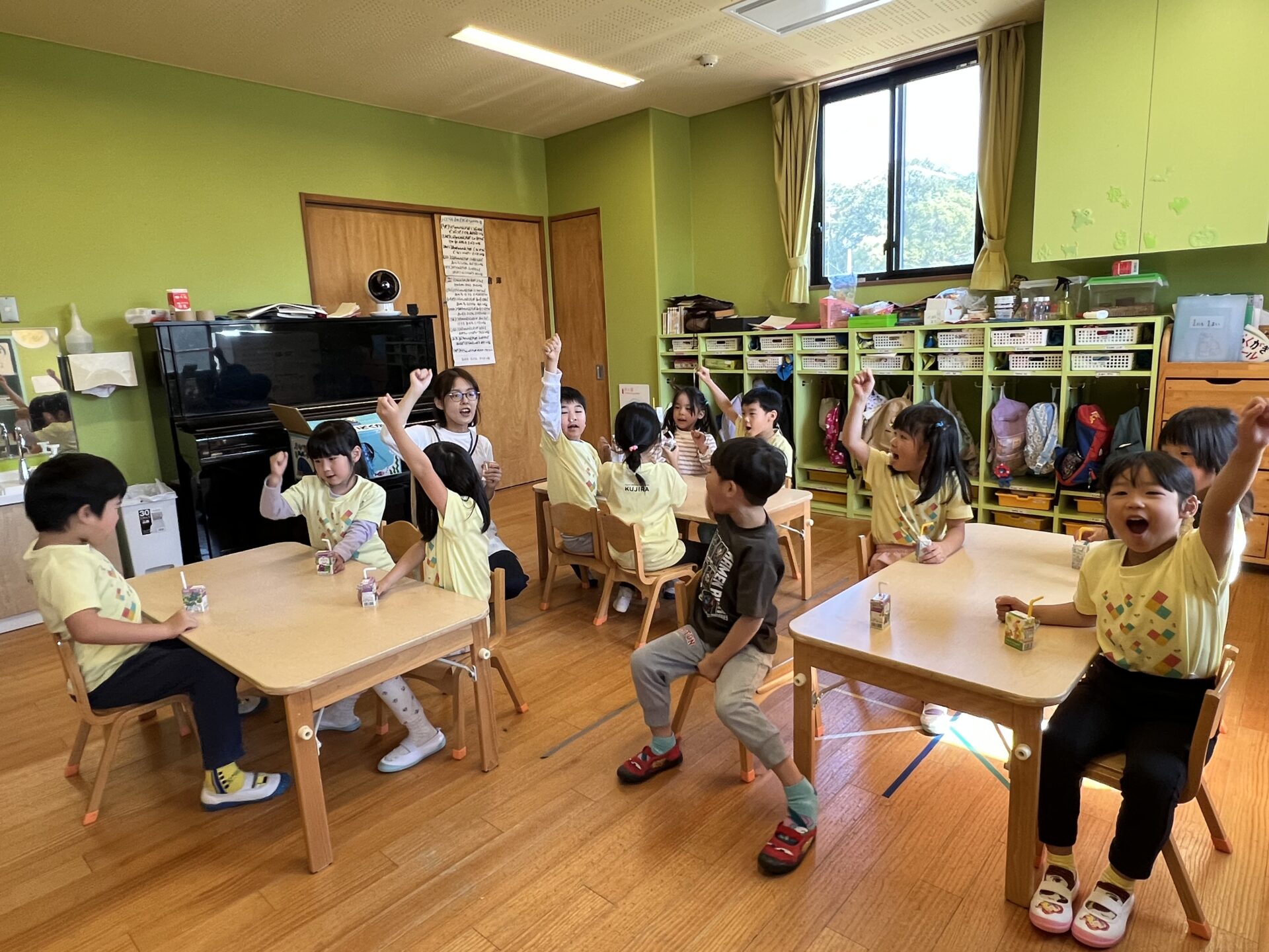 去年より、少しこだわりのポイントがあって、退場する時は3歳児・にじチームさんを4歳児・そらチームと5歳児・くじらチームが手を繋いで一緒に退場します😊