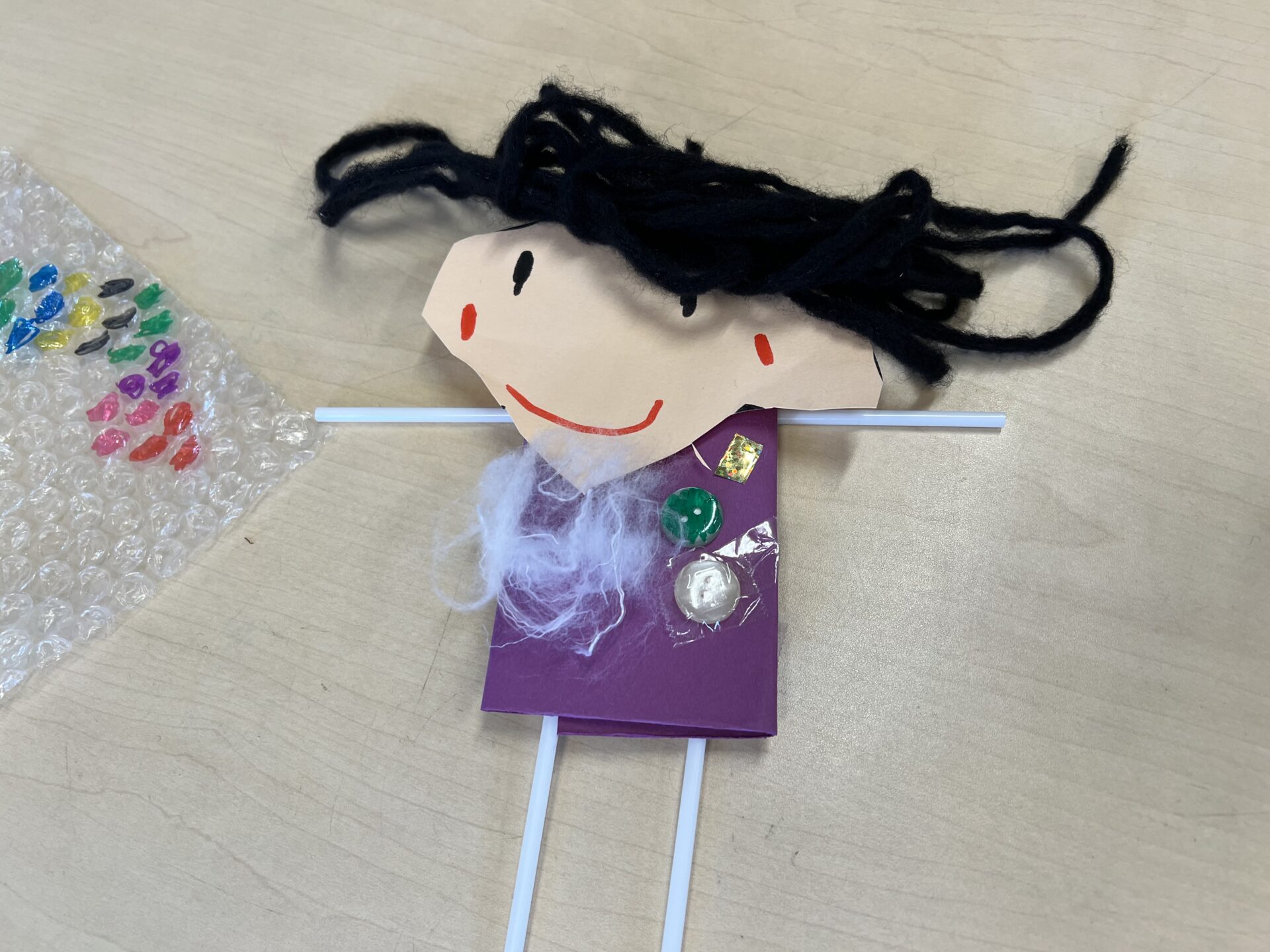Aちゃんは、とってもおしゃれな服を作っていました😊ボンドやセロテープを使って、試行錯誤しながら作っていました。